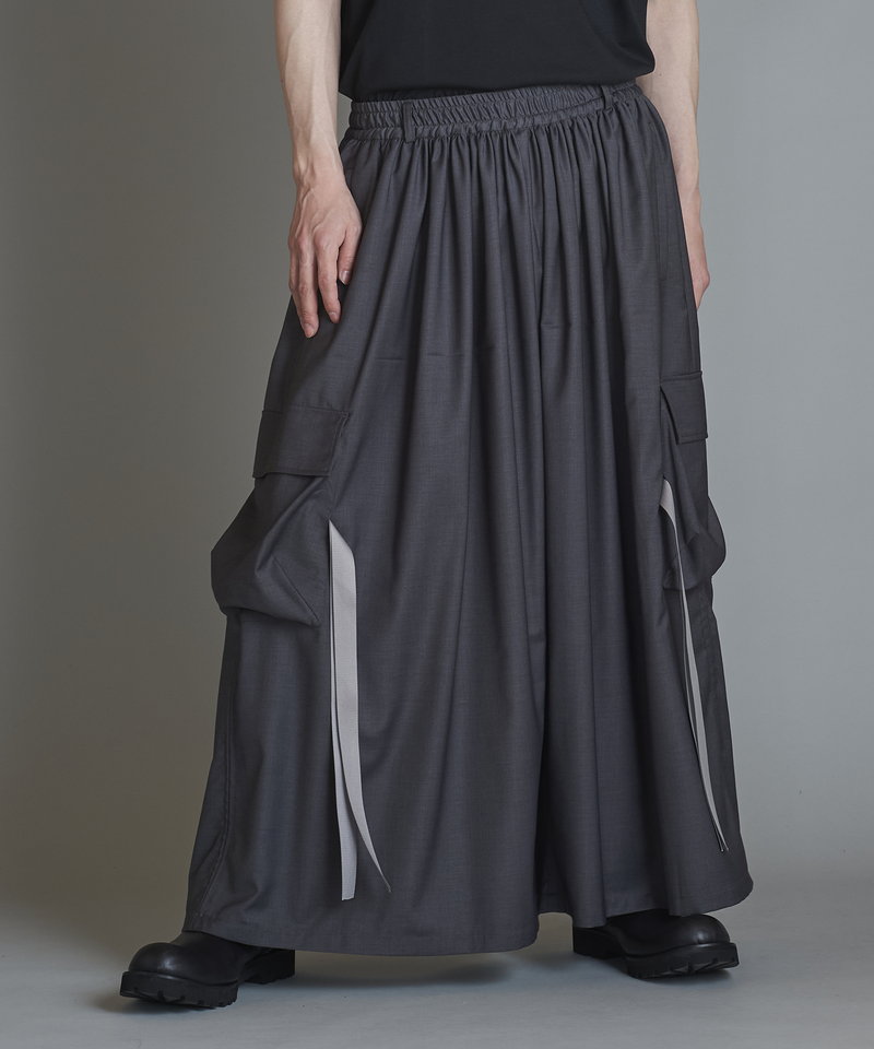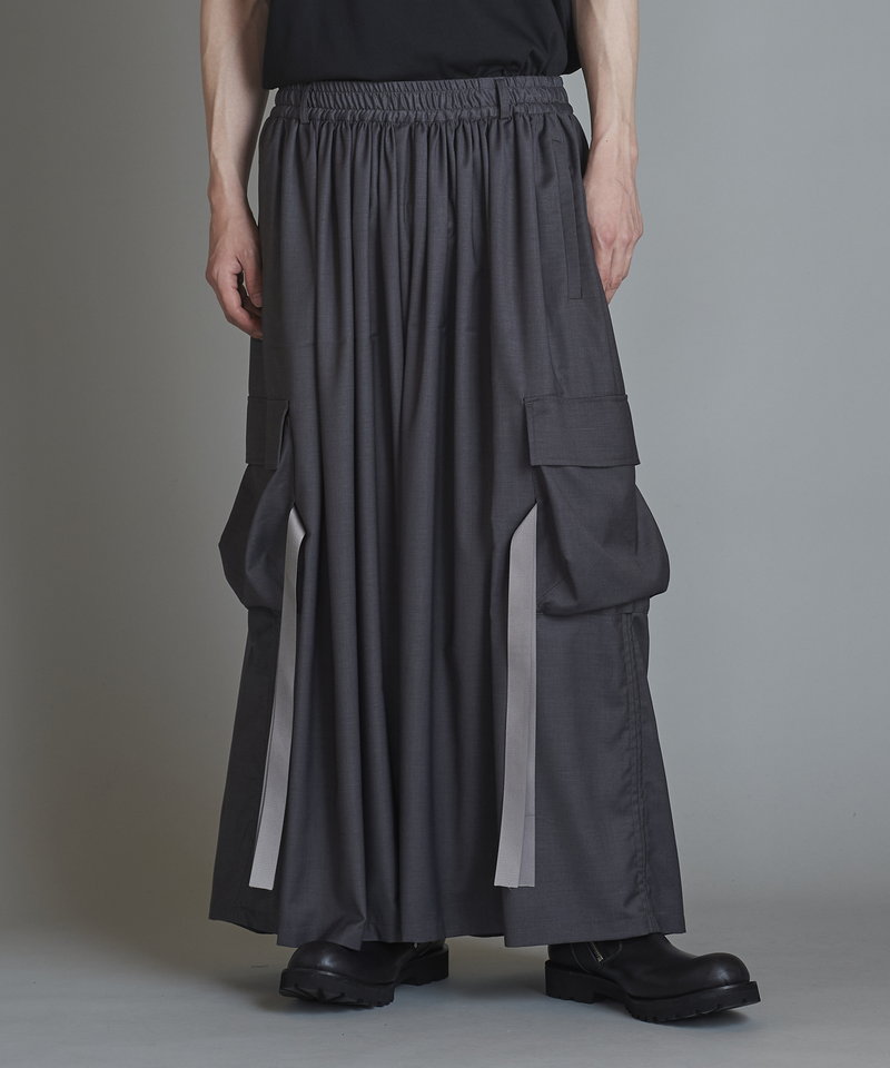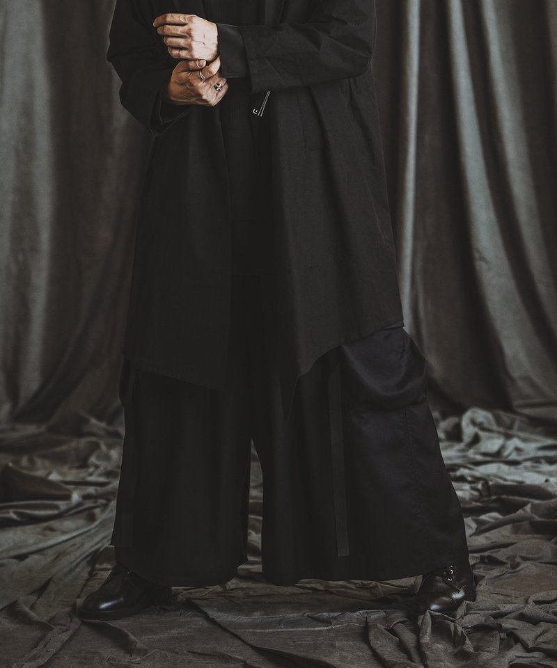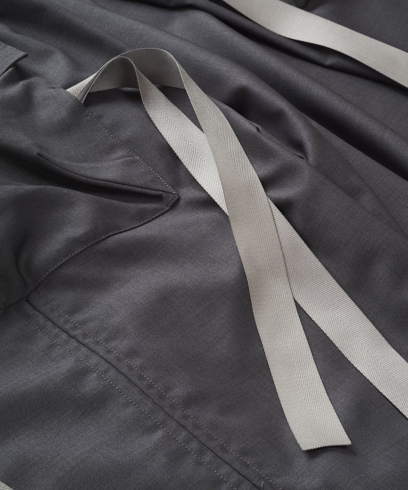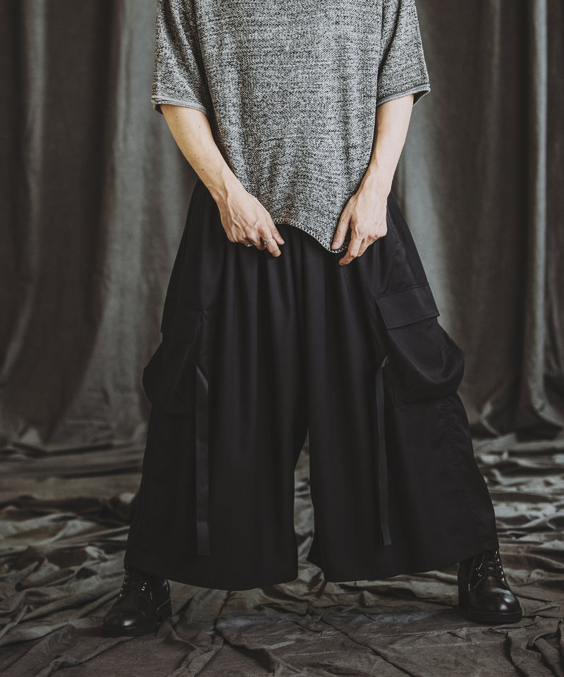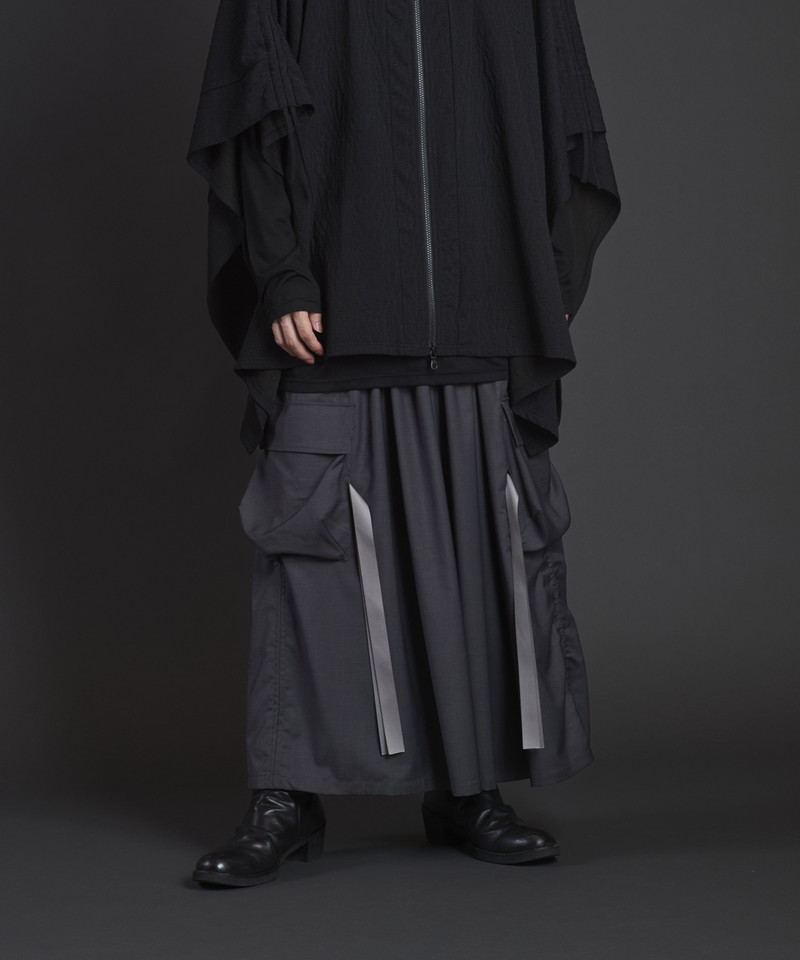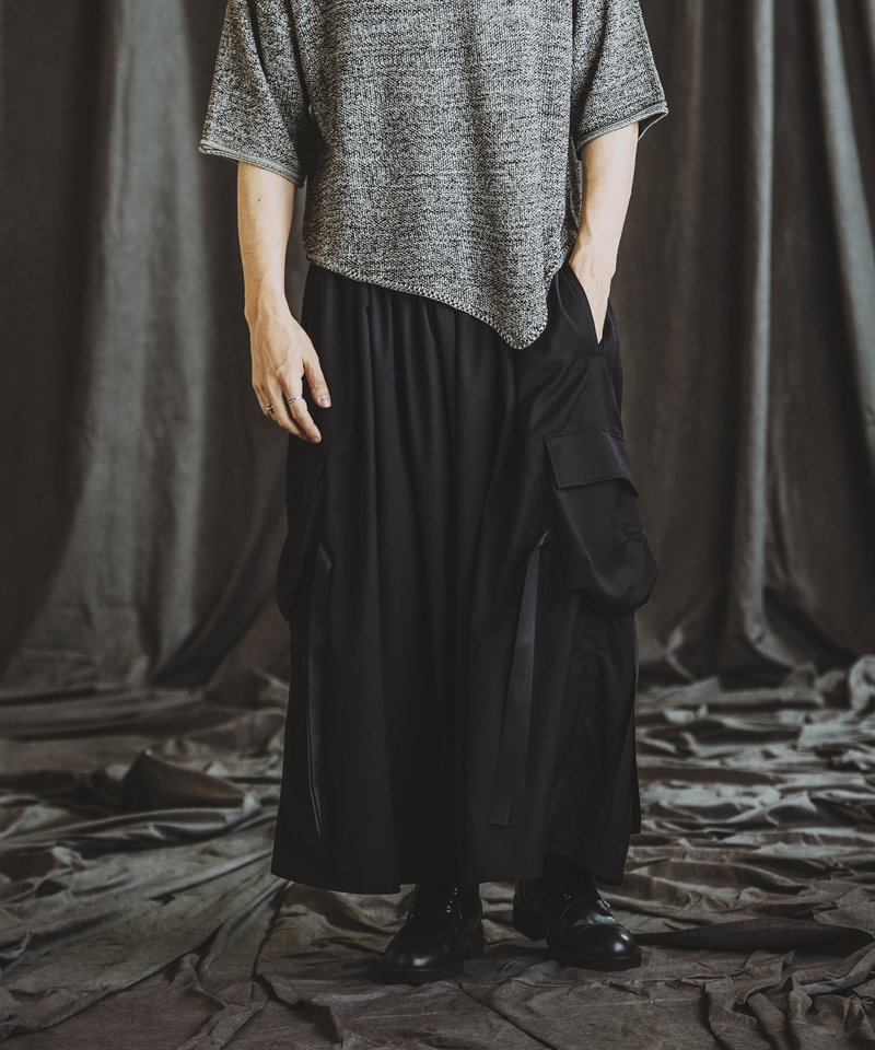 前作同様カーゴパンツベースのデザインとなっているが本作は膝から裾にかけてドローコードを配しておりカーゴポケットの中に隠れているコードストッパーを使う事で裾のラインを変形させる事が可能なフレキシブルなデザインとなっている。