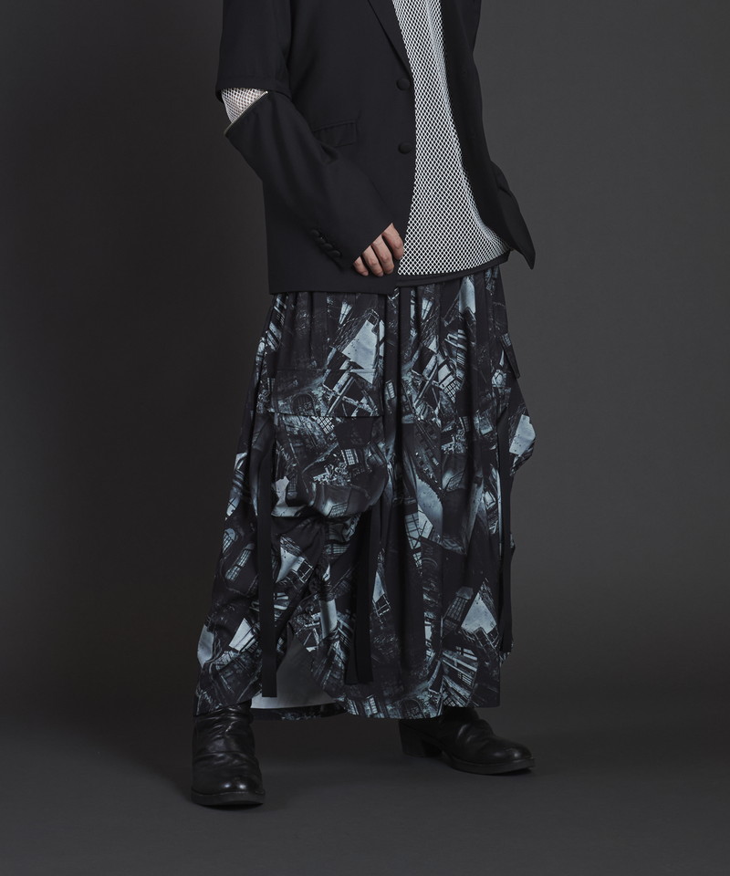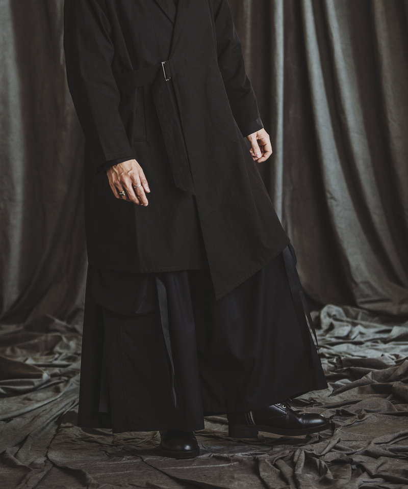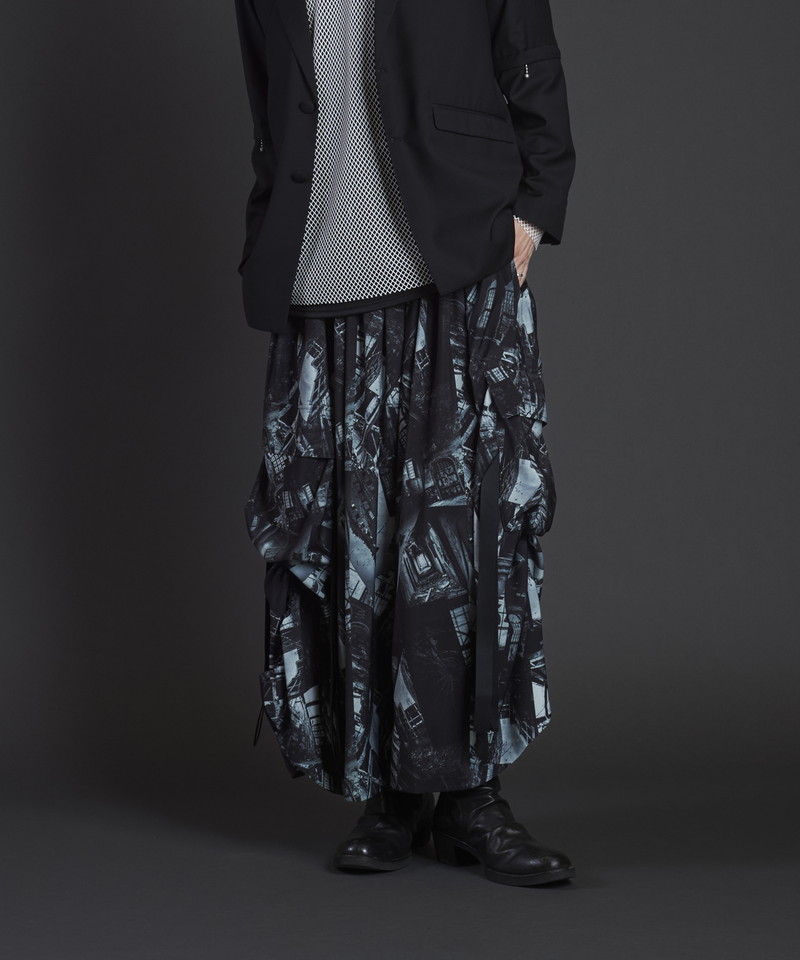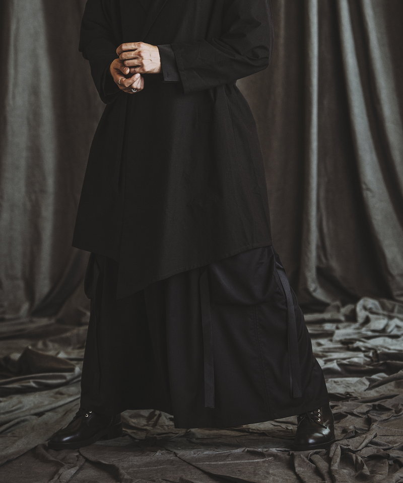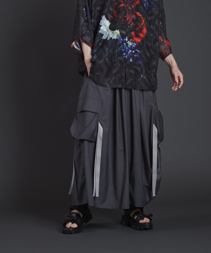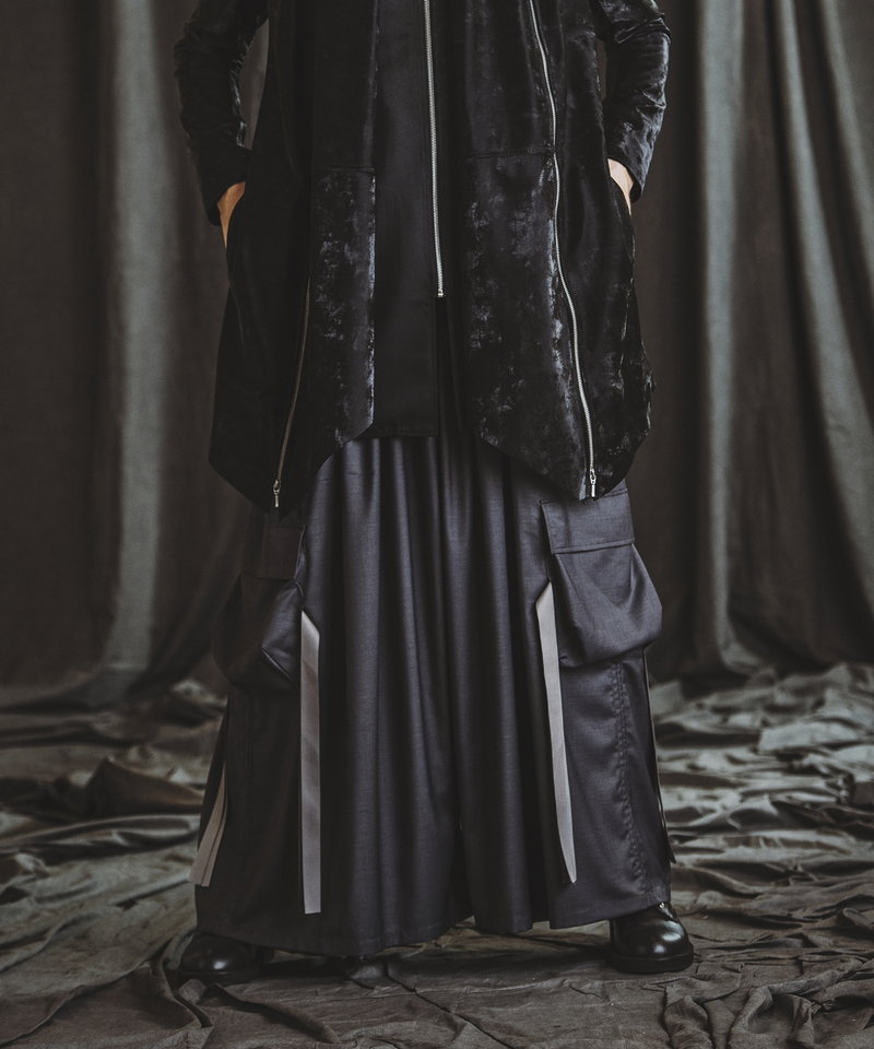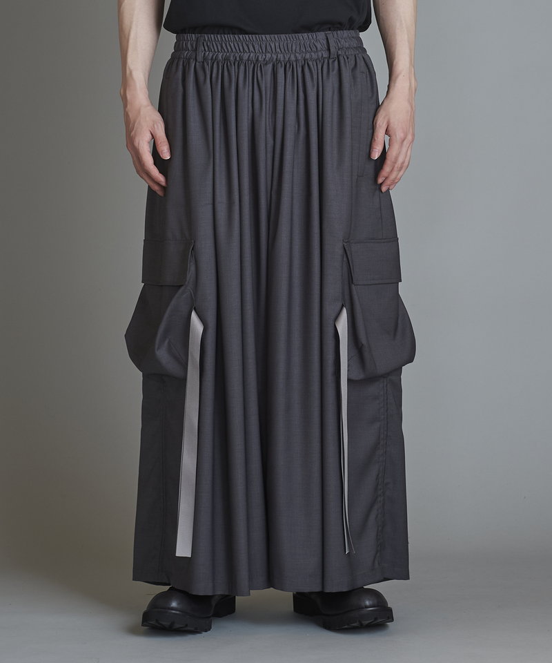 前作同様カーゴパンツベースのデザインとなっているが本作は膝から裾にかけてドローコードを配しておりカーゴポケットの中に隠れているコードストッパーを使う事で裾のラインを変形させる事が可能なフレキシブルなデザインとなっている。
