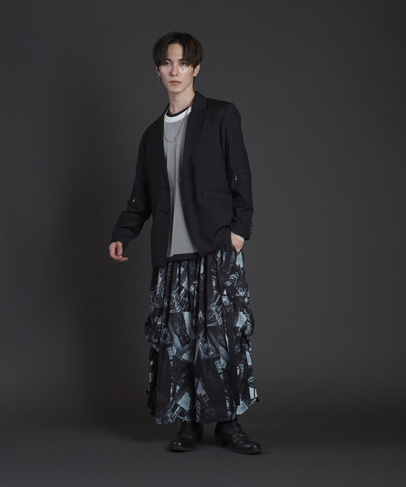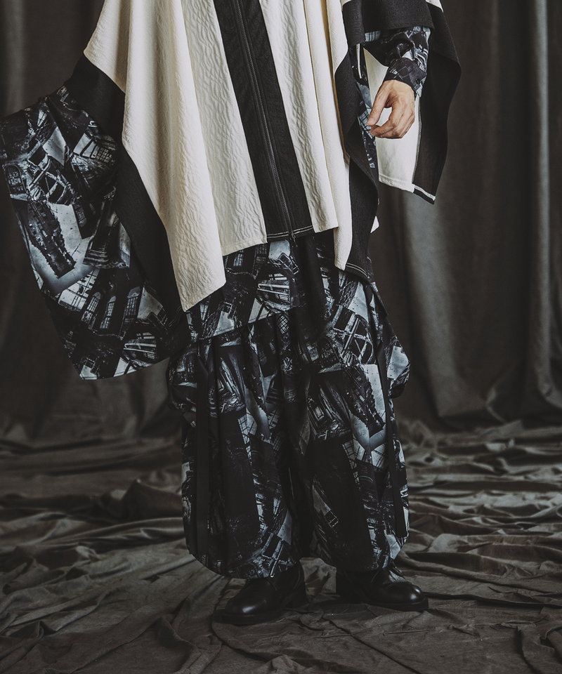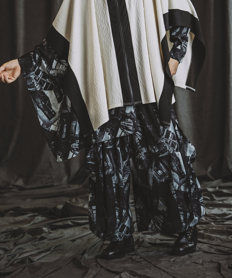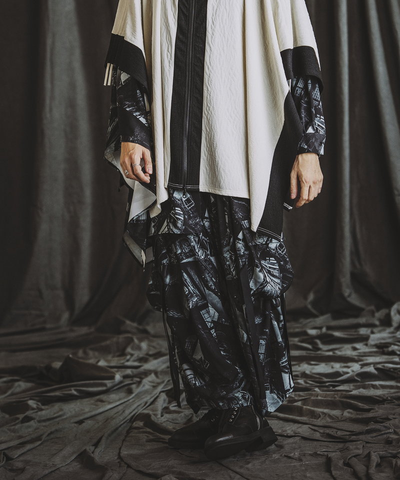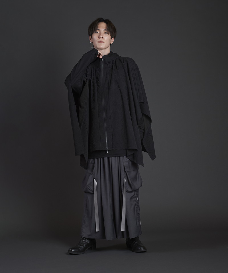※ 同生地を使用したアシンメトリーポンチョSHとのセットアップスタイルも可能。