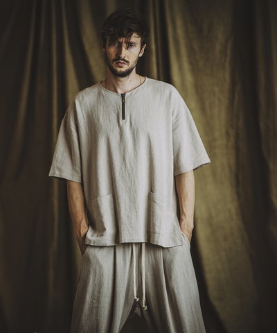 麻素材を混紡したナチュラルな風合いの素材と丸みのあるコクーンシルエットがリラクシーなムードで、大人のレイトサマースタイルにマッチしたアイテム。