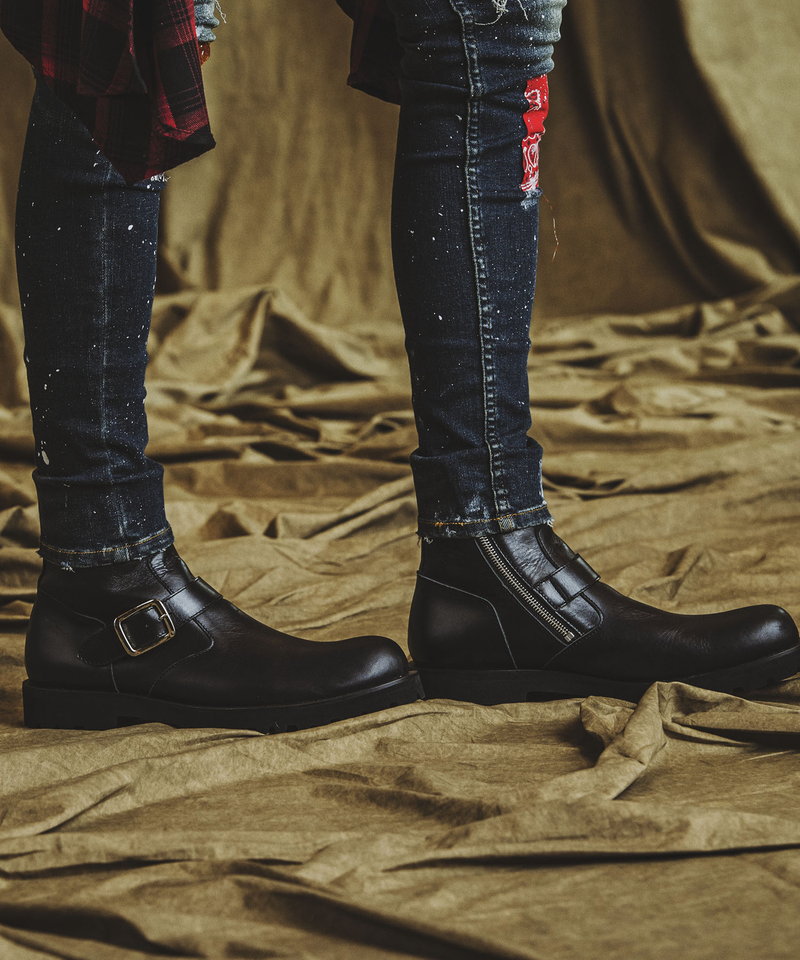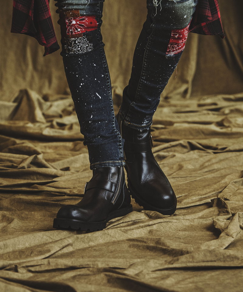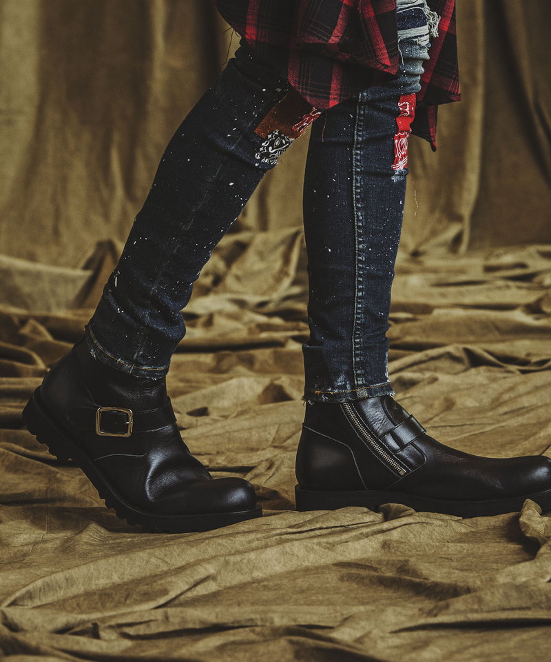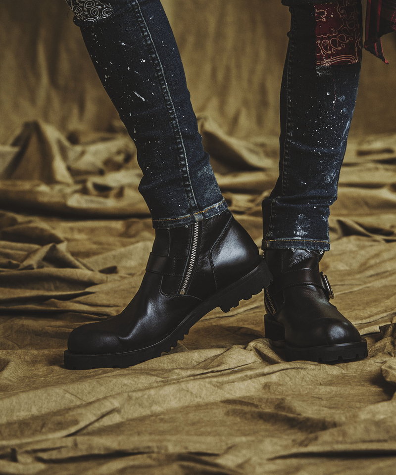 高めのトゥスプリングで、ややロングノーズの木型を採用したアッパーのフォルムが目を引くエンジニアブーツ。