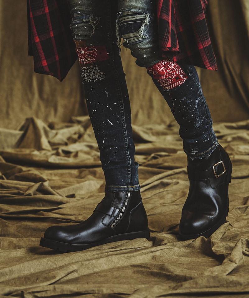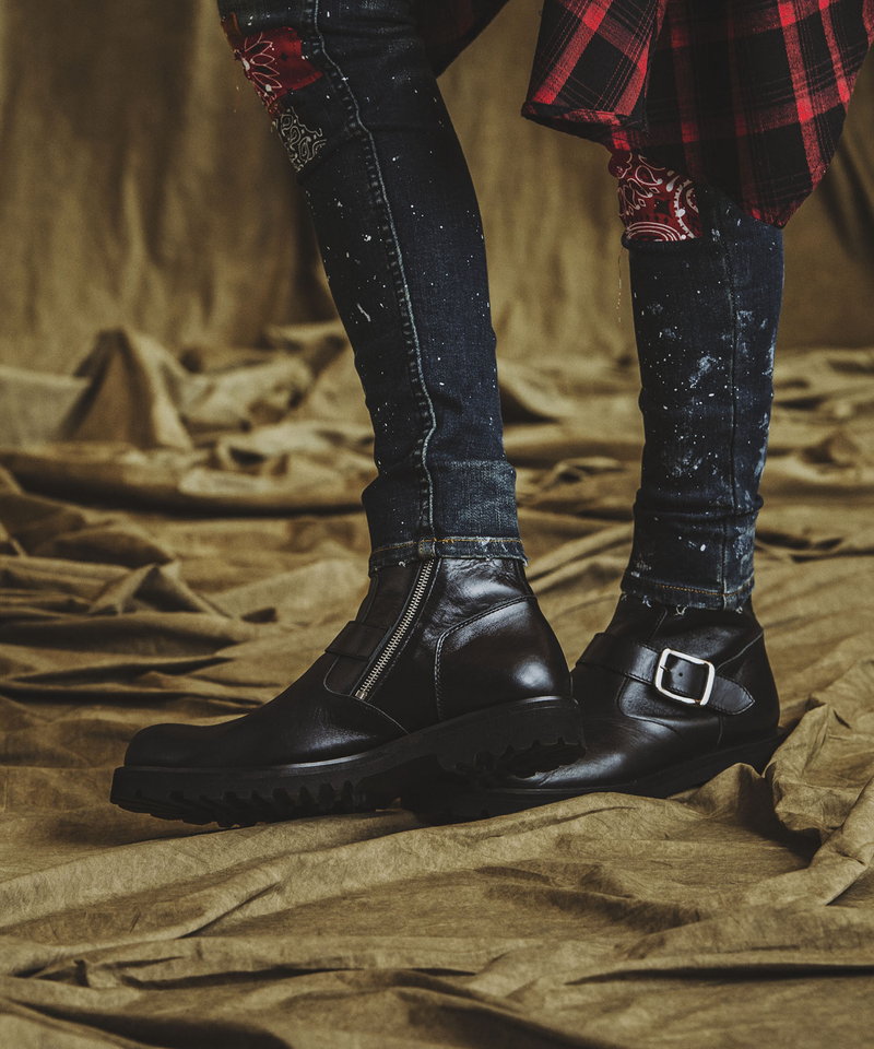 ワークブーツでは珍しいすっきりとした筒周りと低めのシャフトで、スキニーパンツでも気兼ねなく着用可能なつくりも嬉しいポイント。