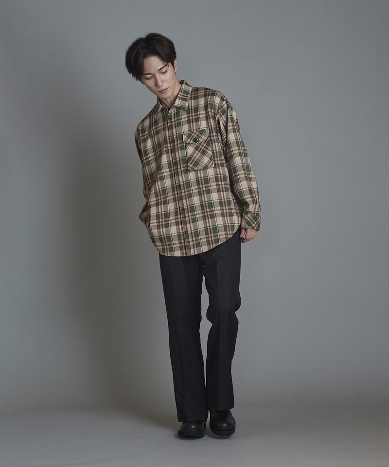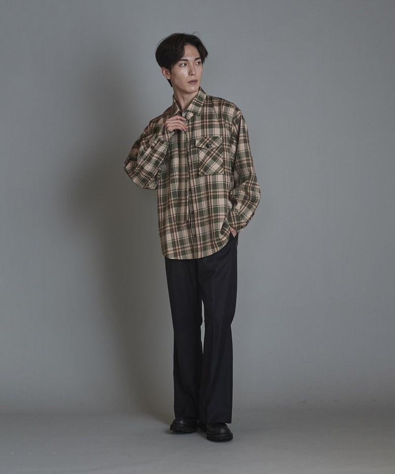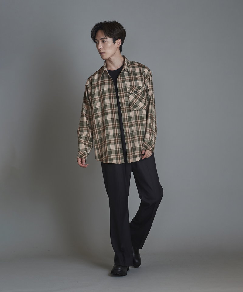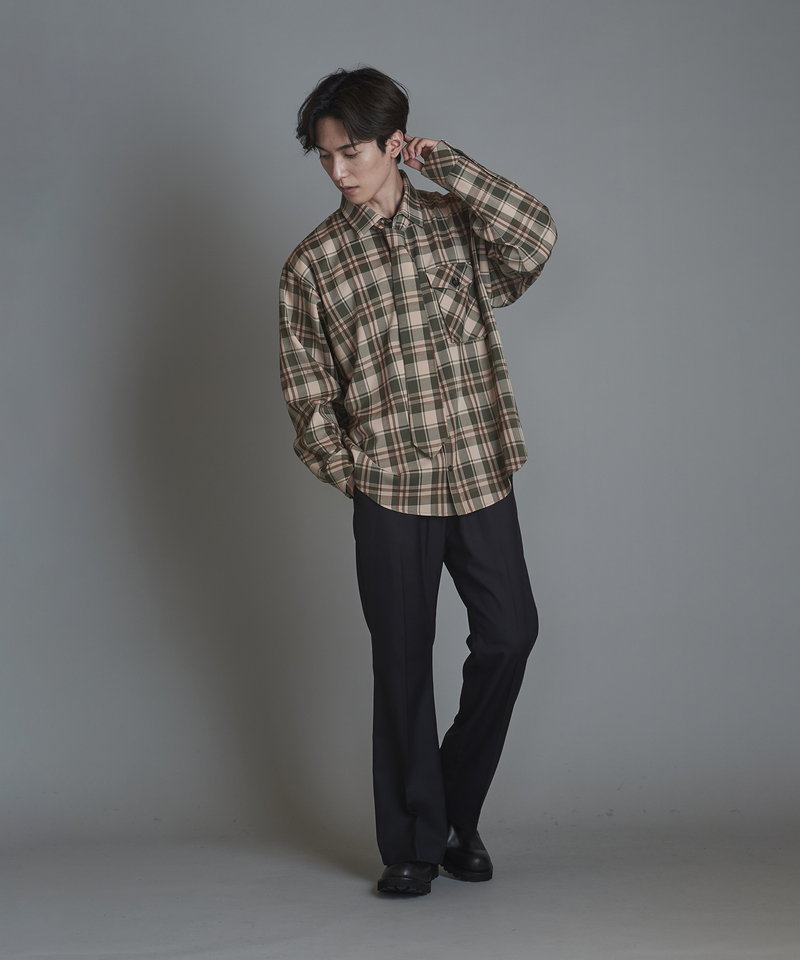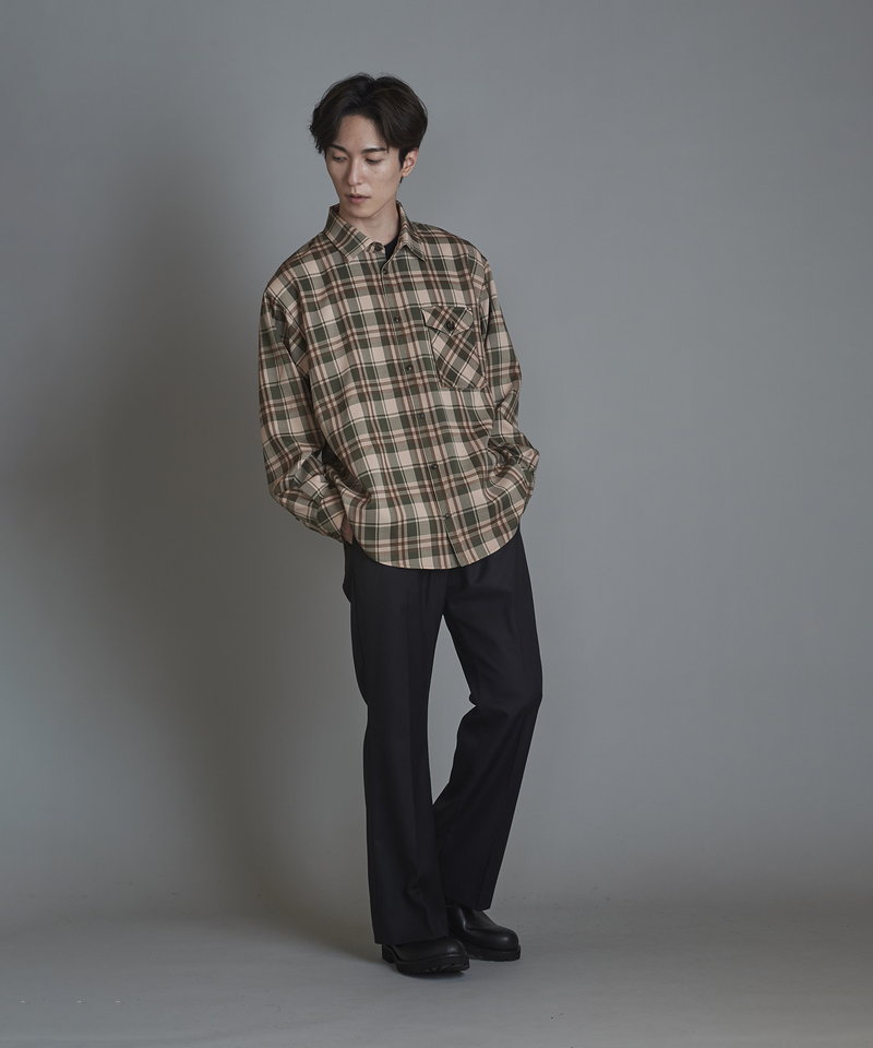 チェック柄も今まで選んだことのない淡いくすみ系のカラーを選びアース系カラーのコーディネートに調和の取れやすい展開。