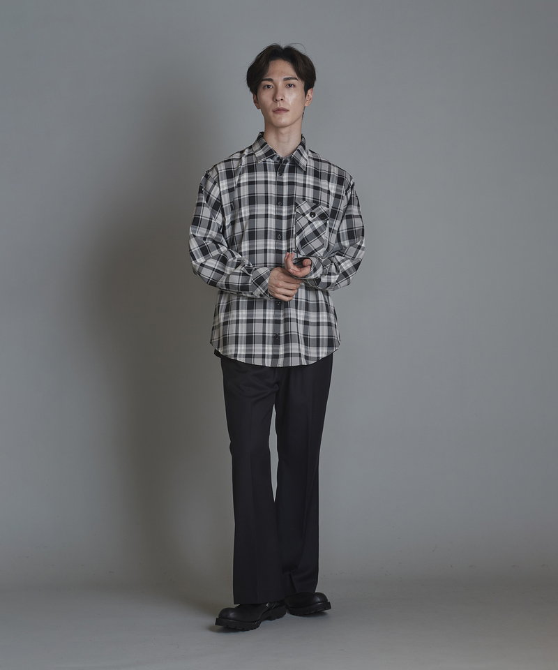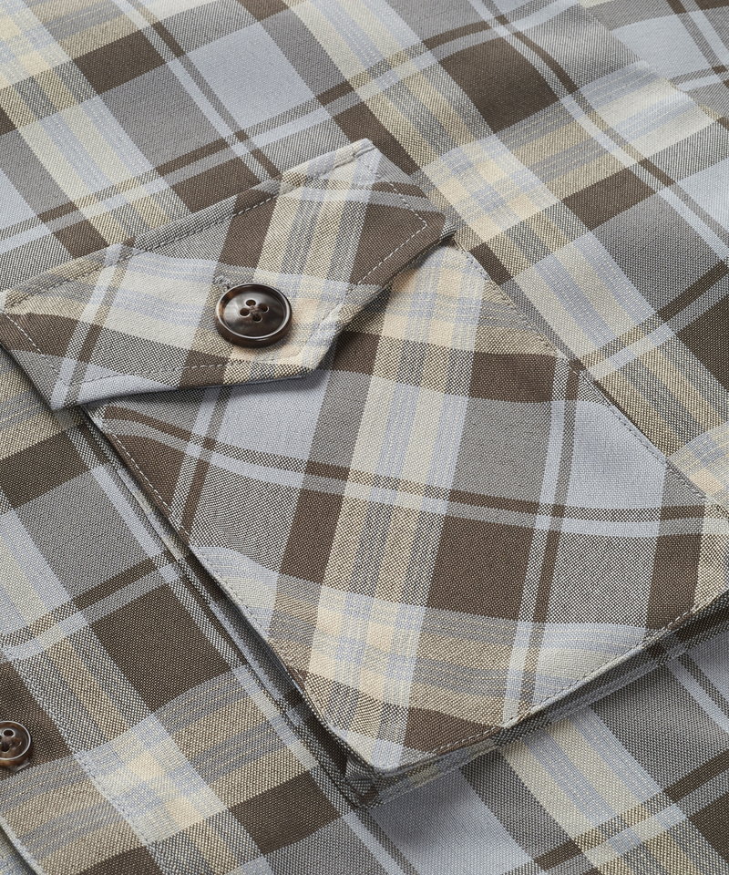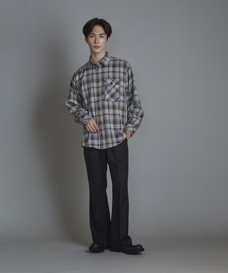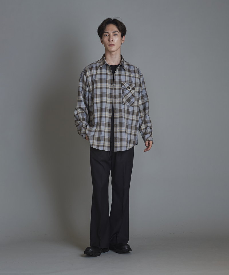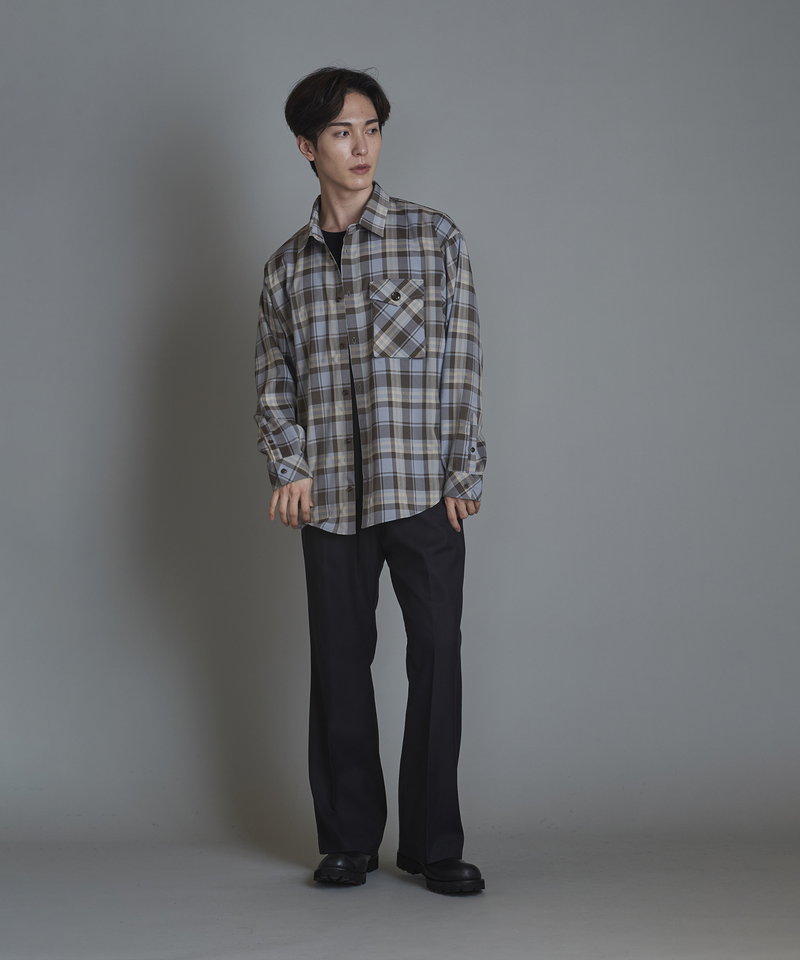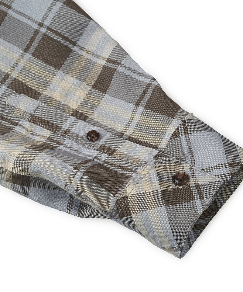 チェック柄も今まで選んだことのない淡いくすみ系のカラーを選びアース系カラーのコーディネートに調和の取れやすい展開。
