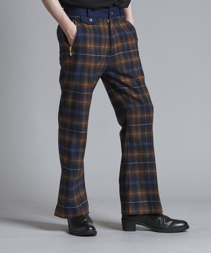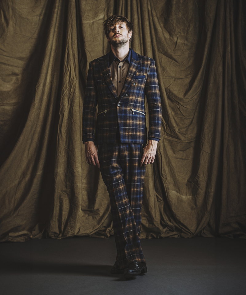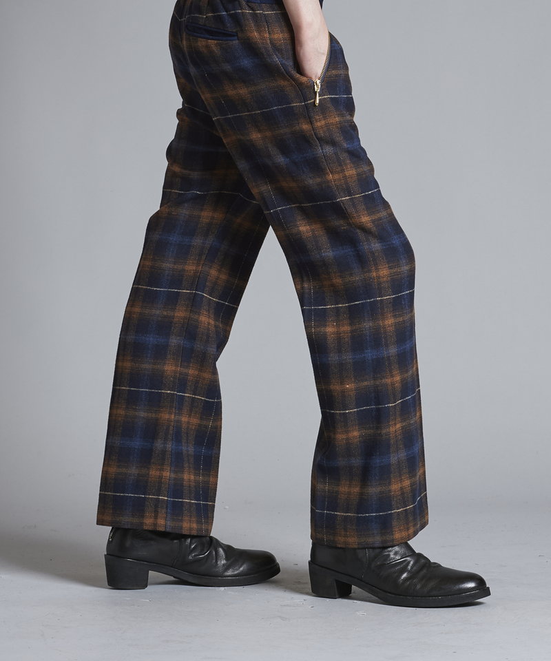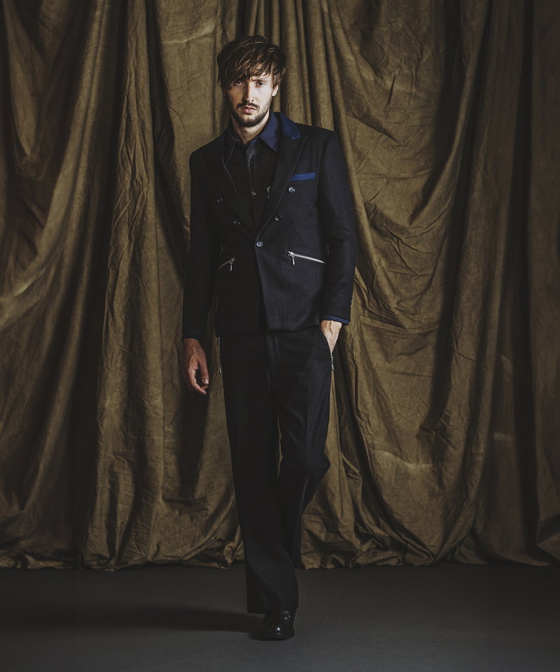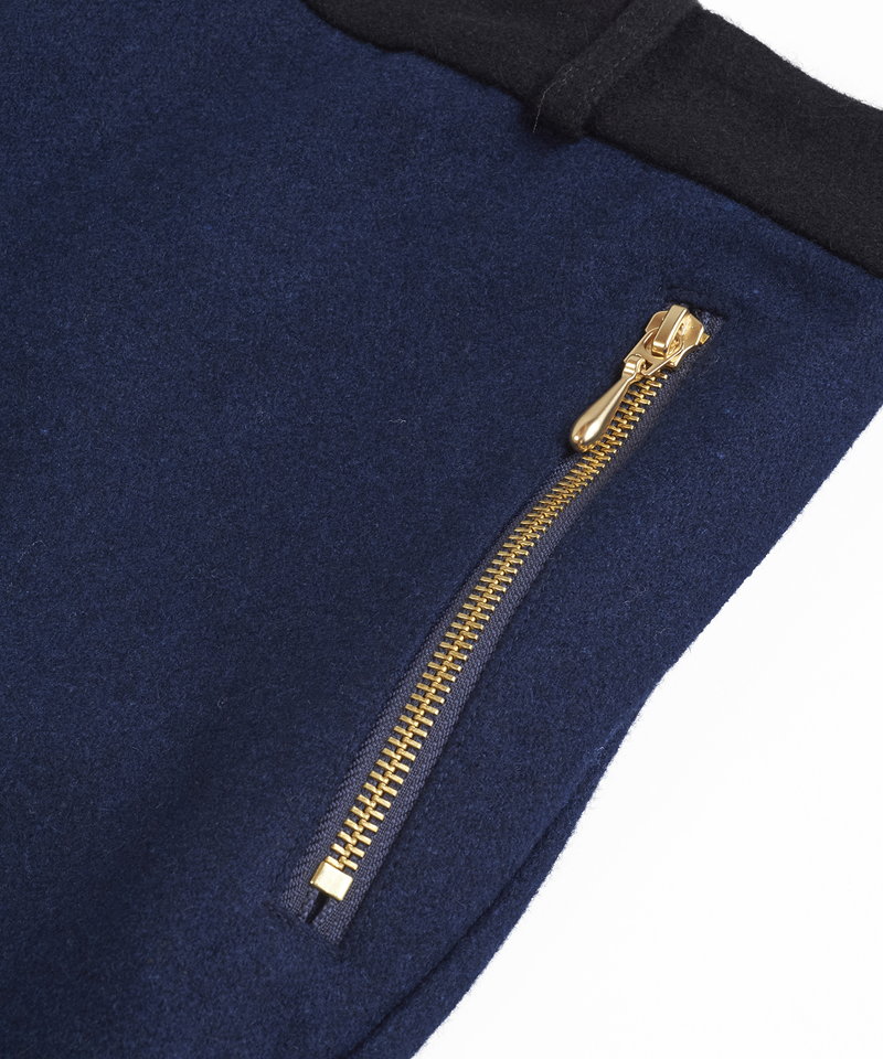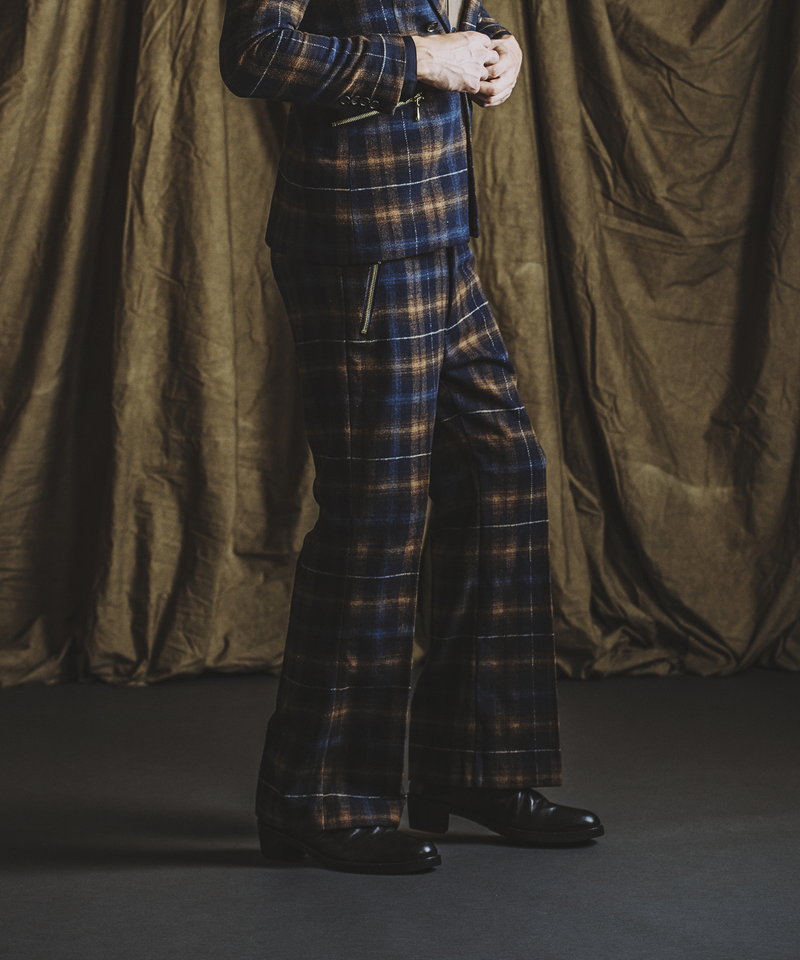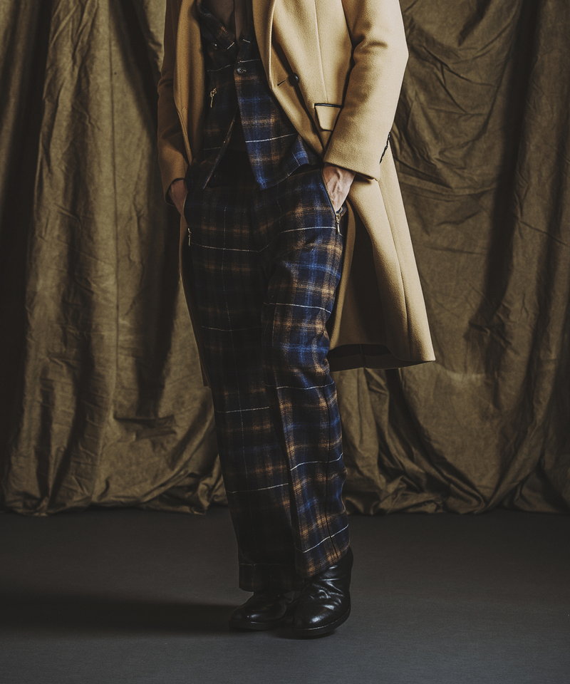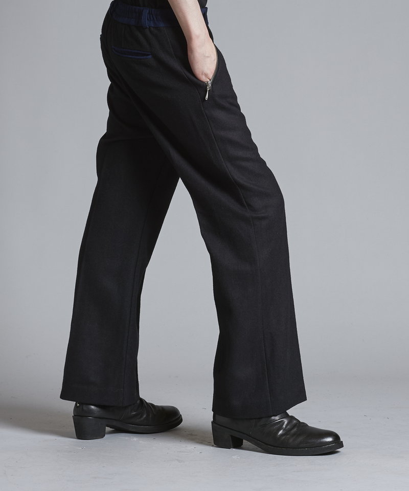 ジャケット同様にフロントポケットをファスナー仕様に変更し存在感のあるアクセントをプラスしたトラウザーズ。