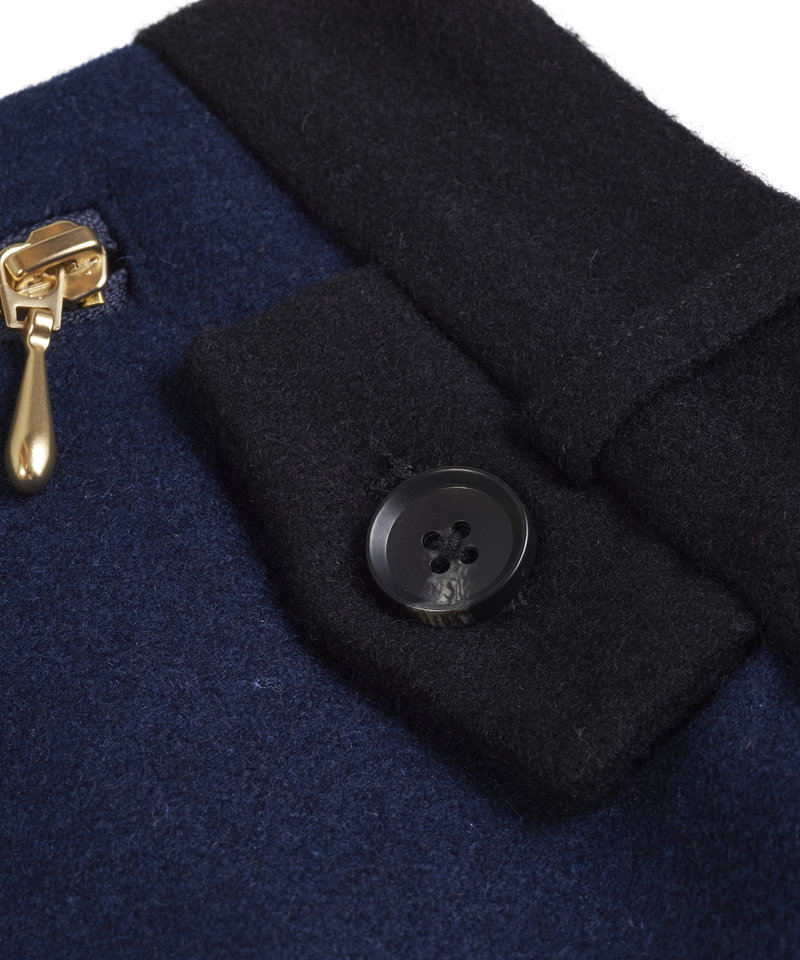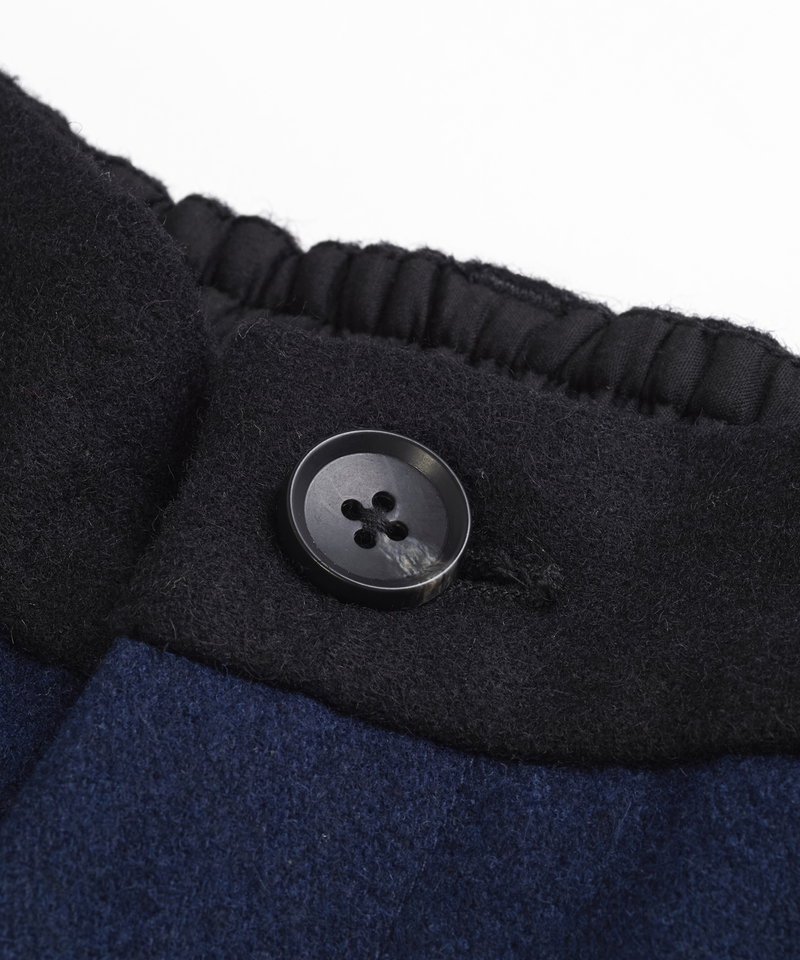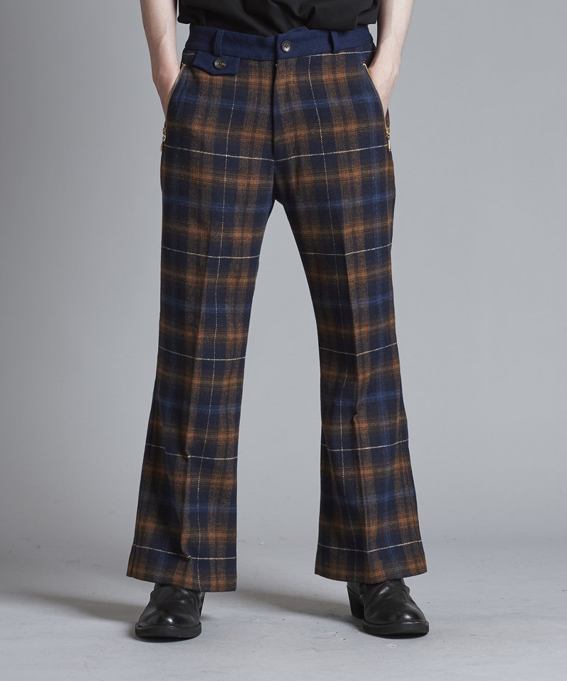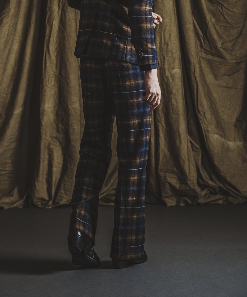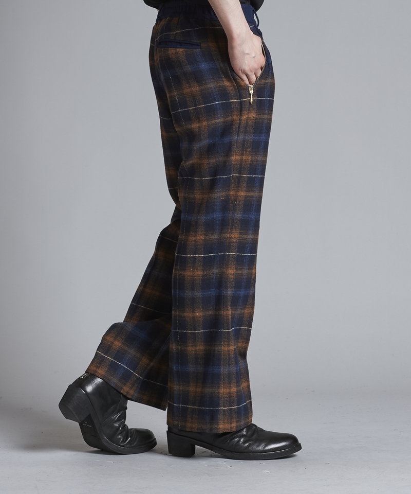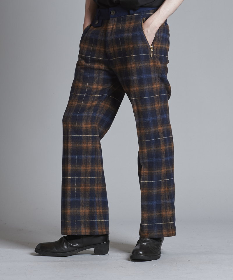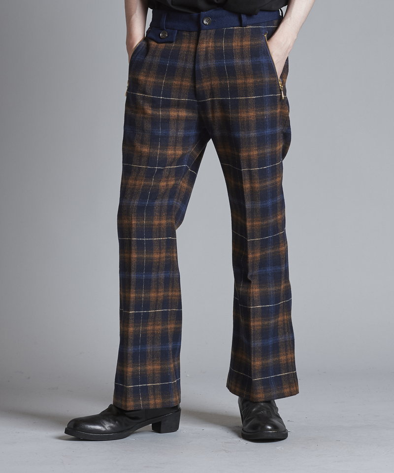 ジャケット同様にフロントポケットをファスナー仕様に変更し存在感のあるアクセントをプラスしたトラウザーズ。