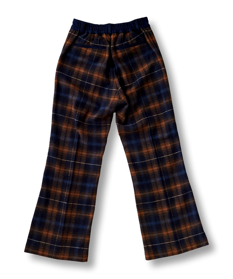 膝下から裾にかけて広がるフレアシルエットにより足のラインが細く長く見える様に設計された人気のシルエット。