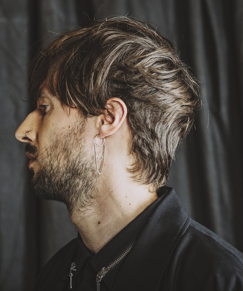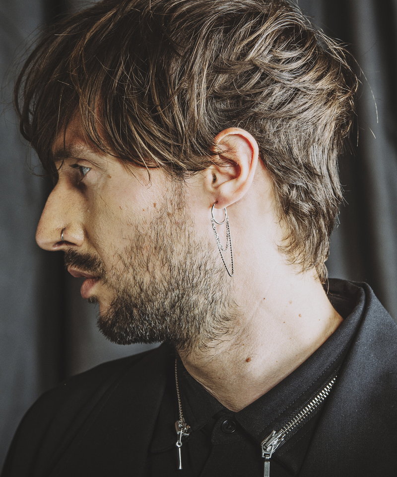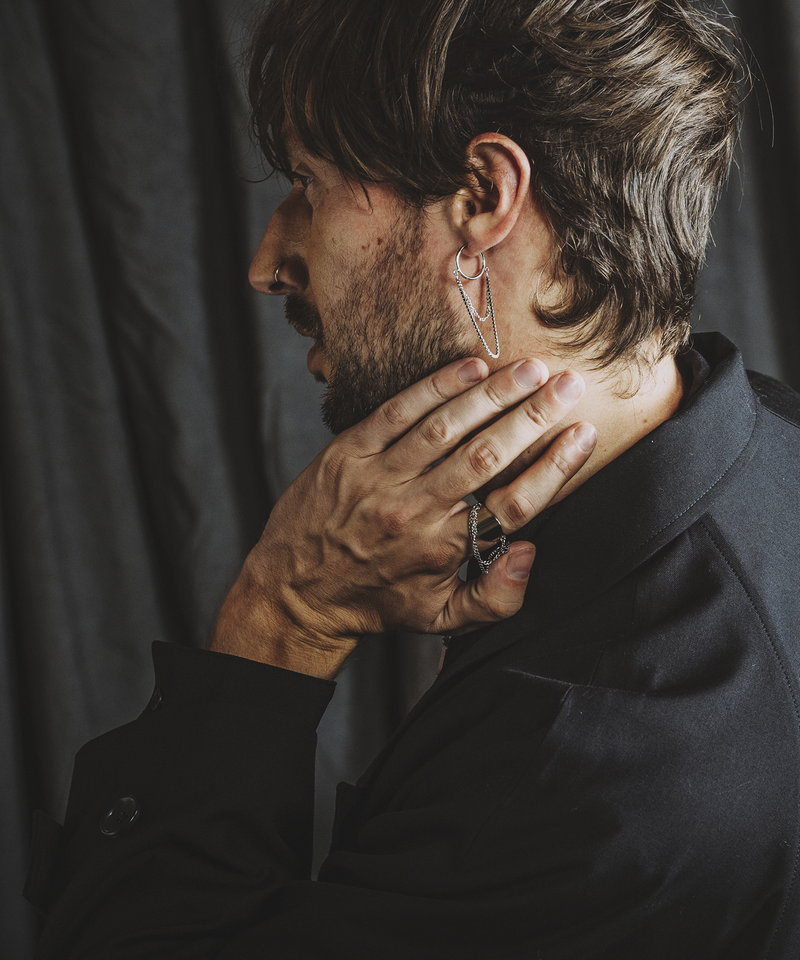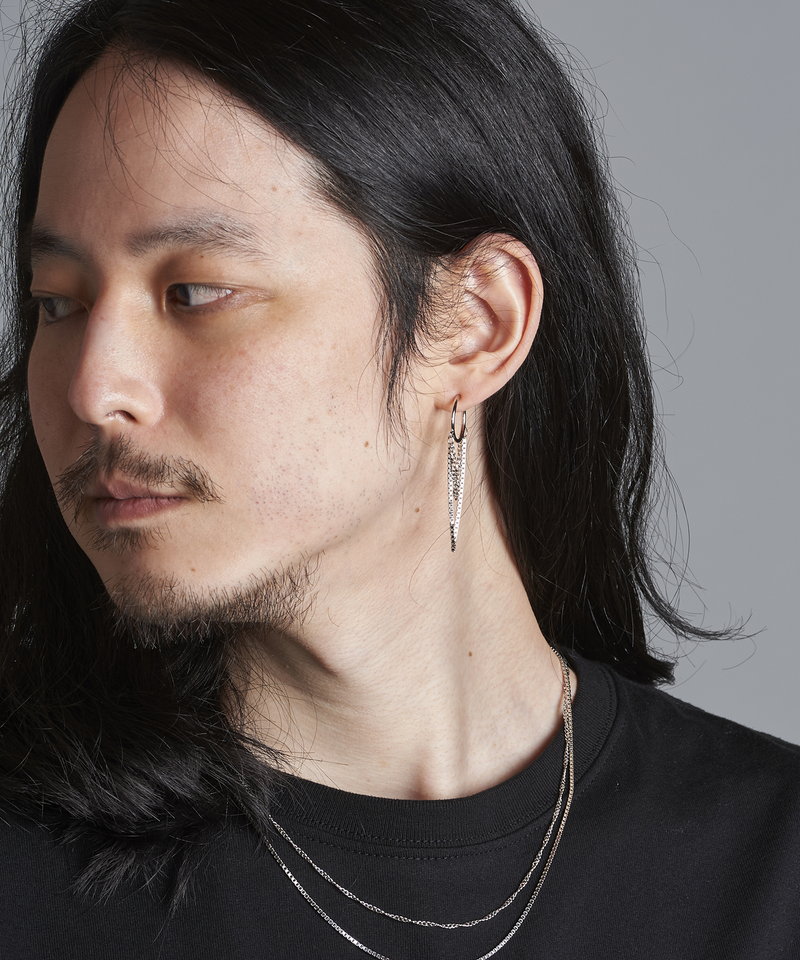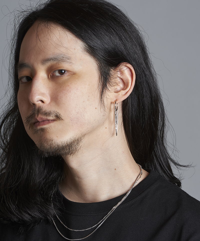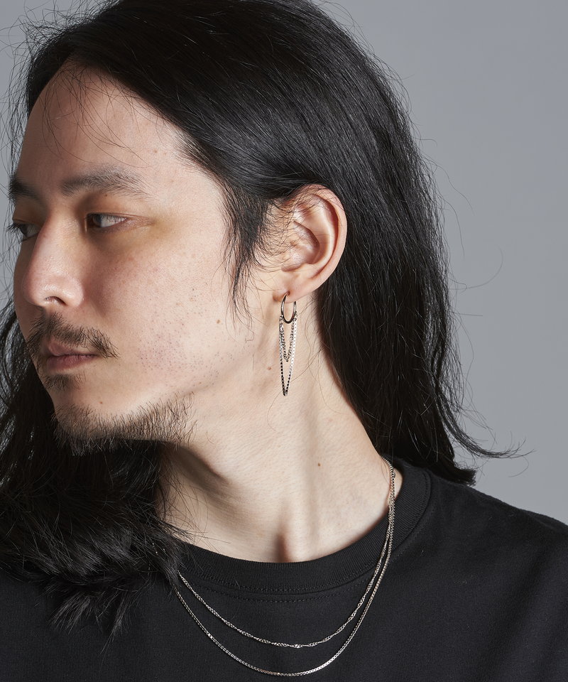 動きに合わせて様々に表情を変えて揺れるチェーンが目を引くユニセックスな印象のアイテム。