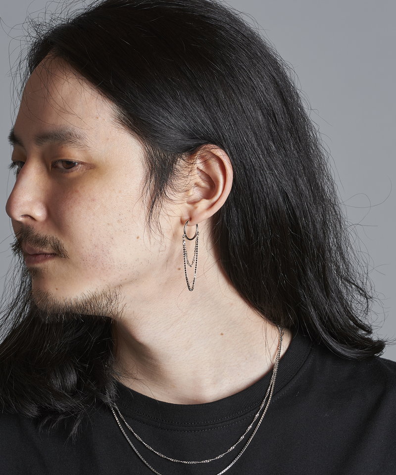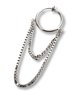 フープ状に繋げた2種類のチェーンが特徴的なフェイクピアス。