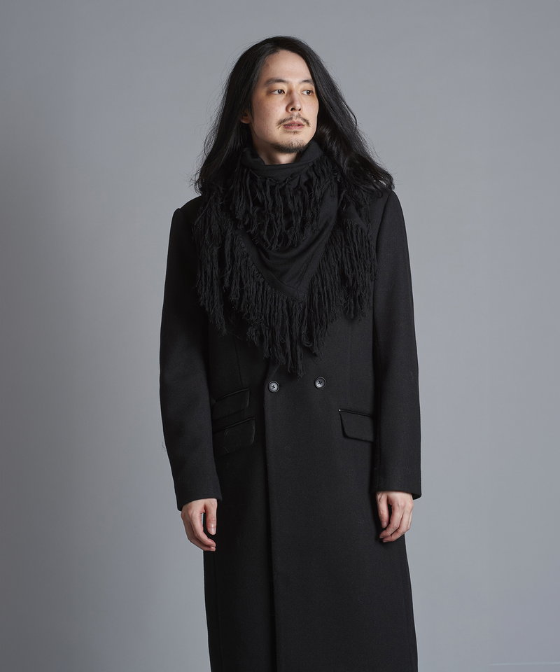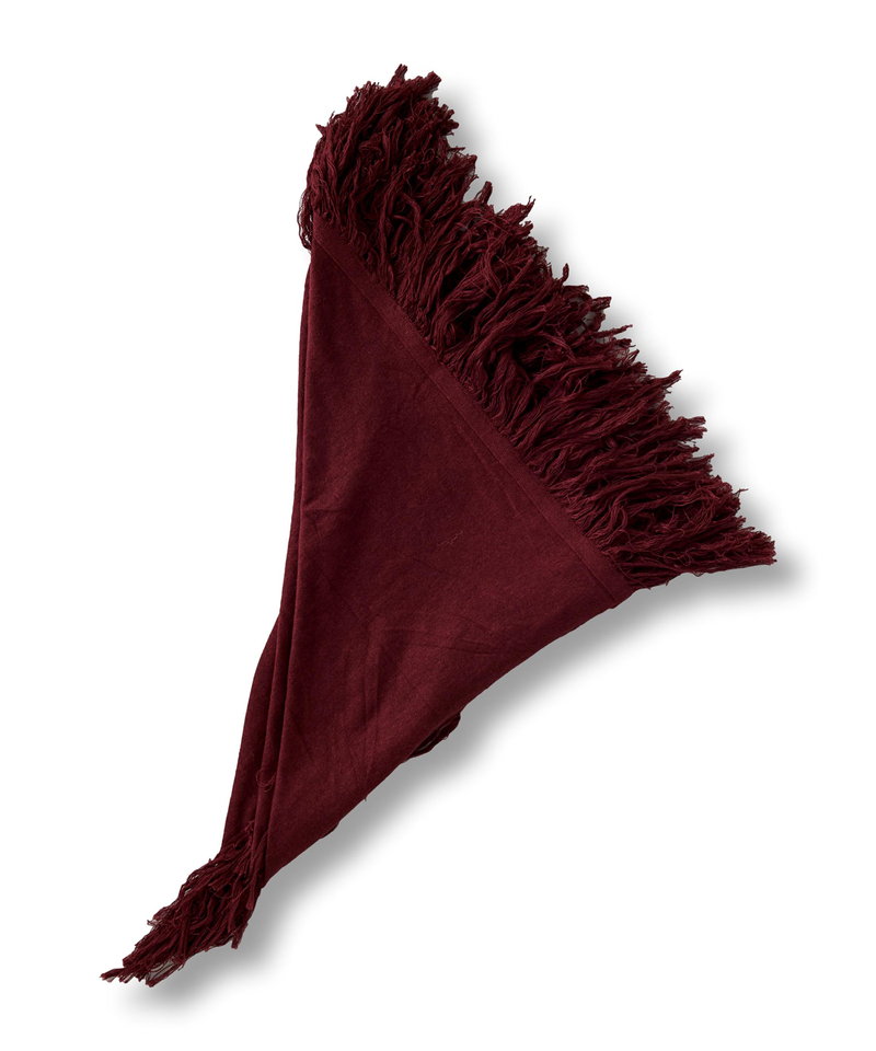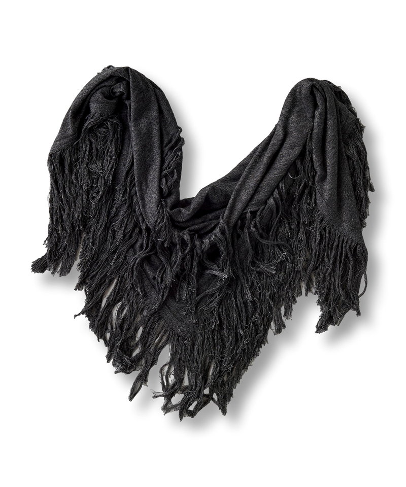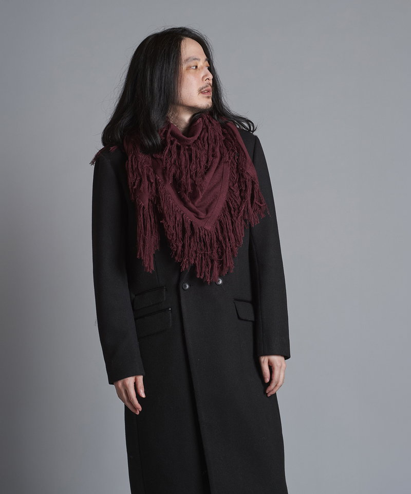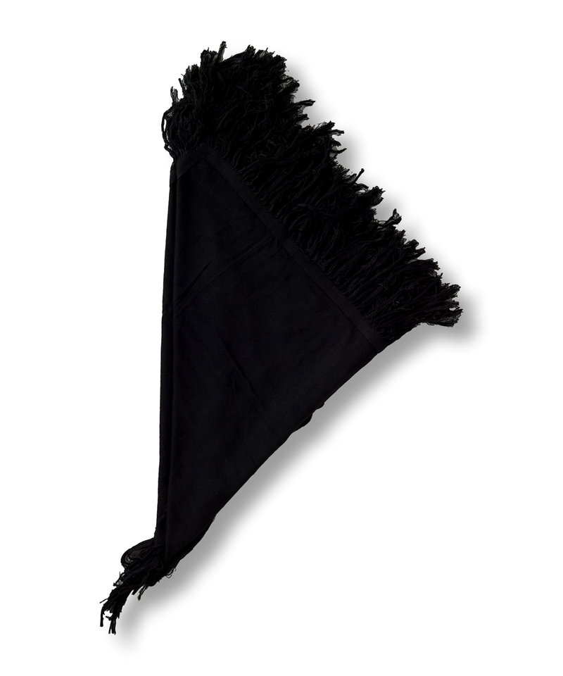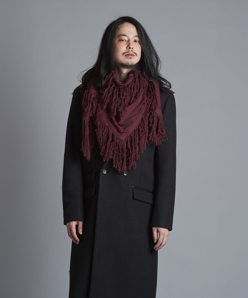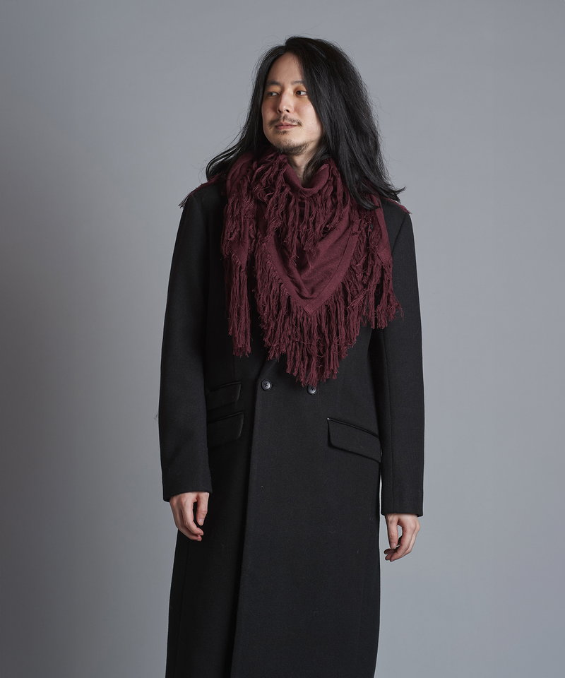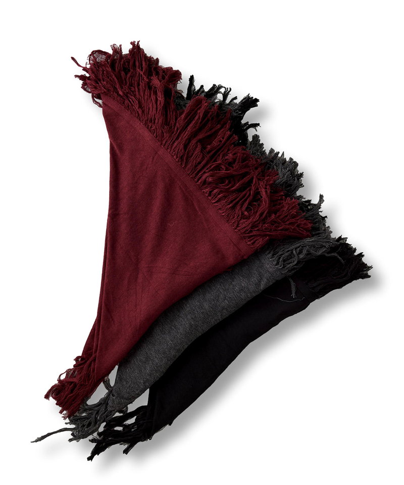 四辺だけでなく、中央にも十字にあしらったフリンジのアクセントが、巻き付けた際のヴィジュアルをより印象的な見栄えに昇華。