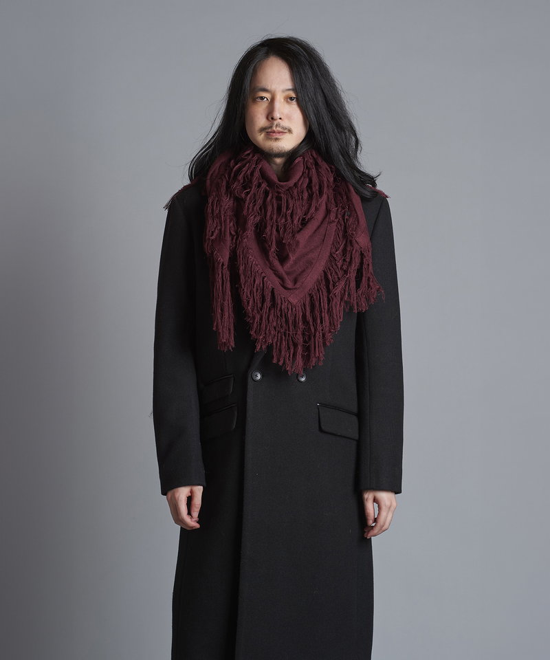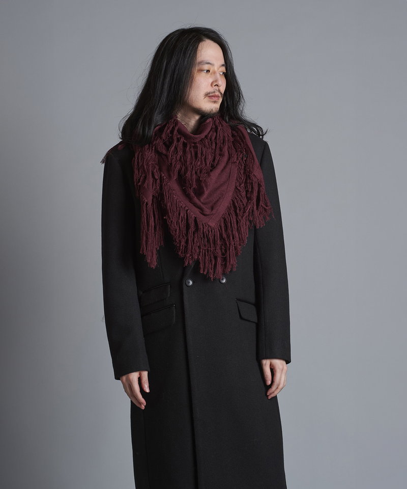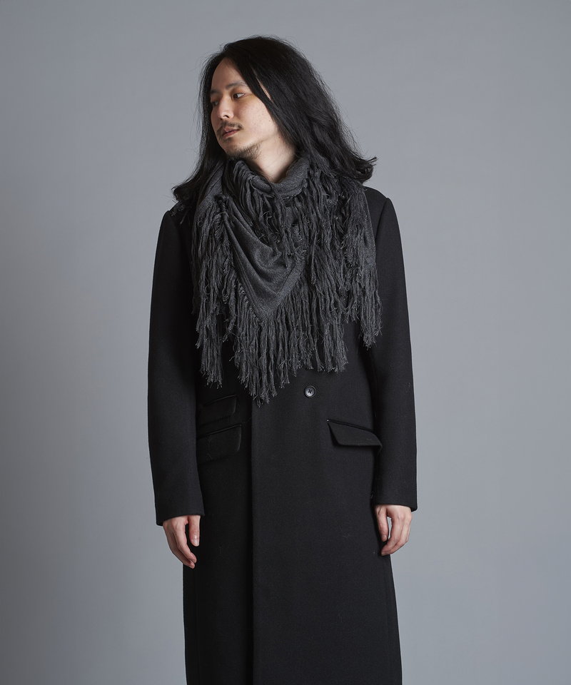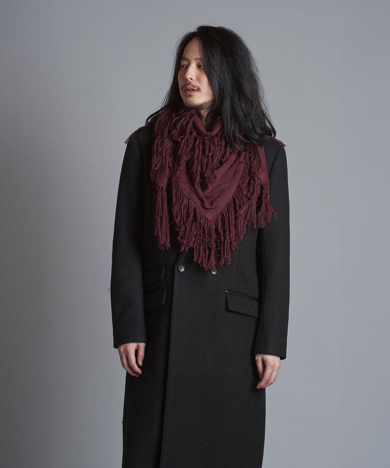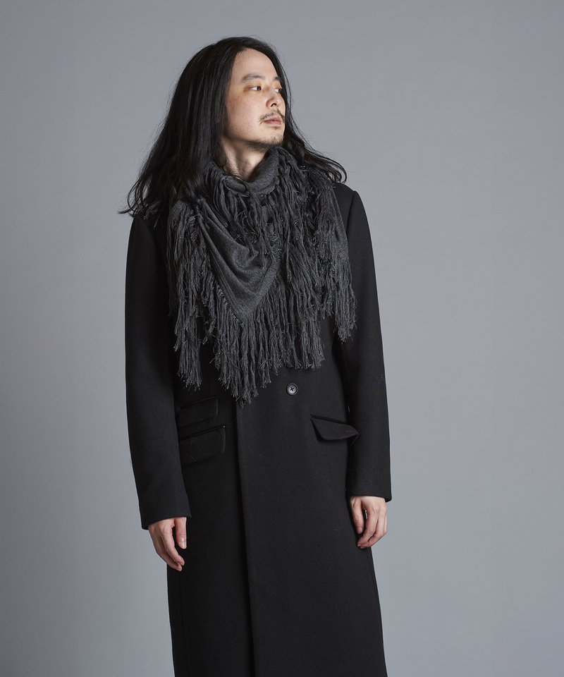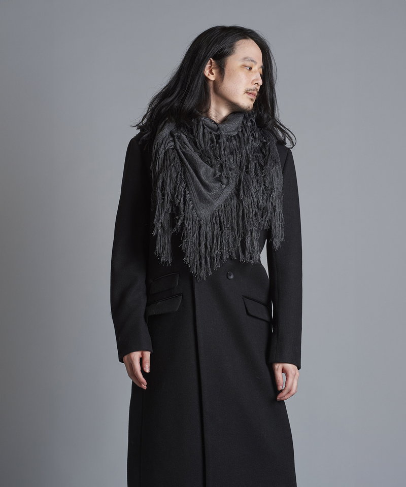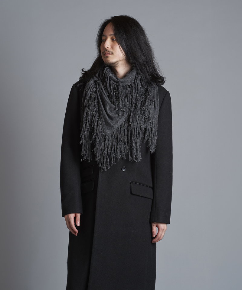 存在感のあるフリンジデザインでスタイリングにモードな雰囲気をプラスするニットストール。