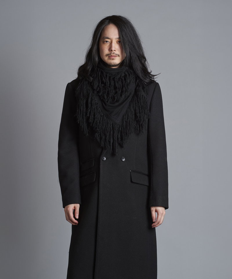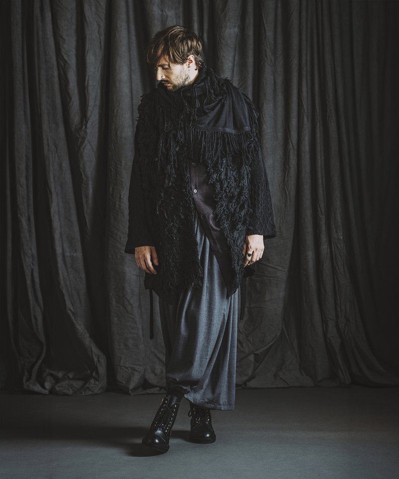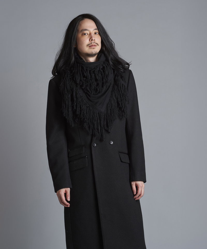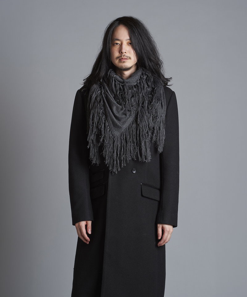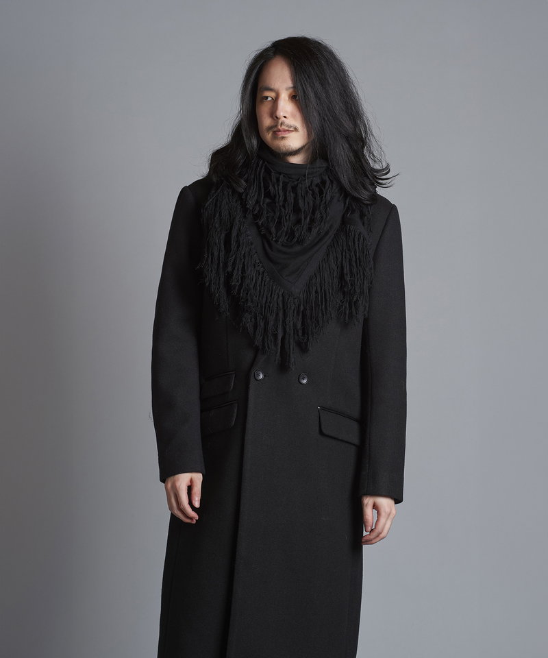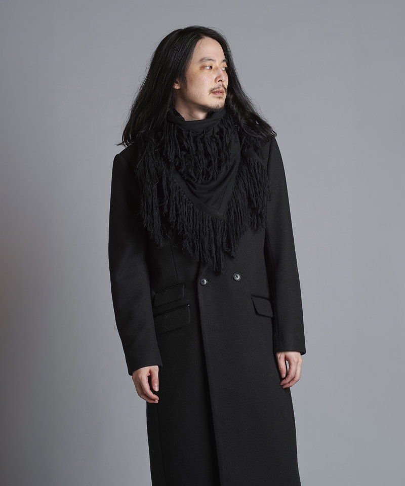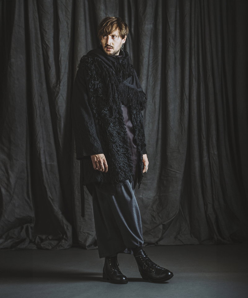 存在感のあるフリンジデザインでスタイリングにモードな雰囲気をプラスするニットストール。