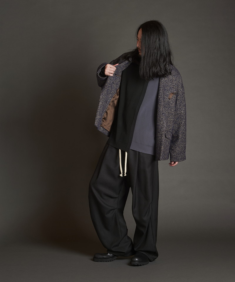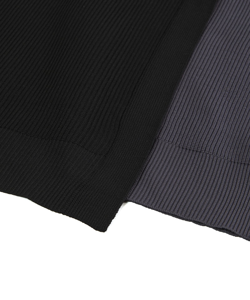 身頃の編み地には片畦編みを採用し、立体的でふっくらとしたフォルムがゆったりとしたリラックス感のあるシルエットとも好相性。