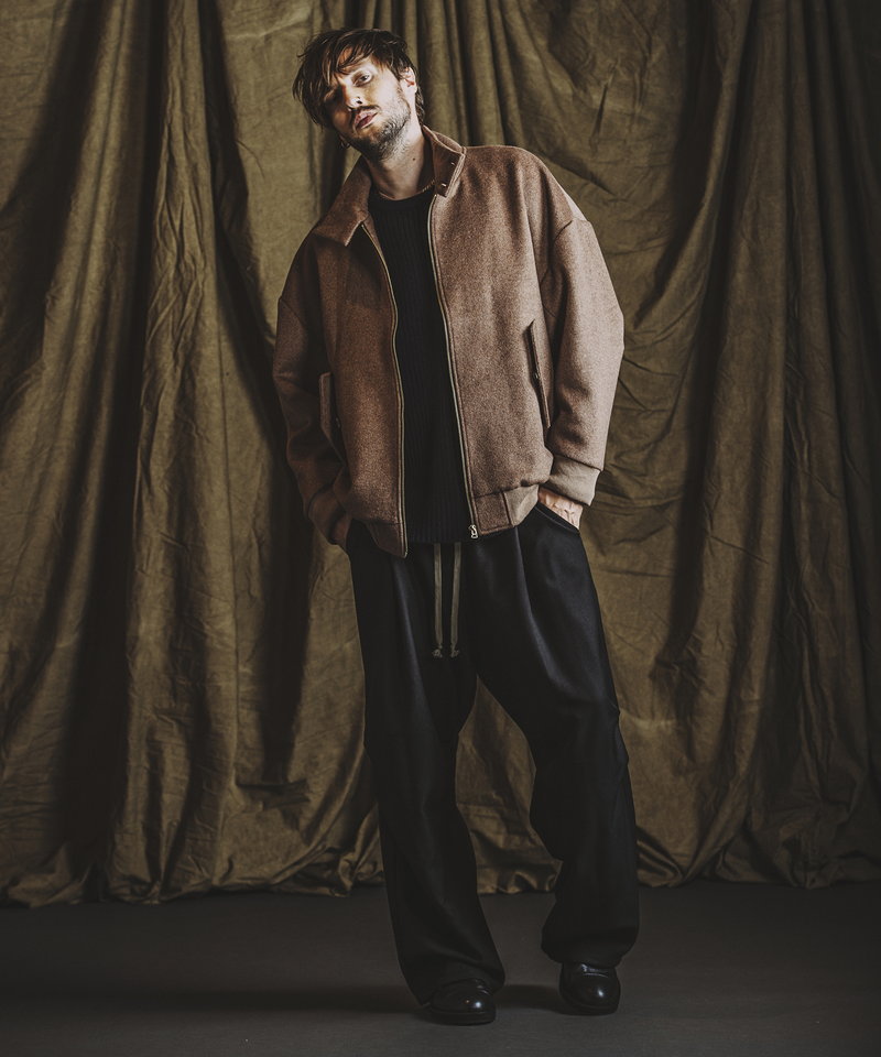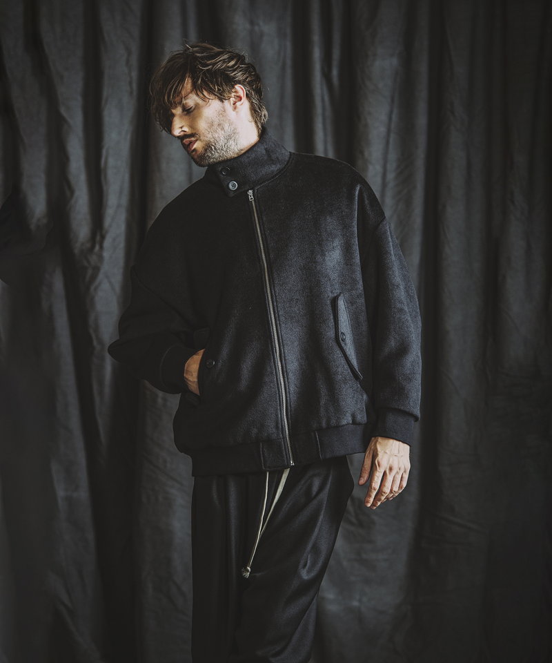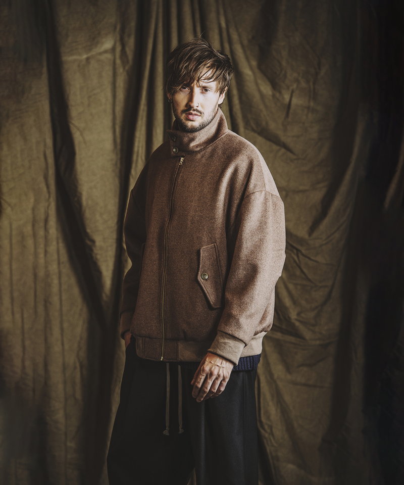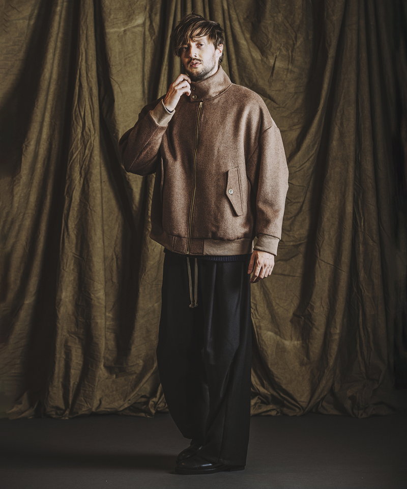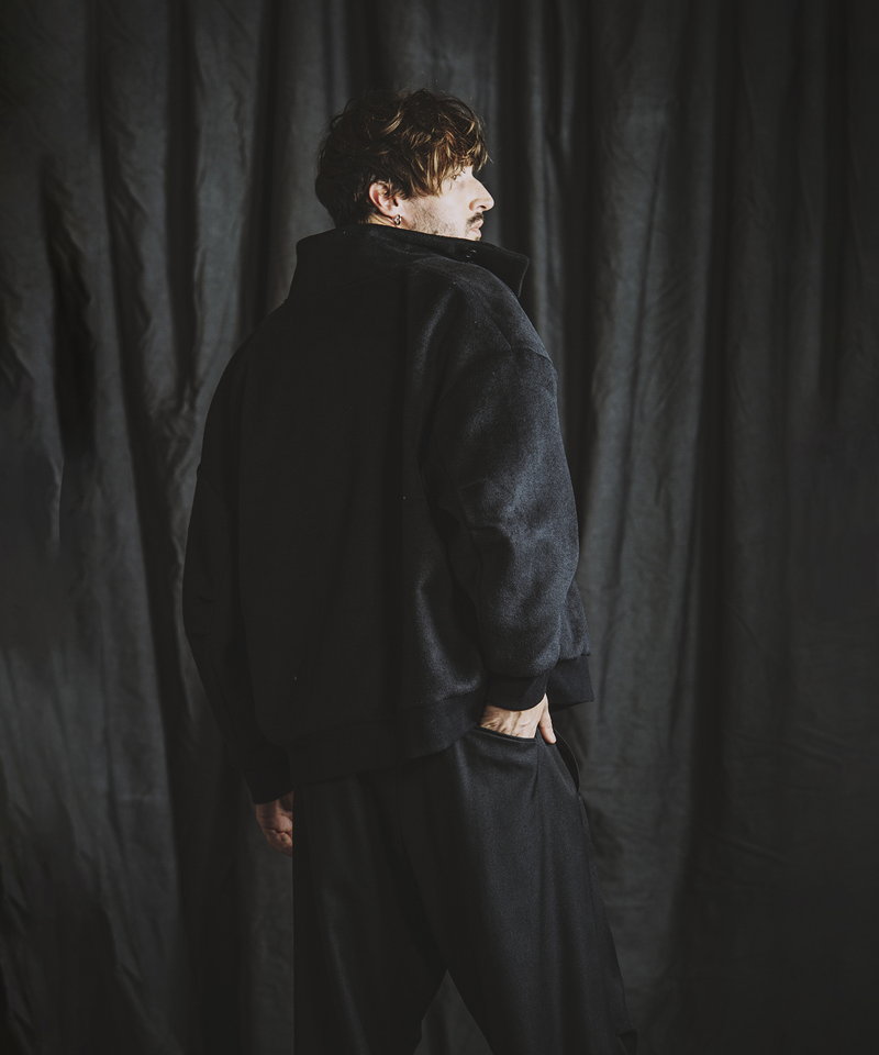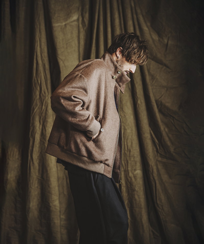 毛足のあるシャギータッチの柔らかい風合いを感じる生地により季節感にマッチした暖かみのある表情のトラックジャケット。