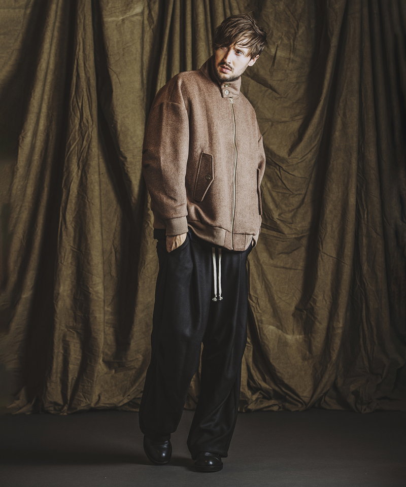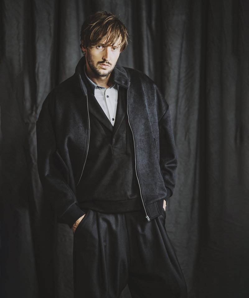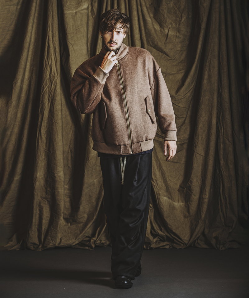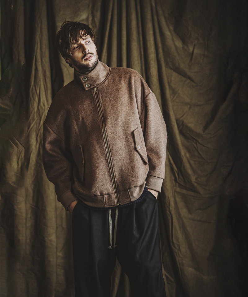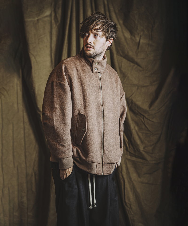 毛足のあるシャギータッチの柔らかい風合いを感じる生地により季節感にマッチした暖かみのある表情のトラックジャケット。