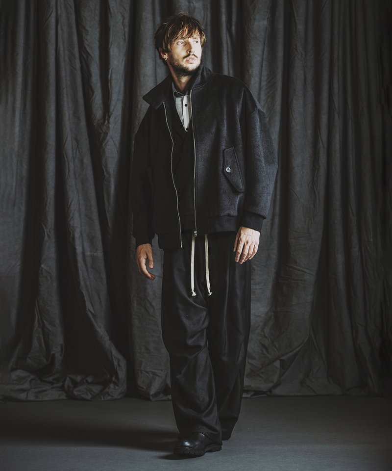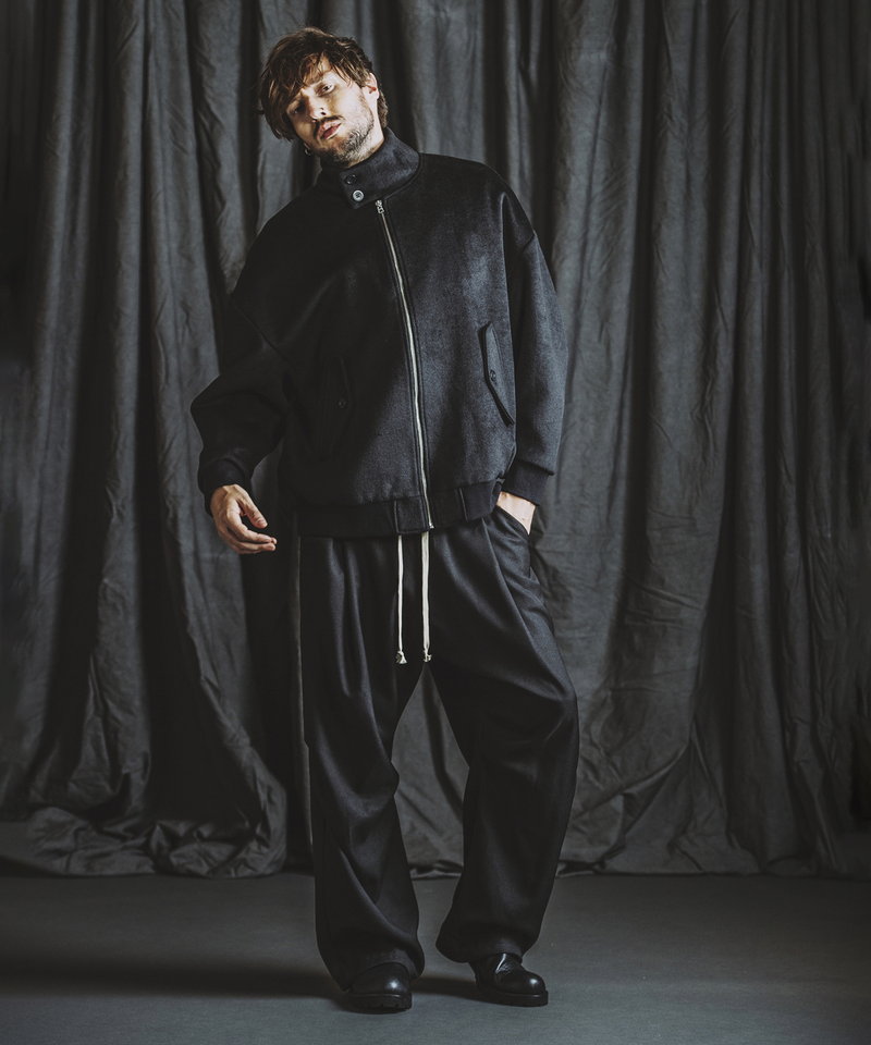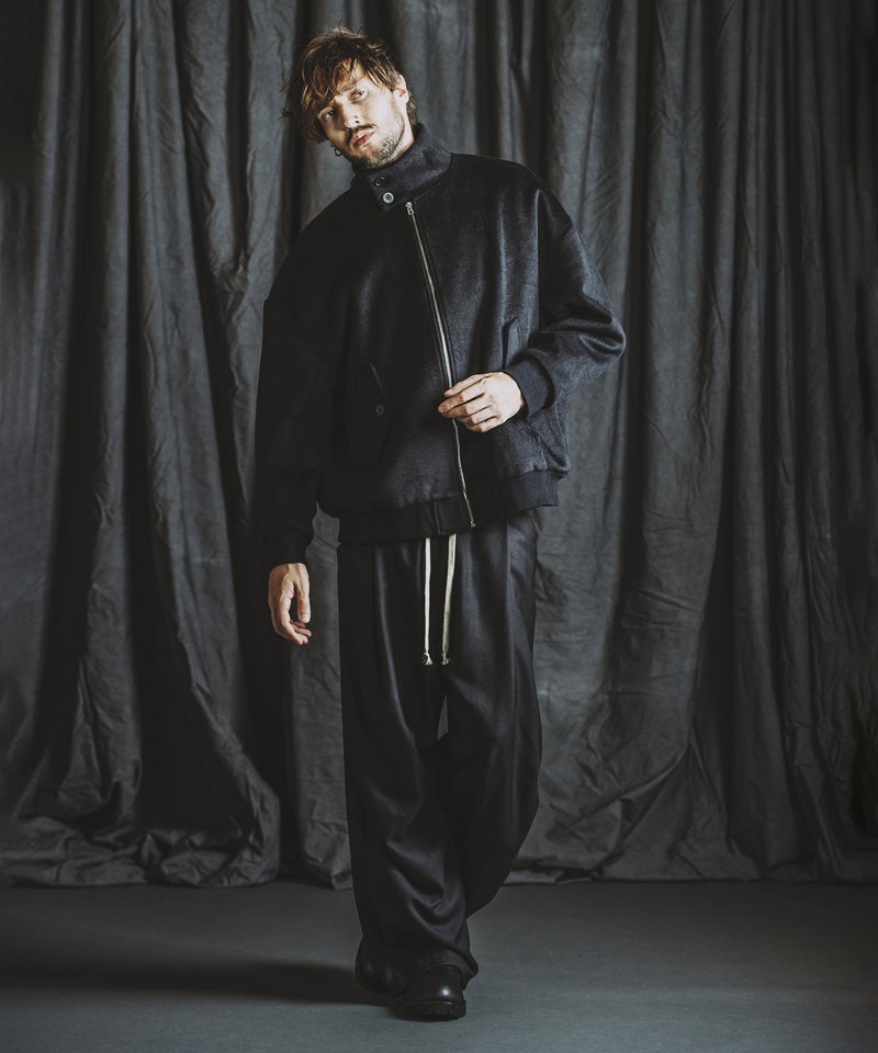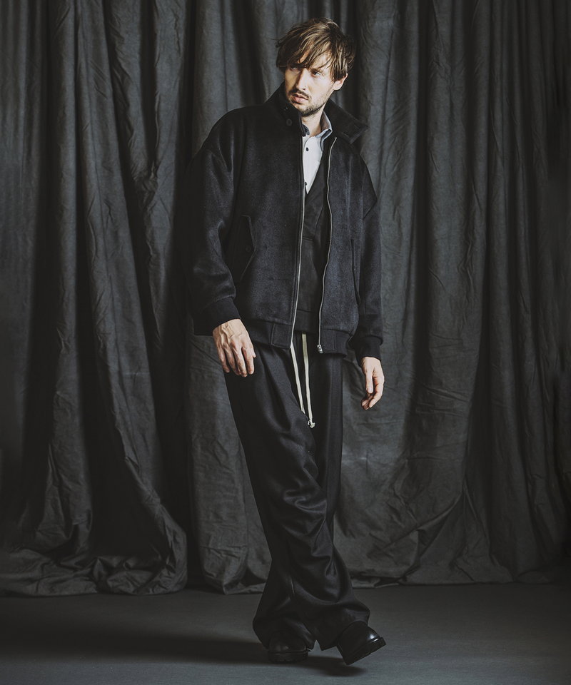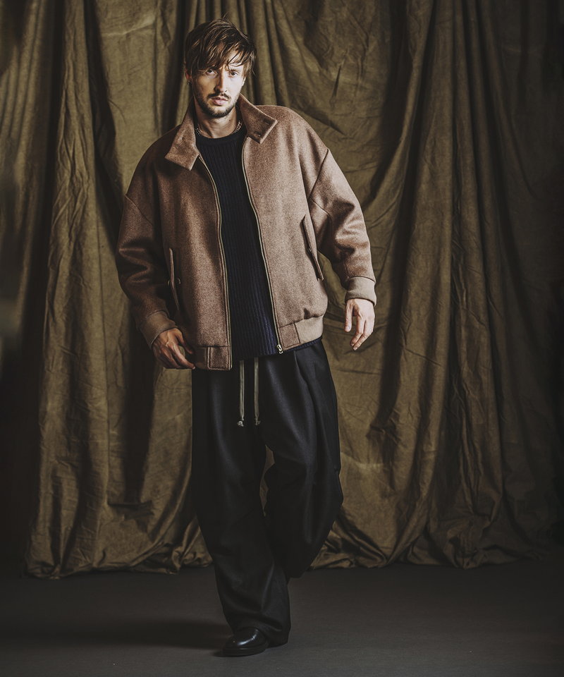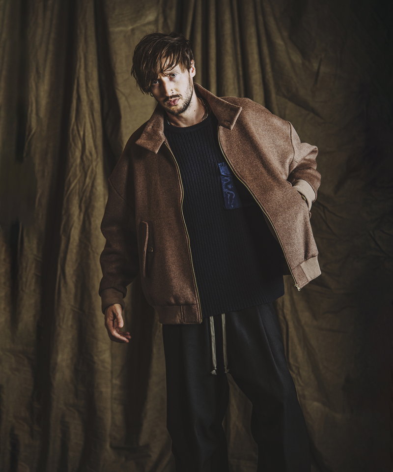 毛足のあるシャギータッチの柔らかい風合いを感じる生地により季節感にマッチした暖かみのある表情のトラックジャケット。