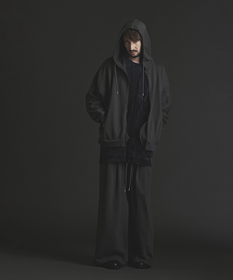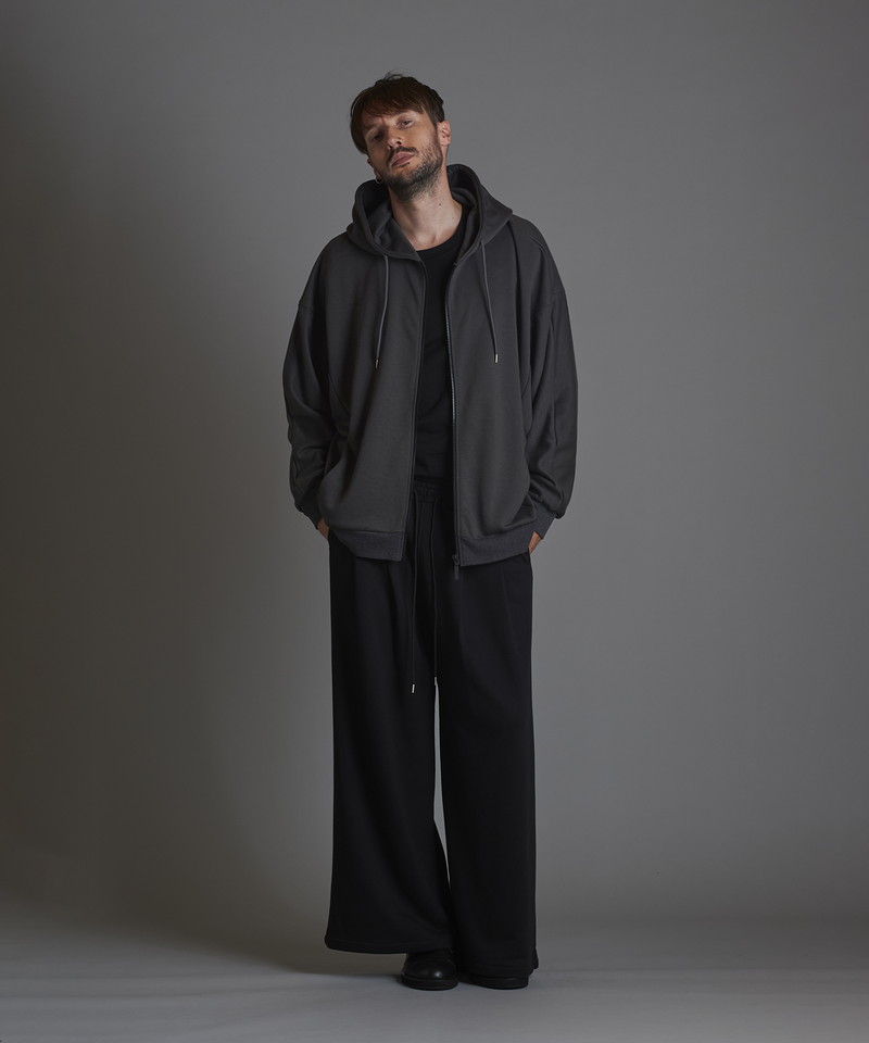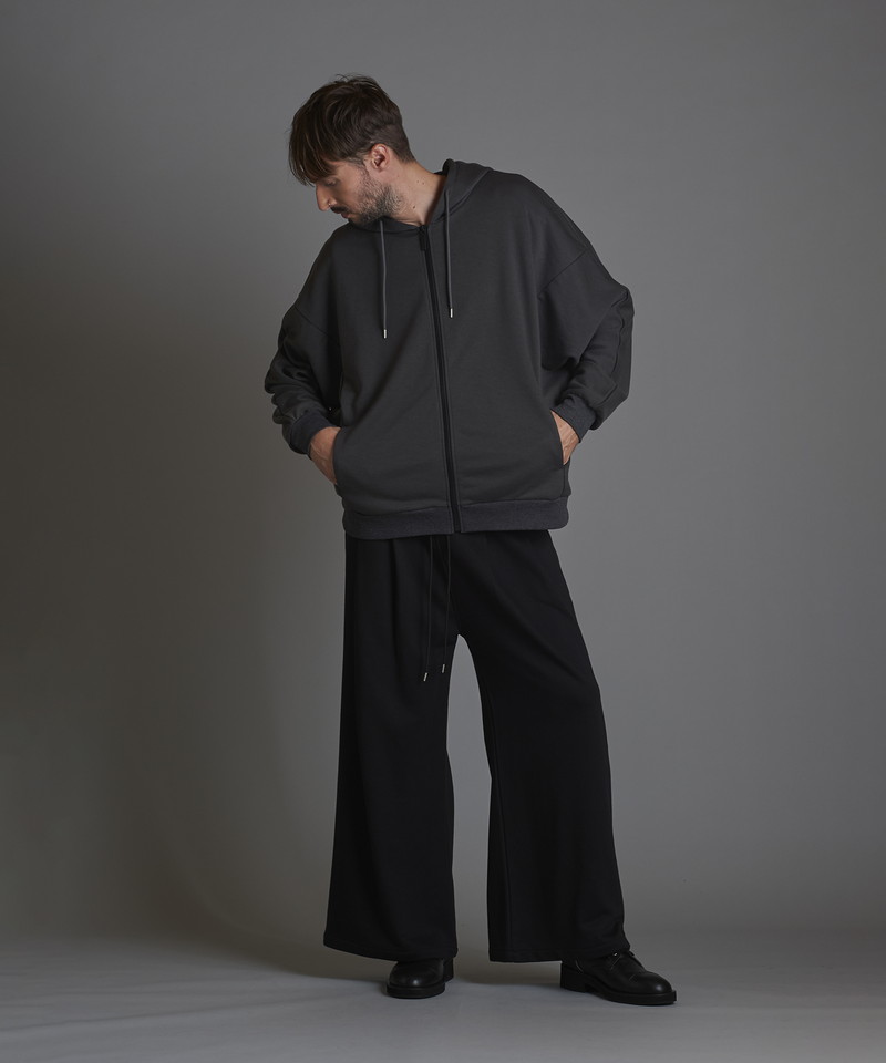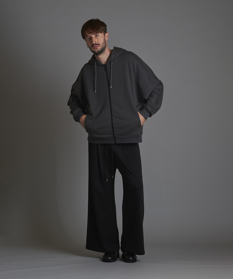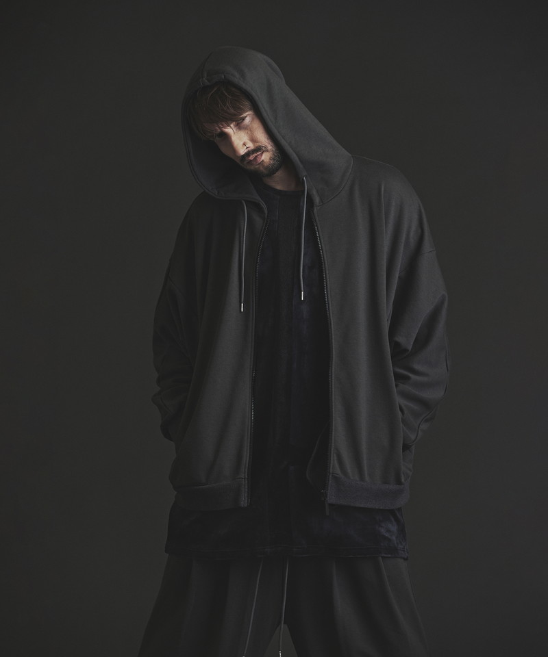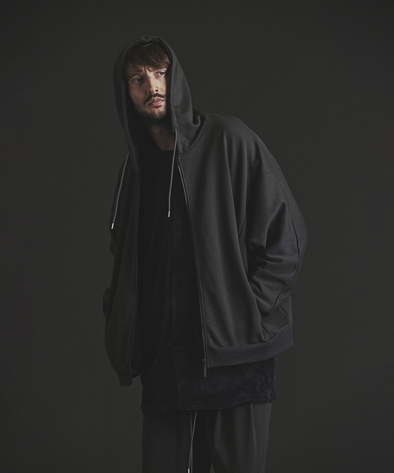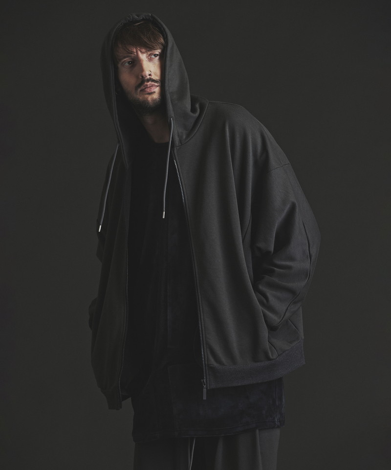 肩線のないドルマンシルエットをベースにオーバーサイズに仕上げたZIPパーカ。