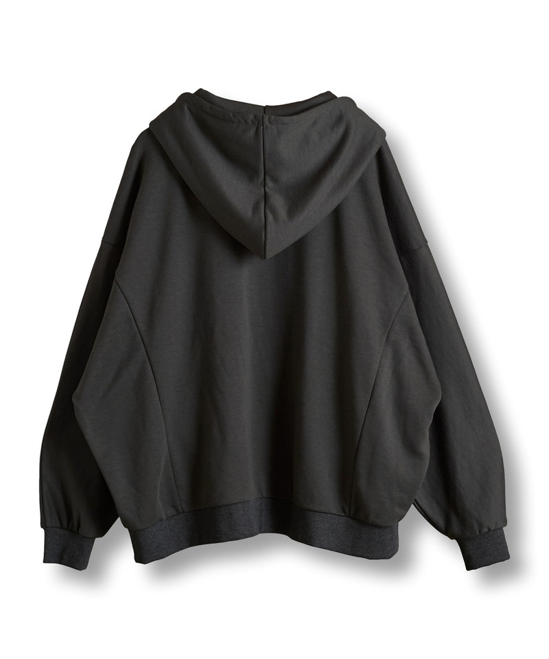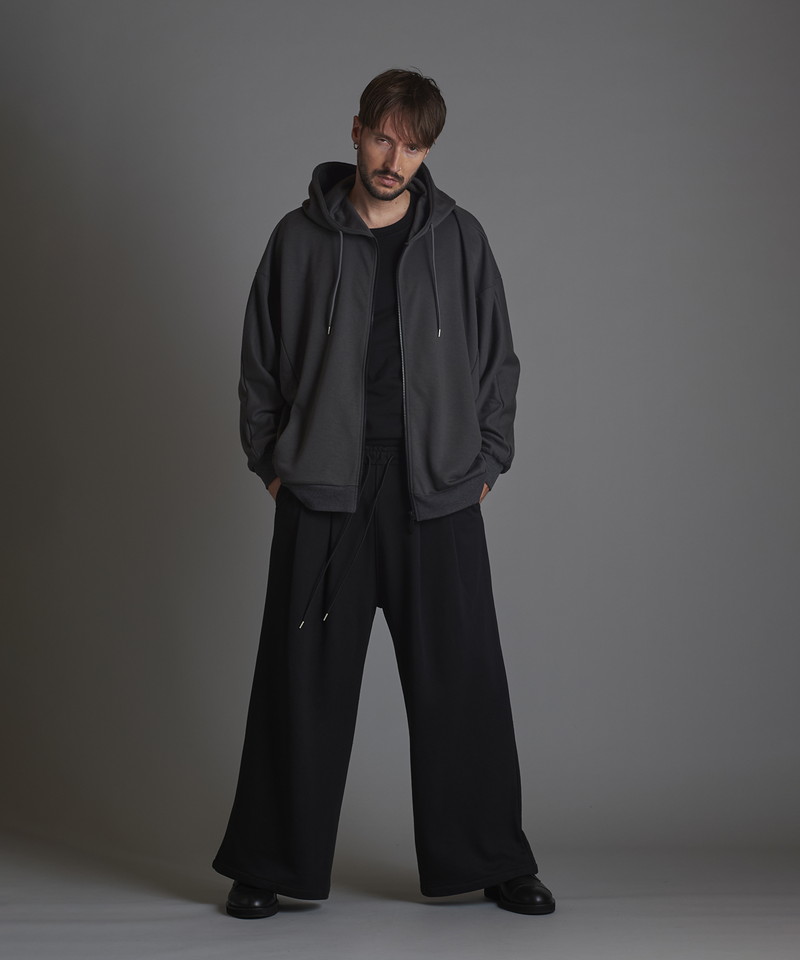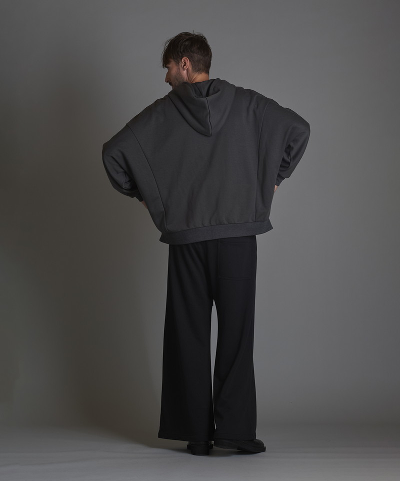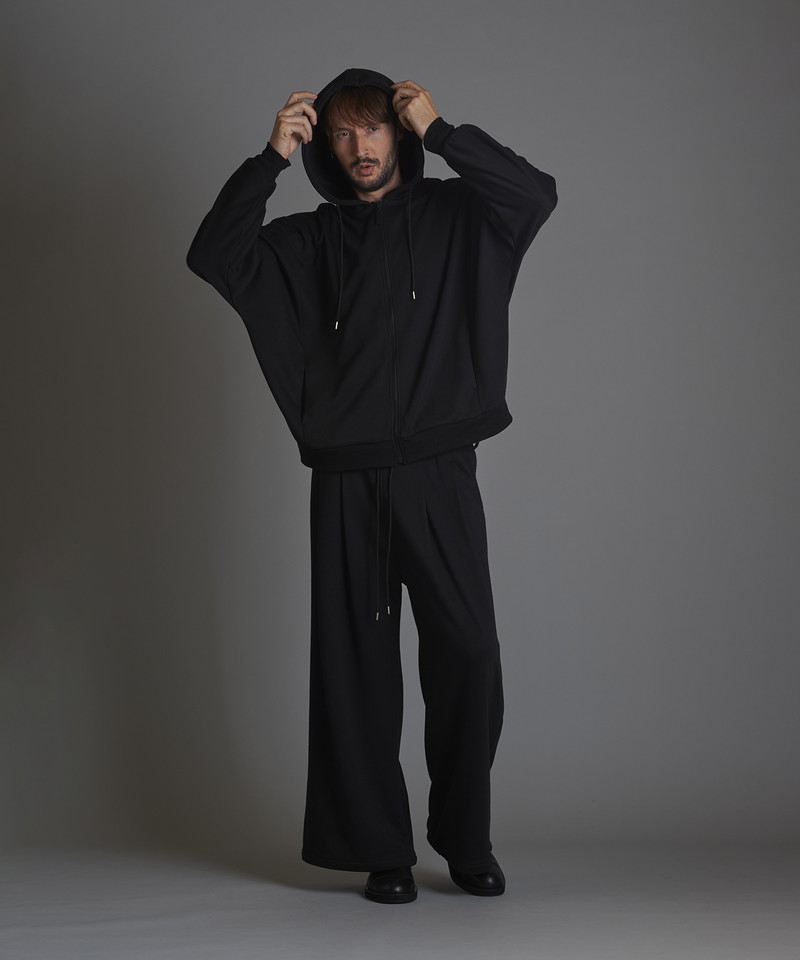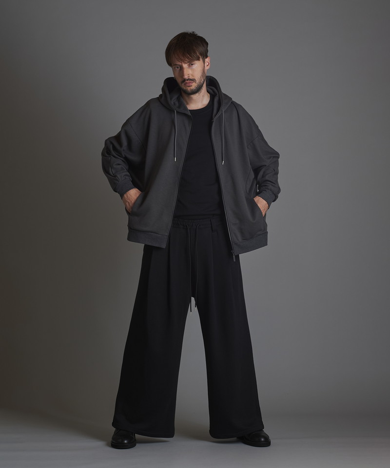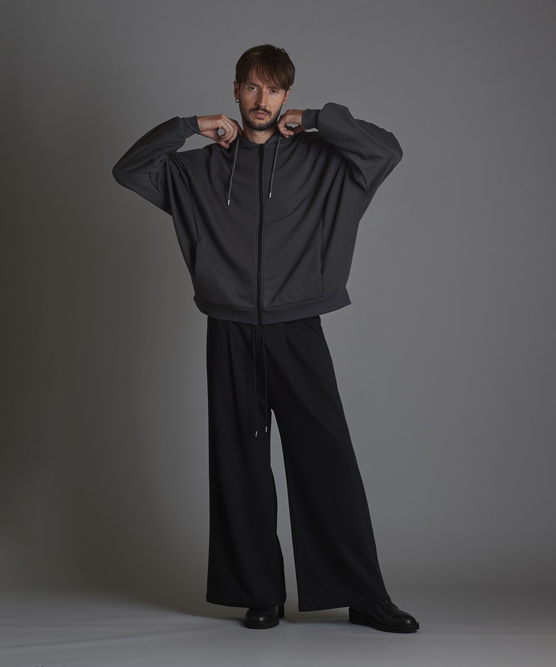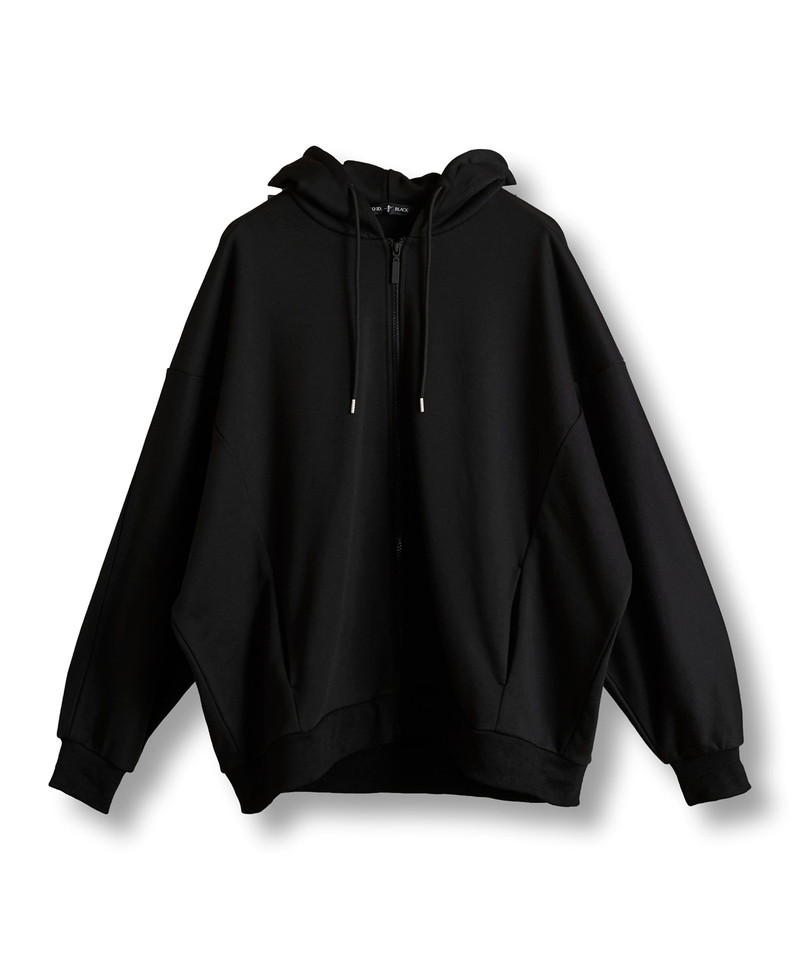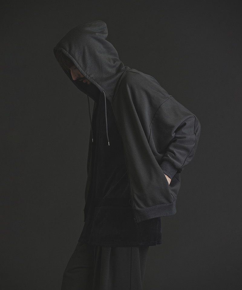 肩線のないドルマンシルエットをベースにオーバーサイズに仕上げたZIPパーカ。