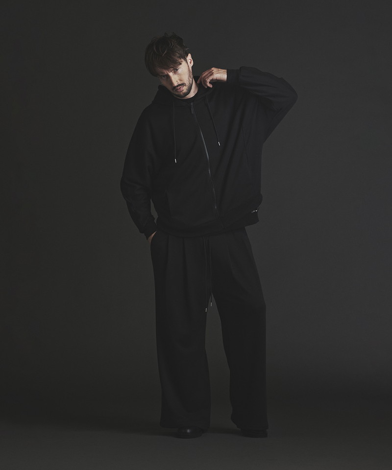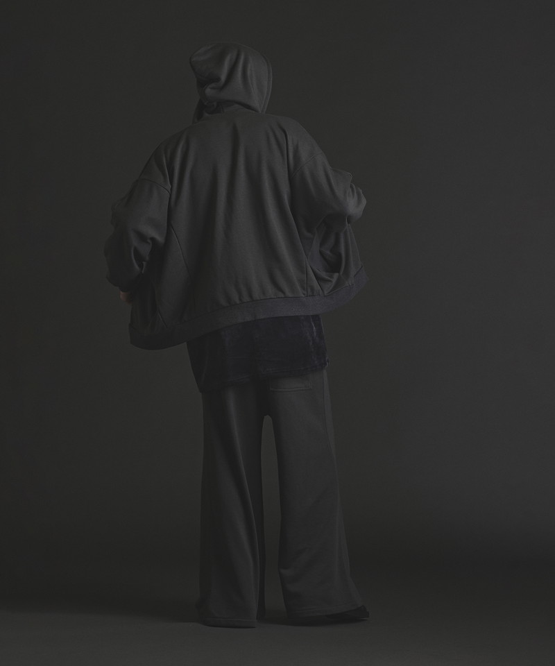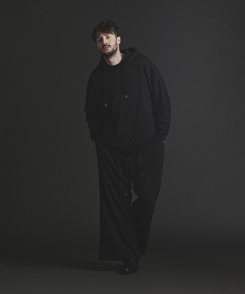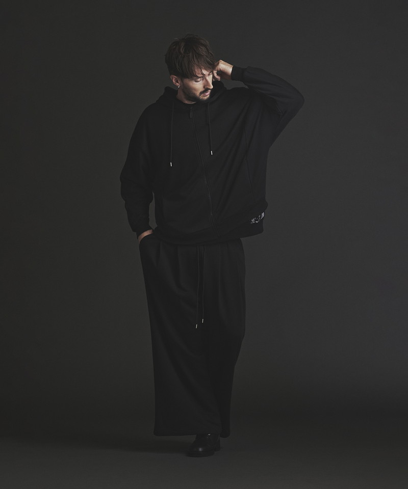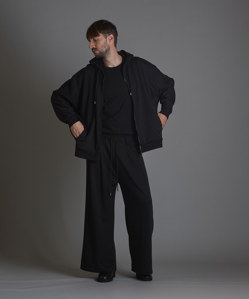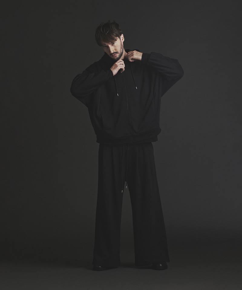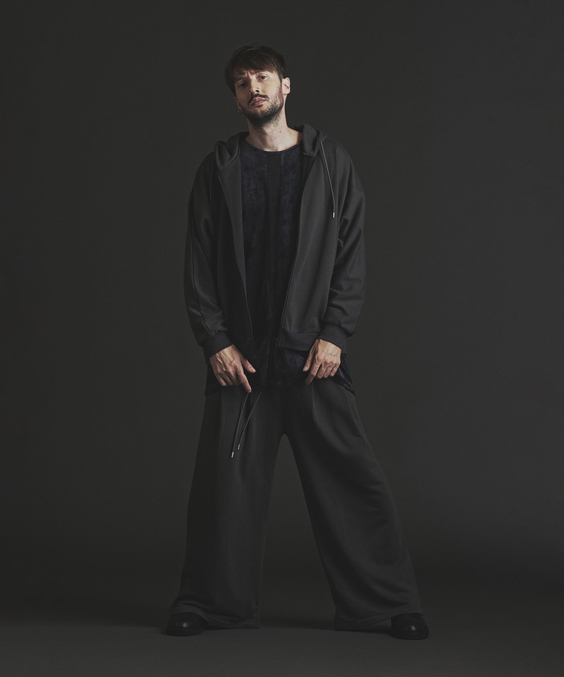 肩線のないドルマンシルエットをベースにオーバーサイズに仕上げたZIPパーカ。