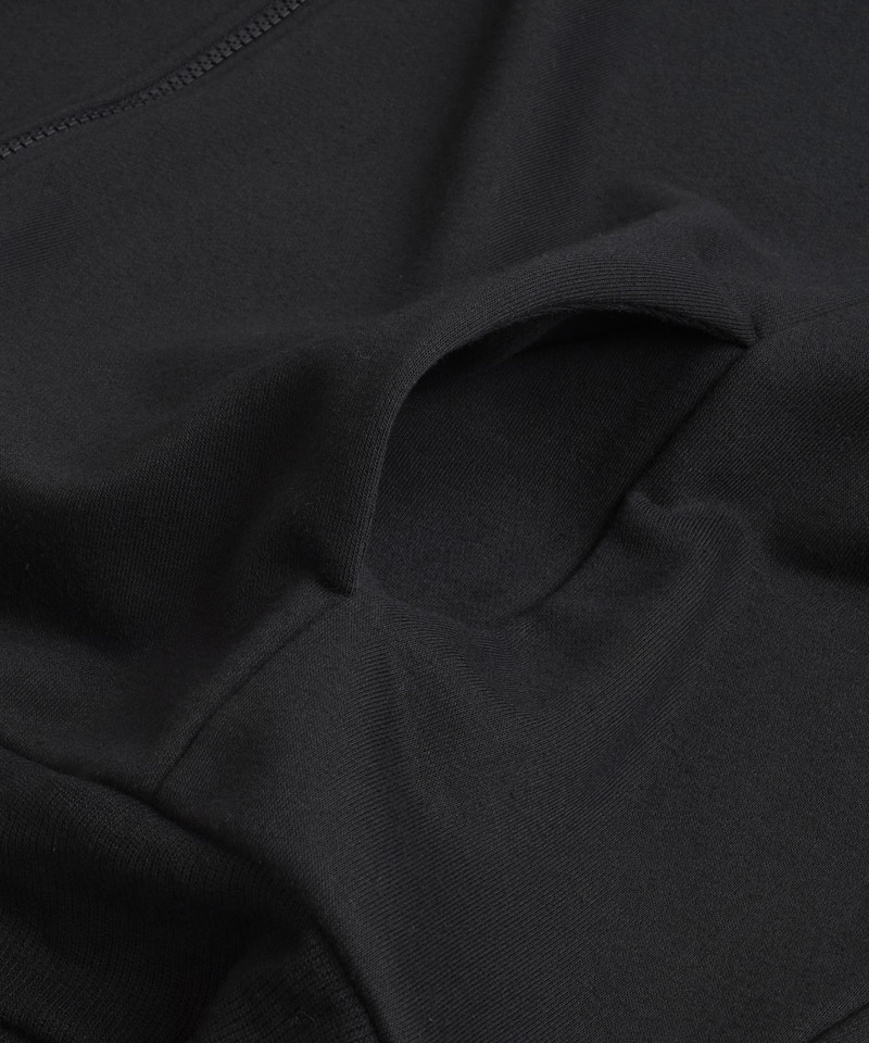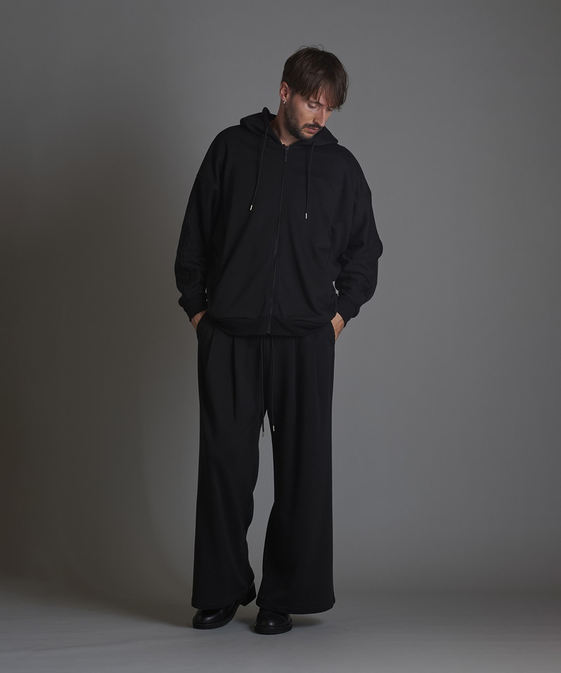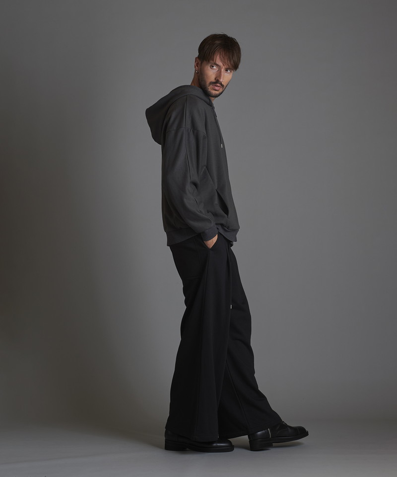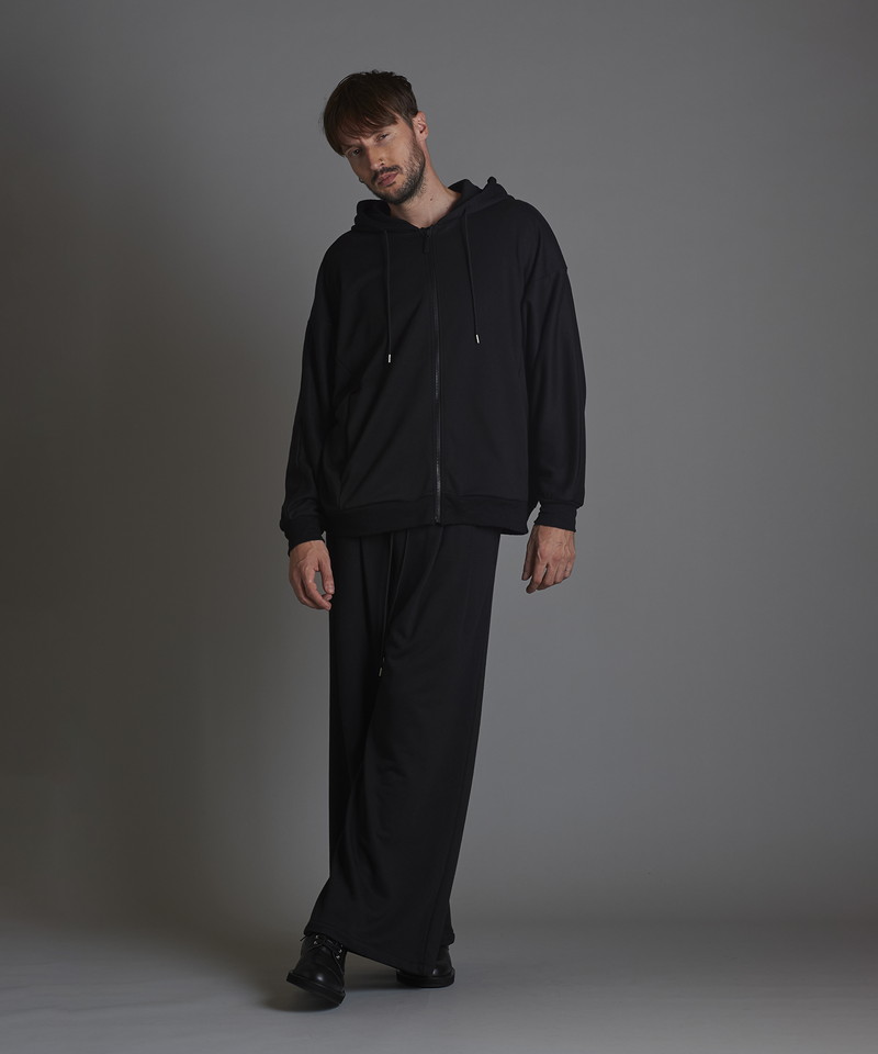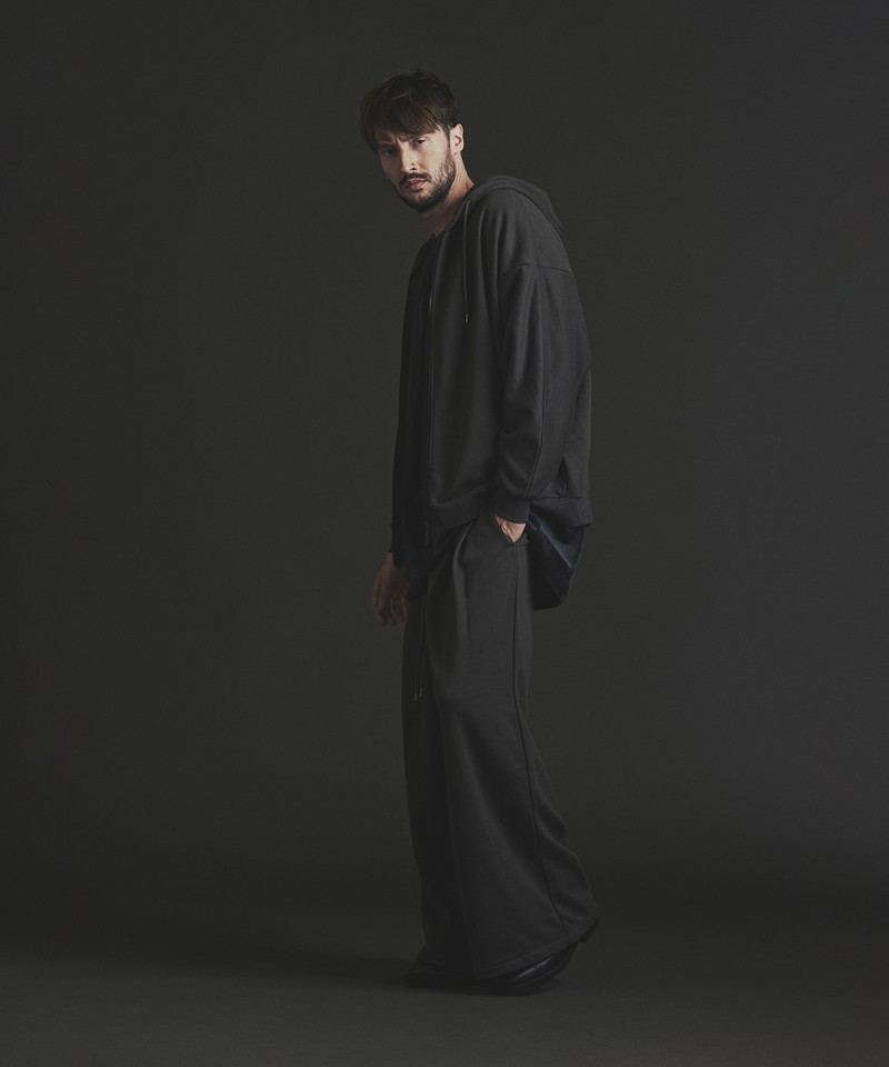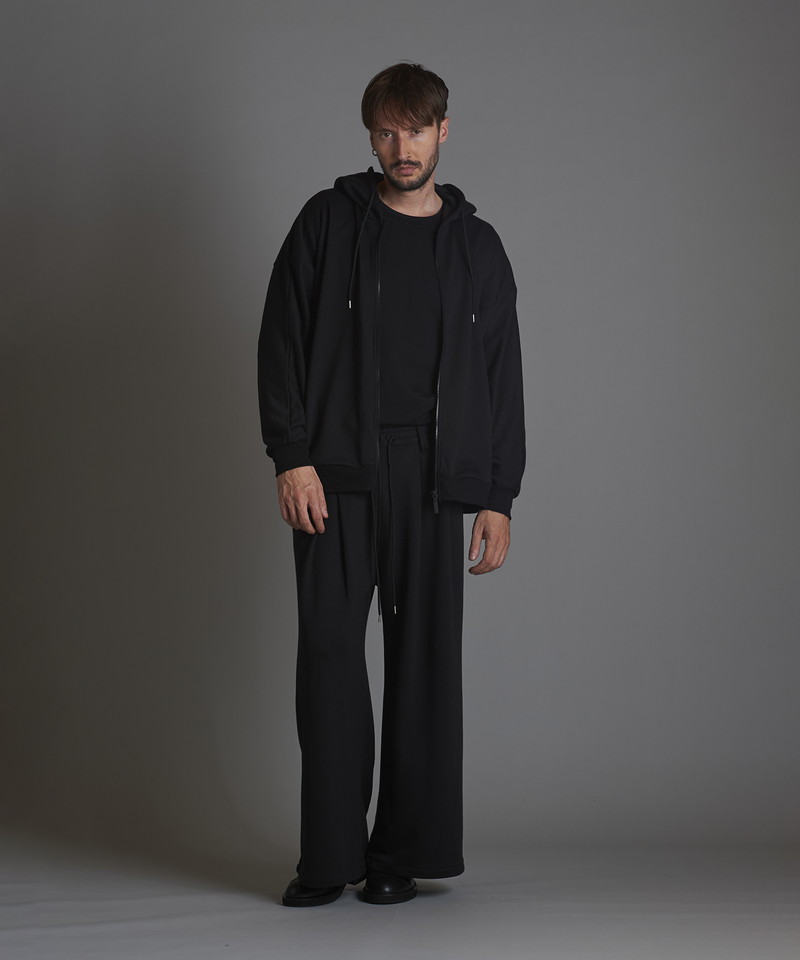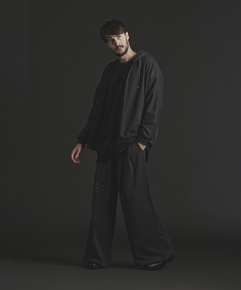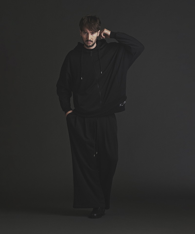 肩線のないドルマンシルエットをベースにオーバーサイズに仕上げたZIPパーカ。