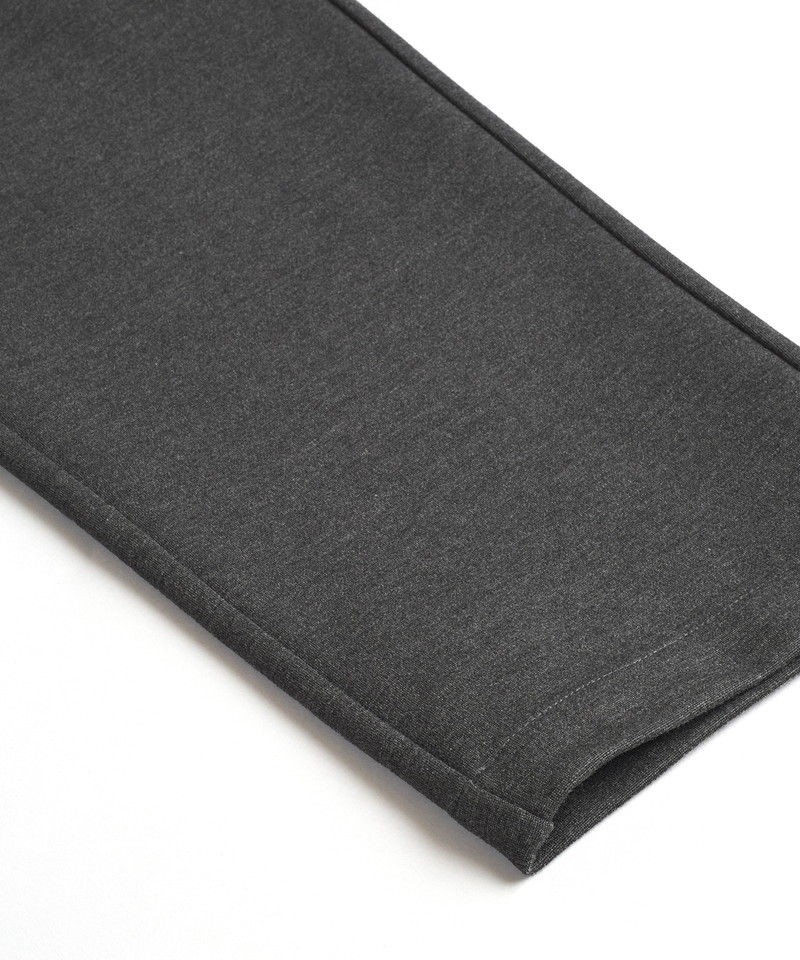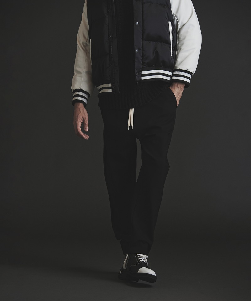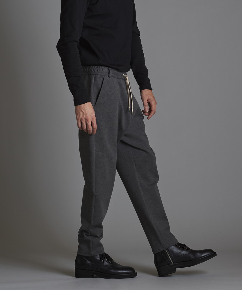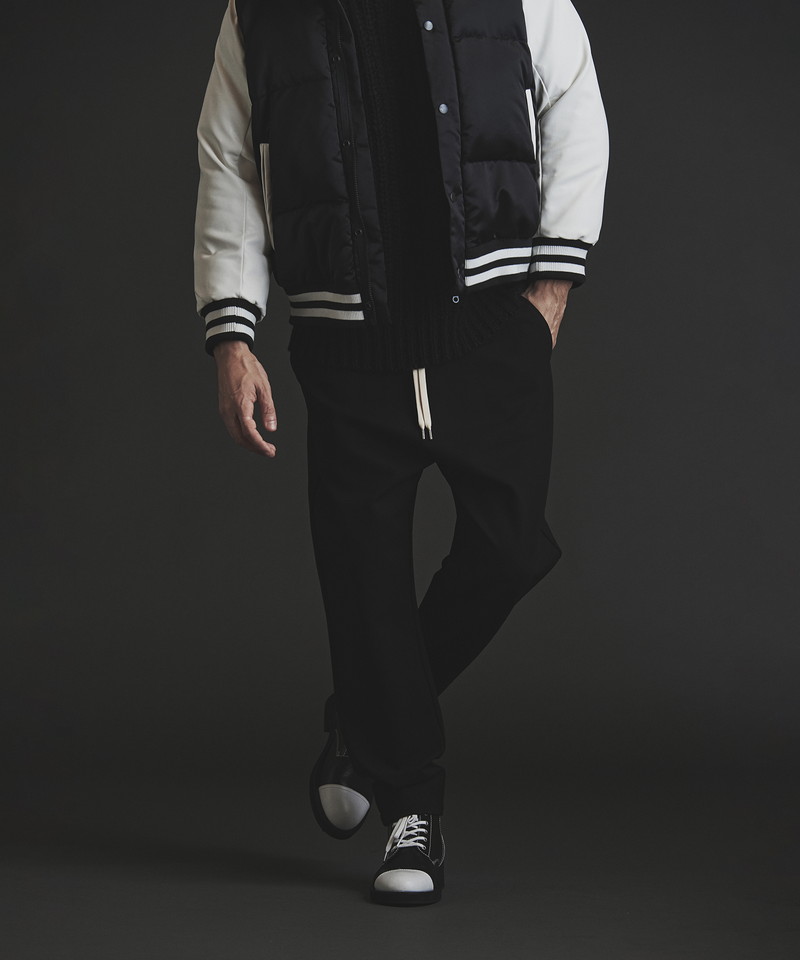 やや深めの股上に、ゆとりを持たせたワタリ幅、膝下に向かってすっきりとテーパードさせた美シルエットが魅力的なアイテム。