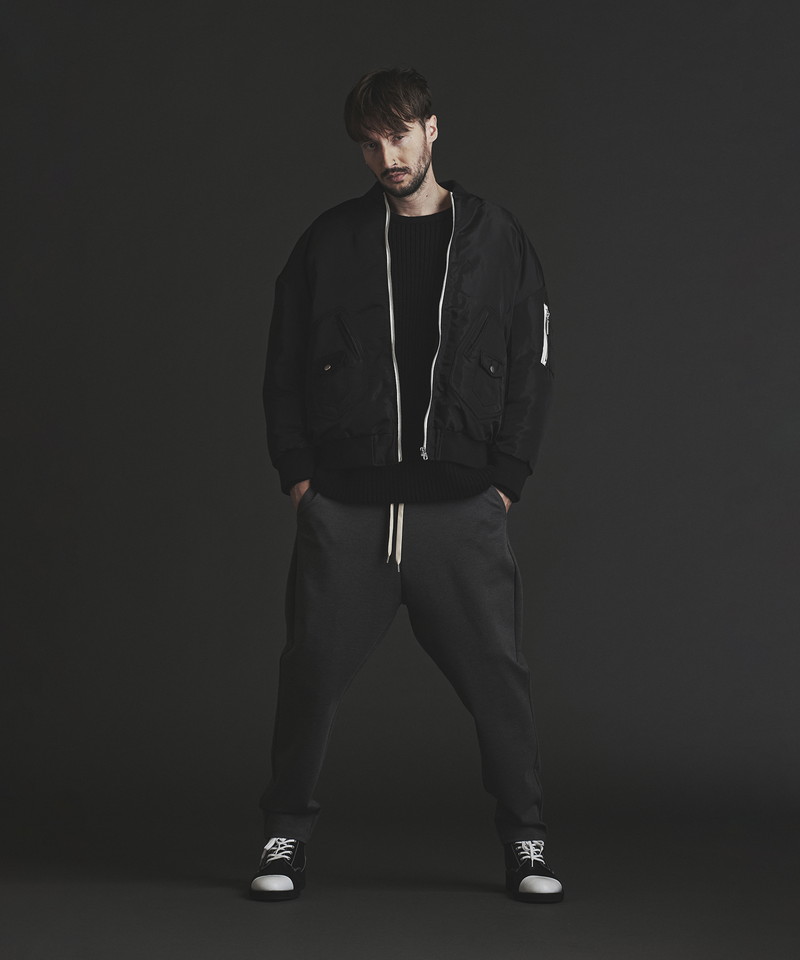 コードは縛って、トップスで隠してしまえば、トラウザー代わりにレザーシューズと合わせた綺麗な着こなしにも対応可能。
