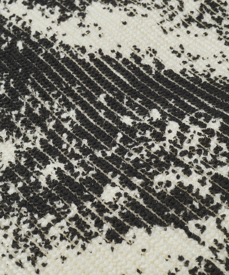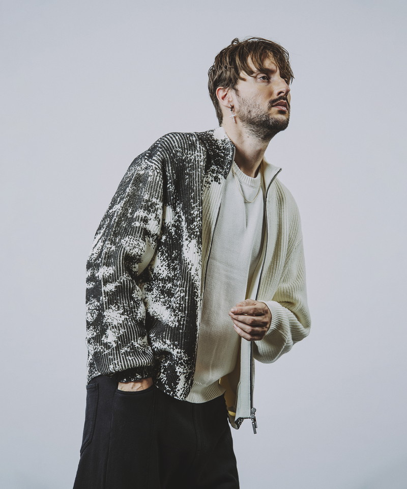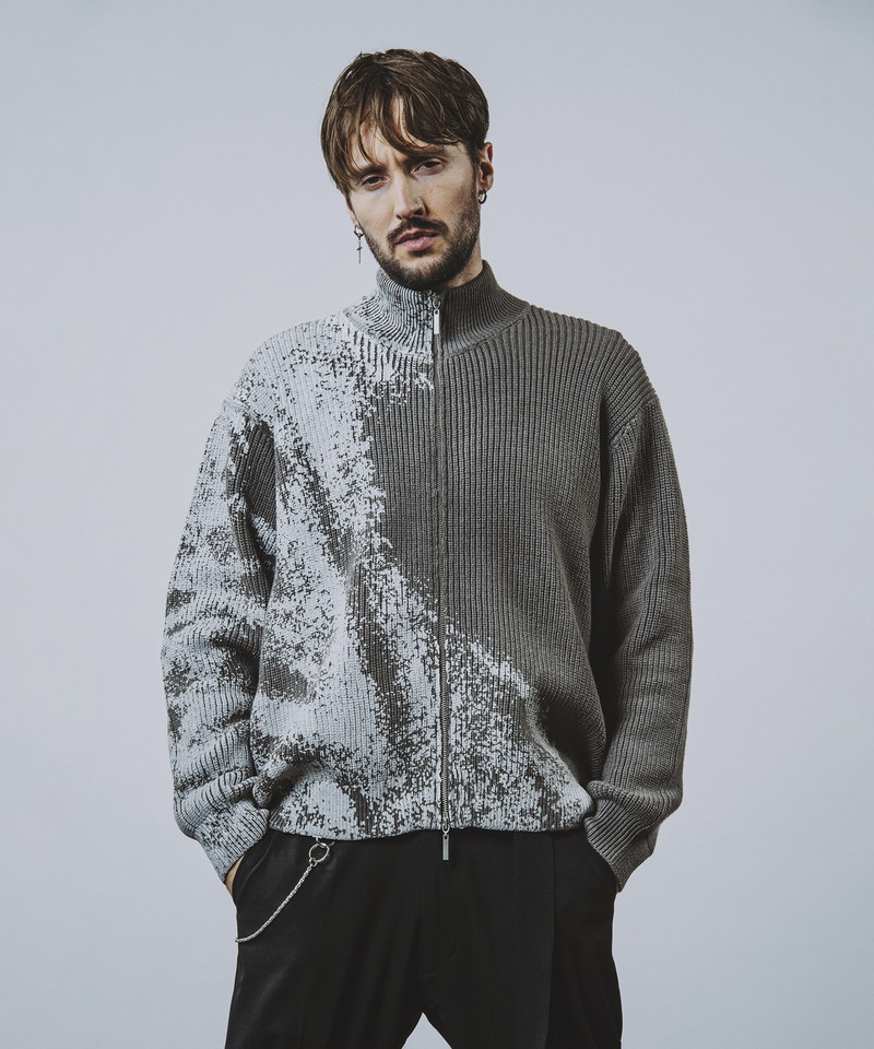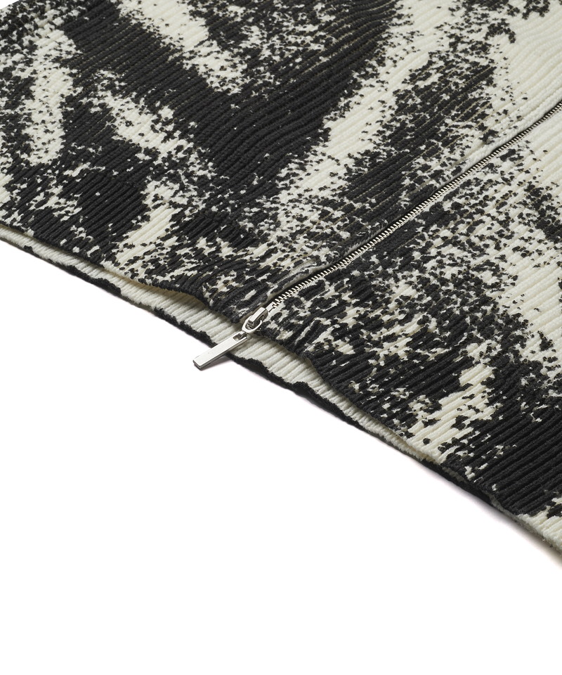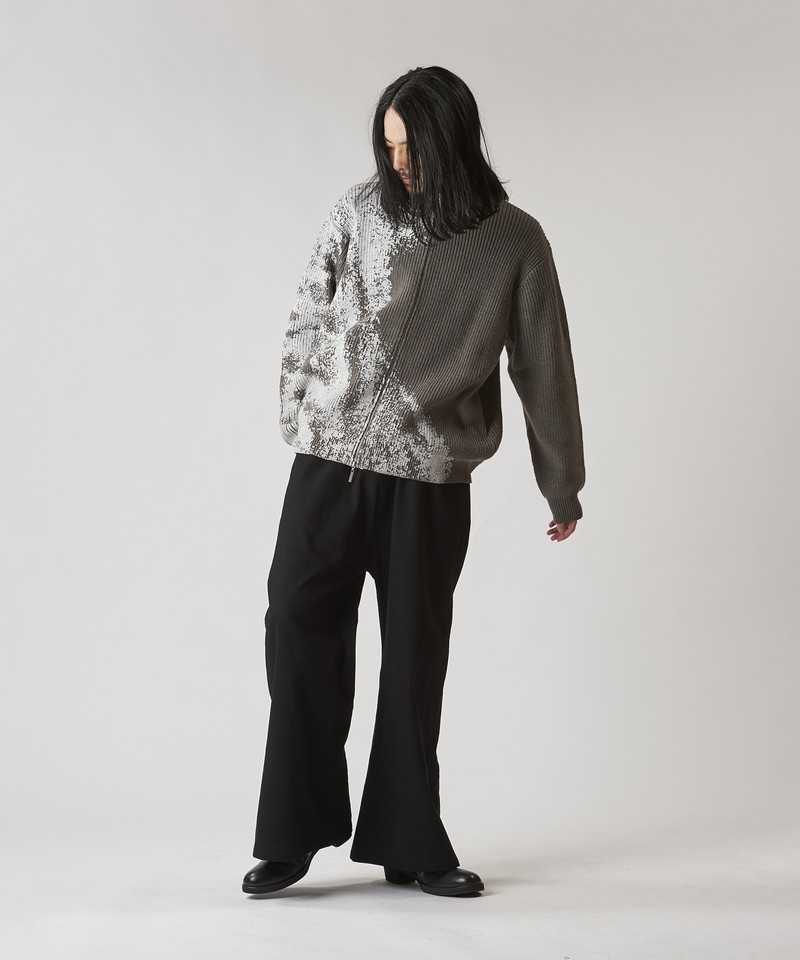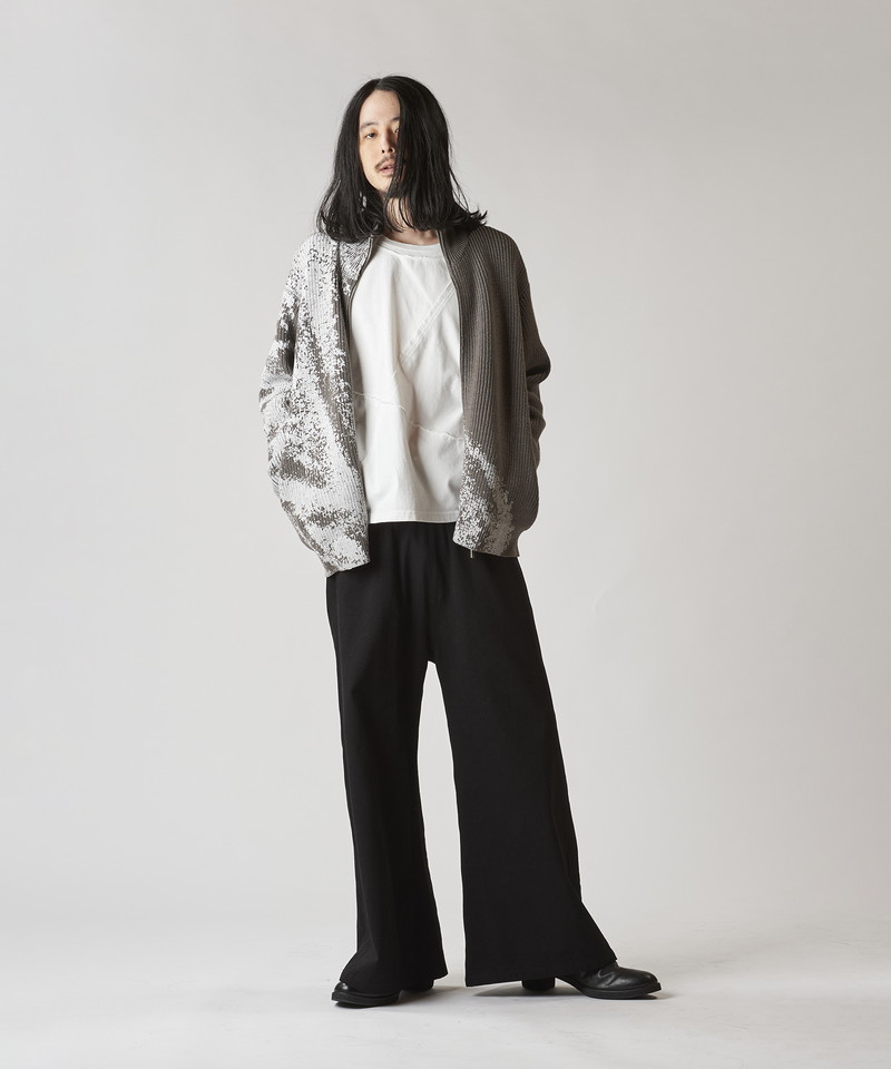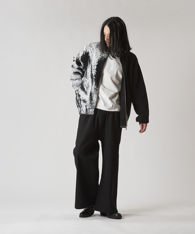 身頃の編み地には畦編みを採用、凹凸感のある編み地にプリントすることで、自然なムラ感を演出