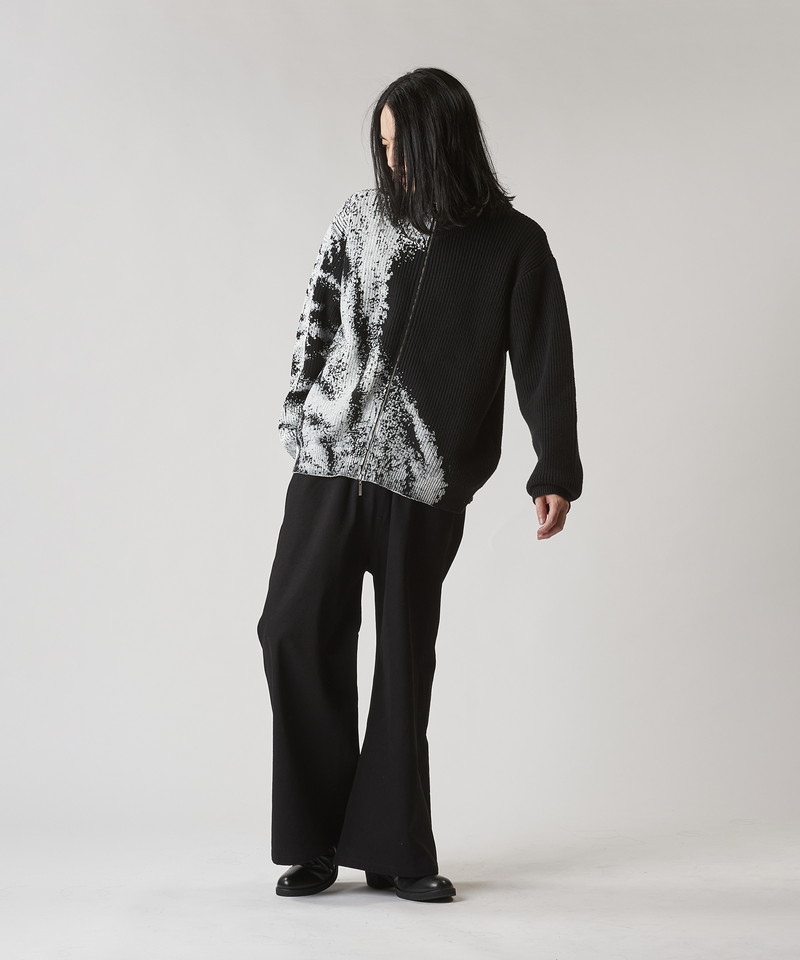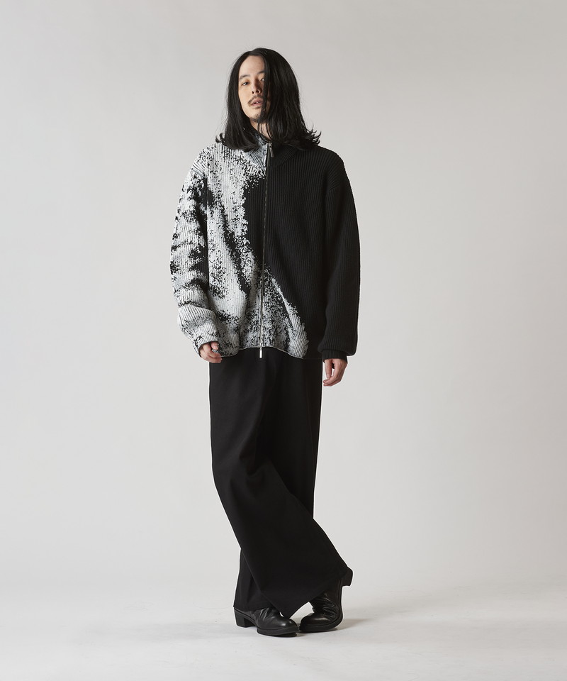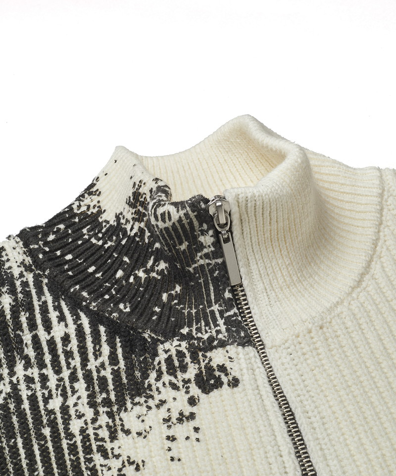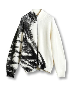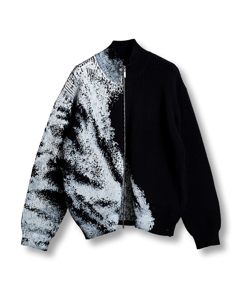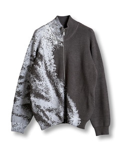 アシンメトリーなプリントデザインのドライバーズニットカーディガン