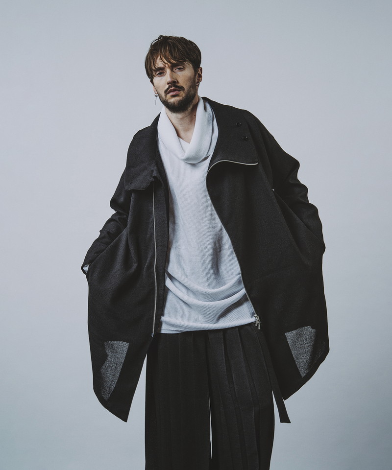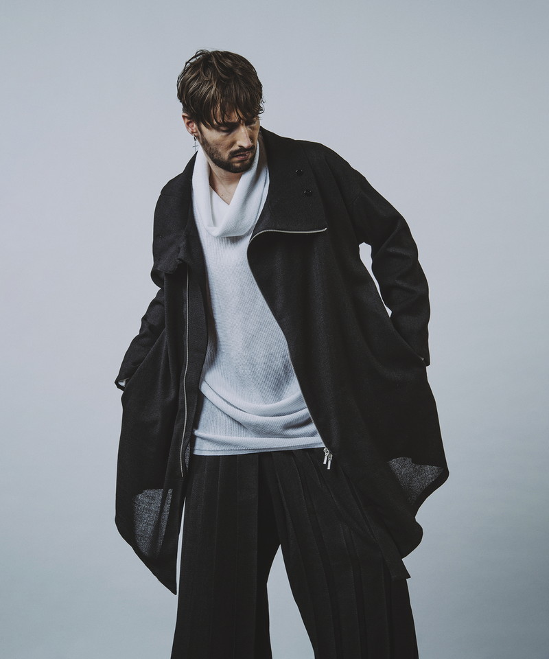 袖先から肘までゴムを付けて収縮させる事で立体的なシワを演出