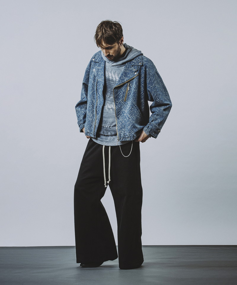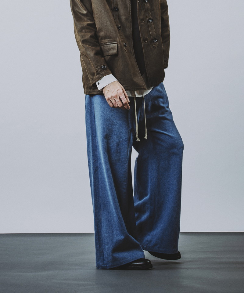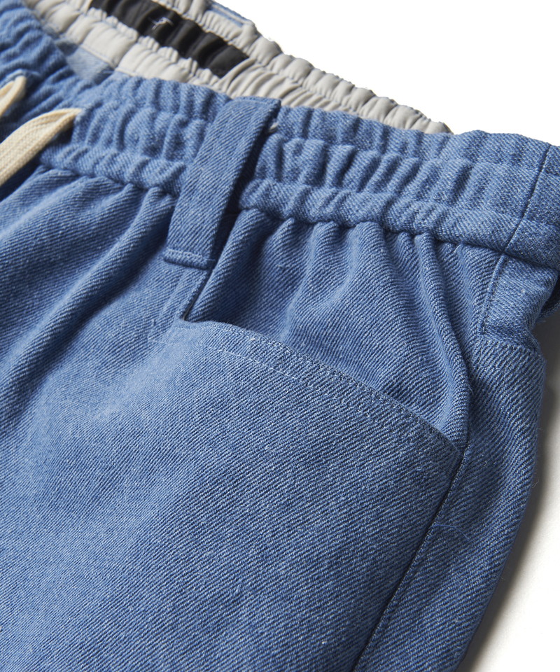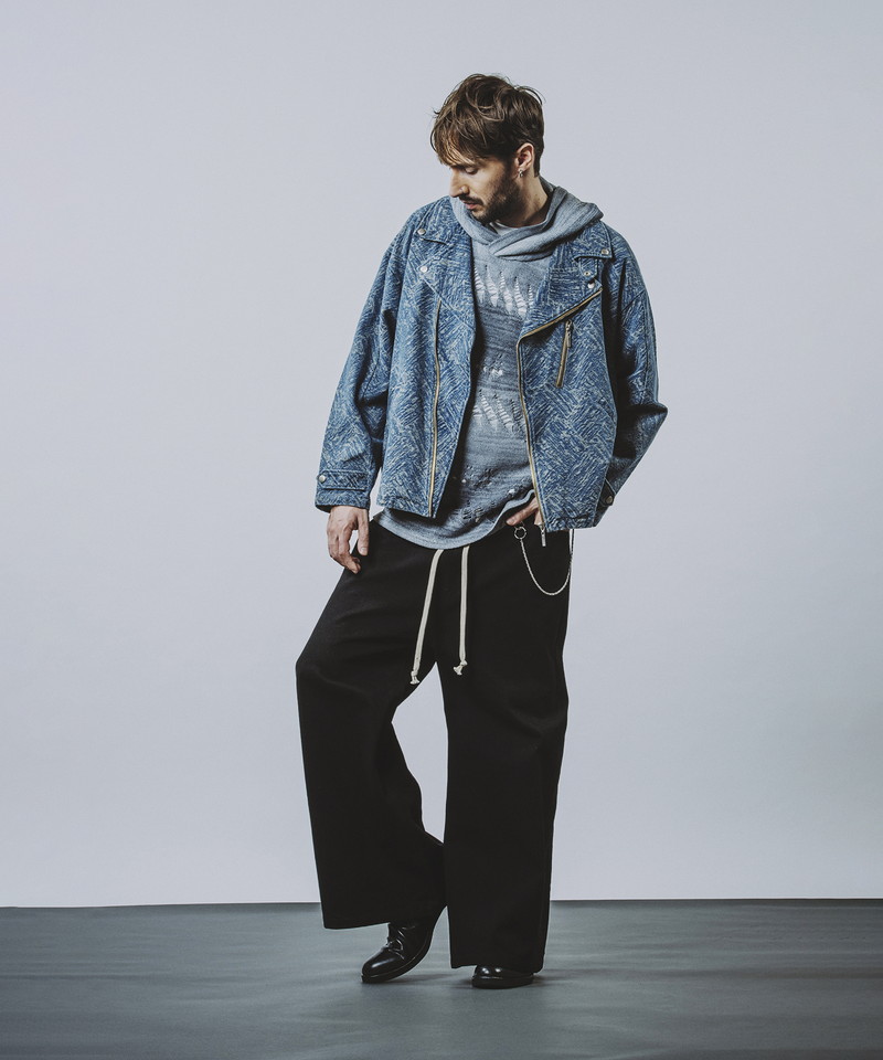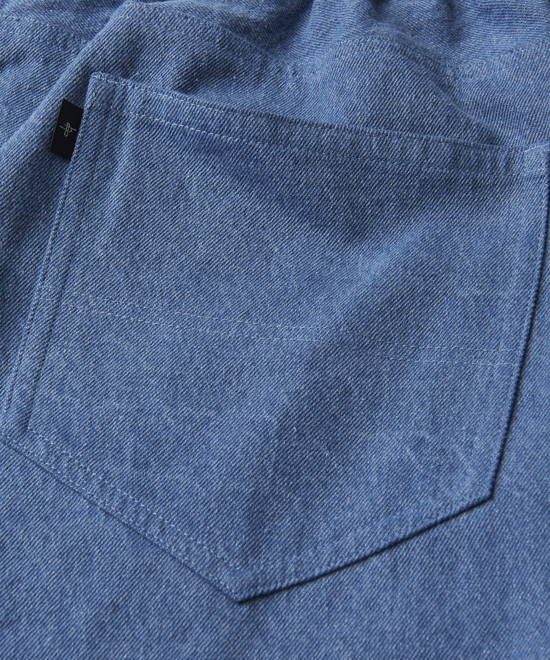 INDIGO:コットン68%、ポリエステル17%、レーヨン15% BLACK:コットン72%、ポリエステル15%、レーヨン13%