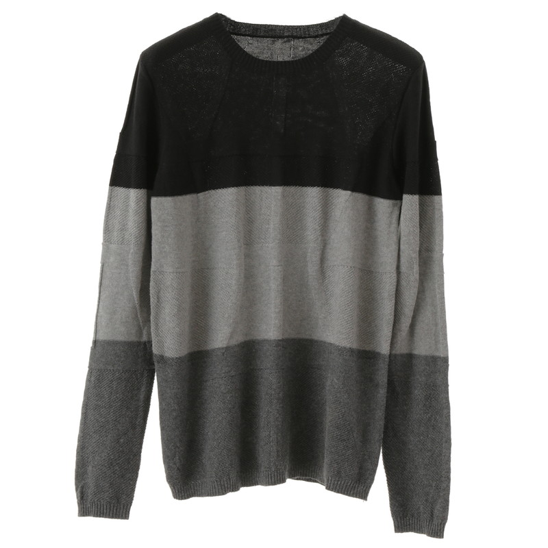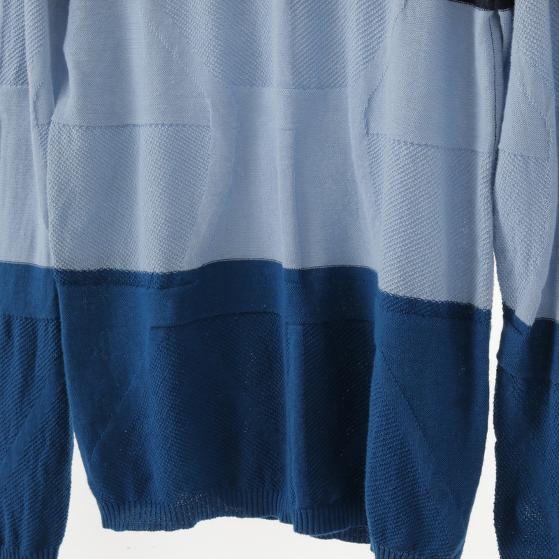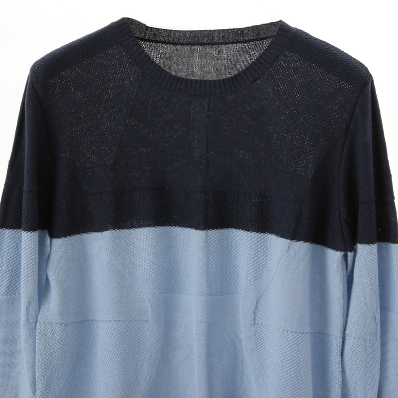 爽快な麻×綿の混紡素材を使用した〈CLニットバイカラー模様編C/N-PO〉。
