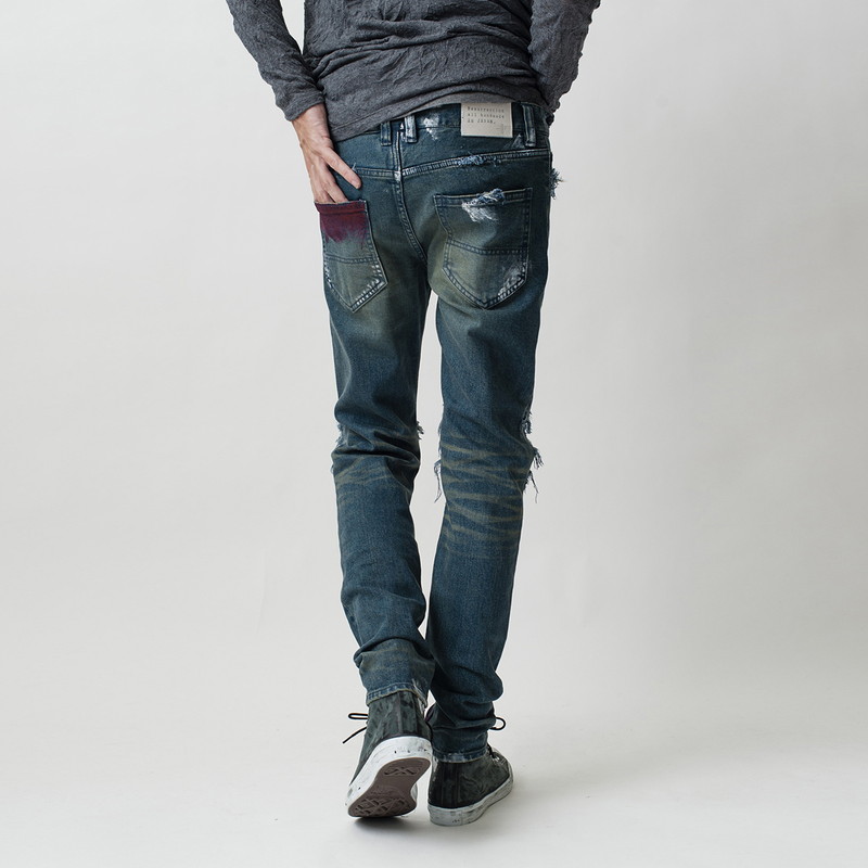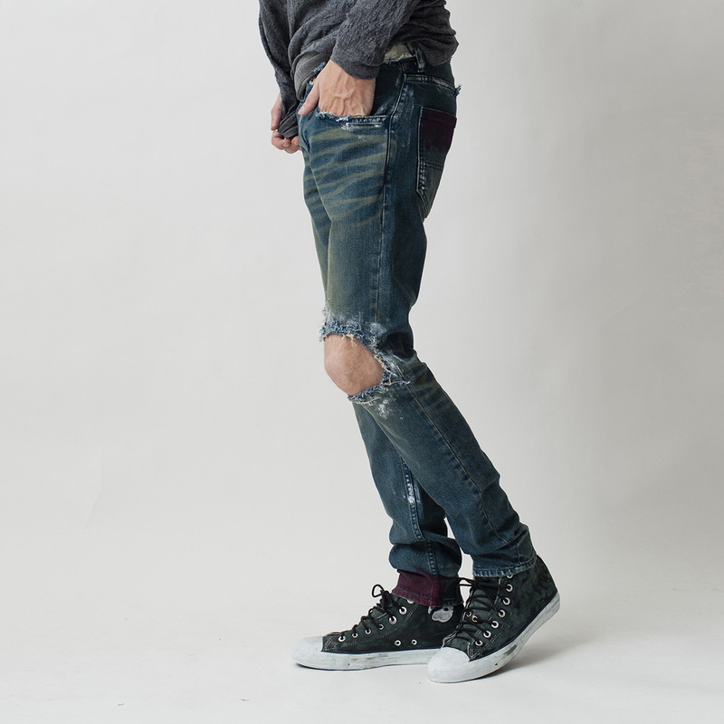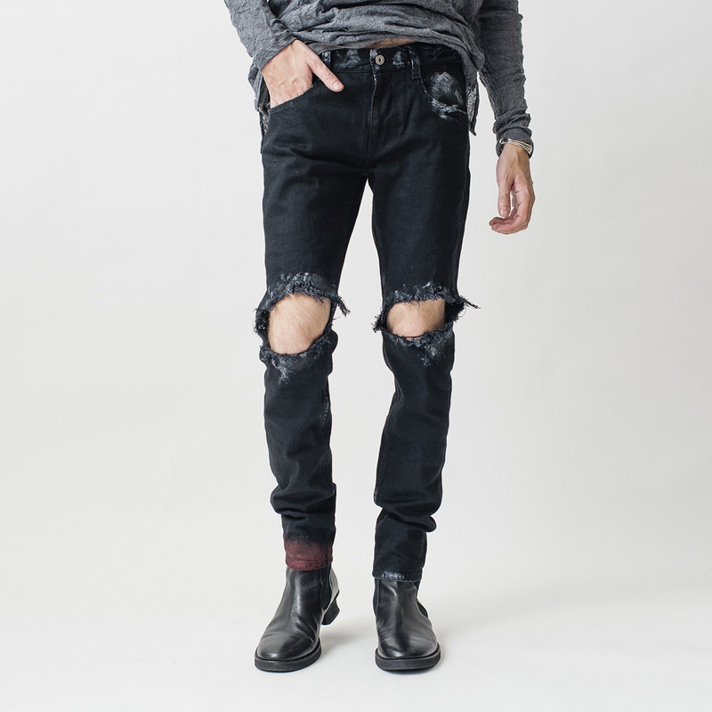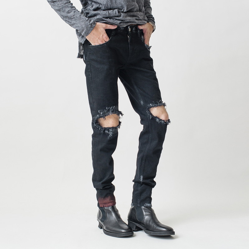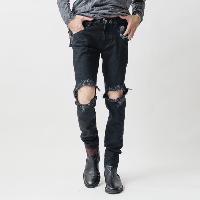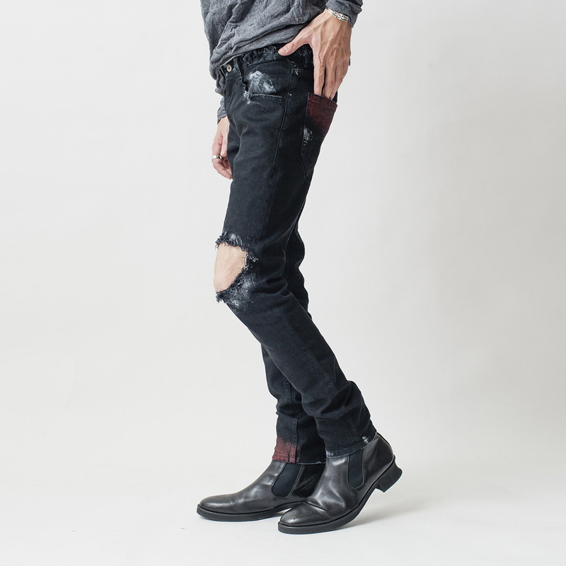 NO ID.BLACK×RESURRECTION ストレッチデニムデストロイ加工スキニーPT