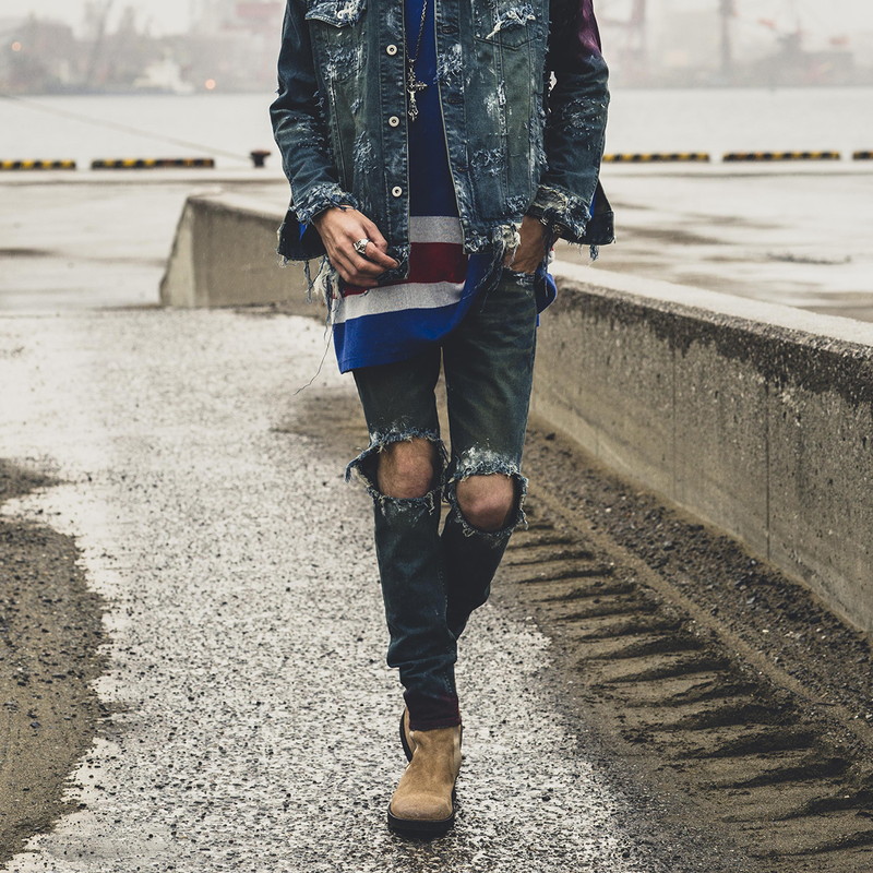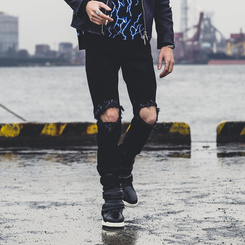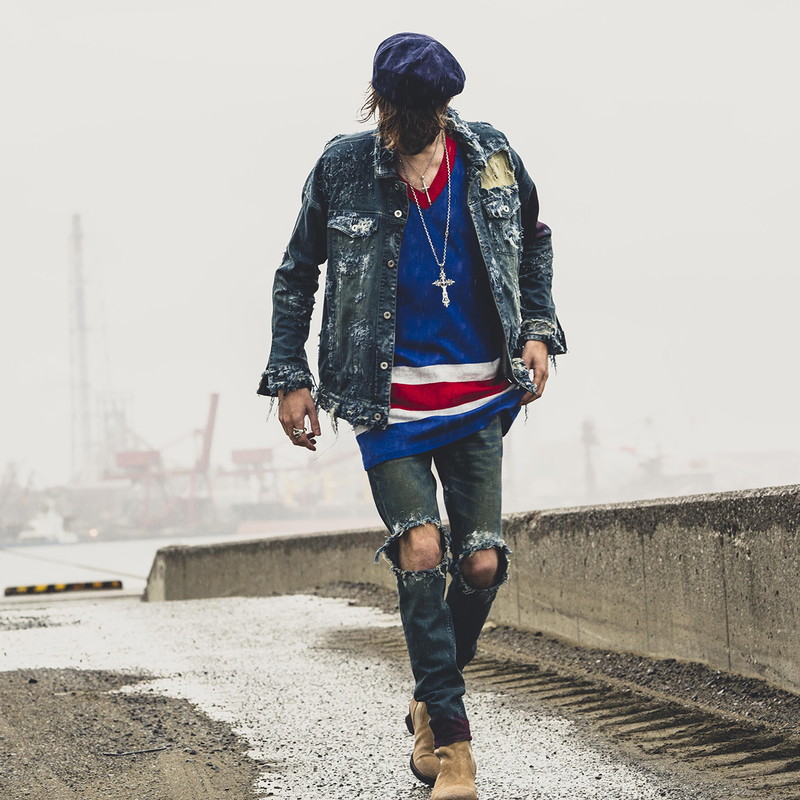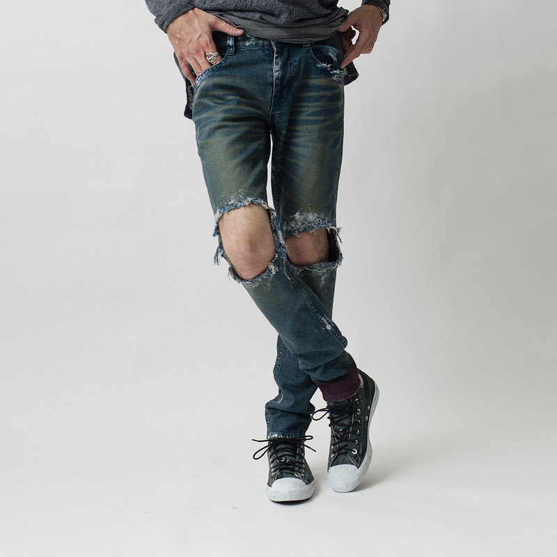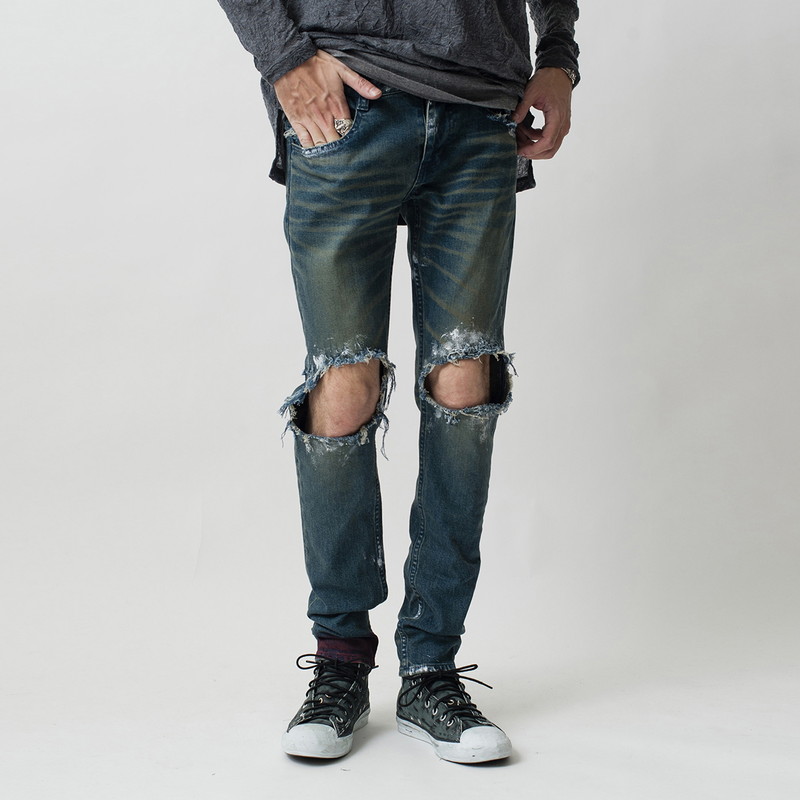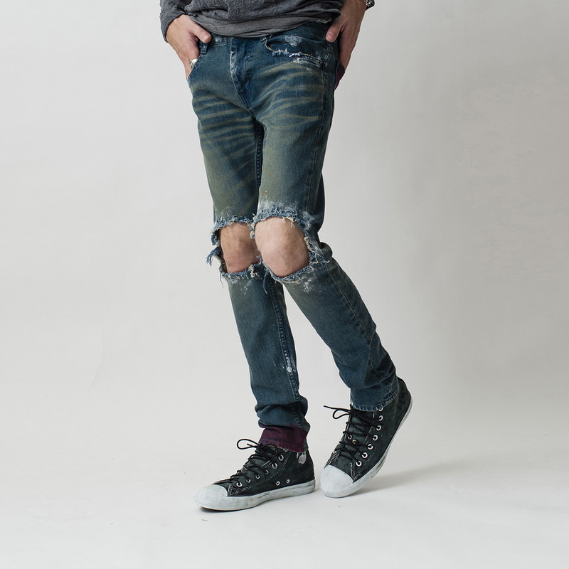 NO ID.BLACK×RESURRECTION ストレッチデニムデストロイ加工スキニーPT