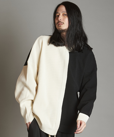 - アシンメトリーZIPニットタートルネックCD[BLACK]