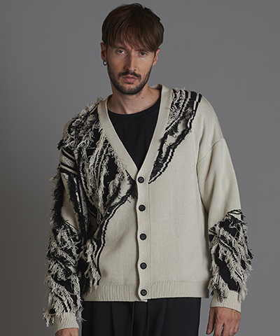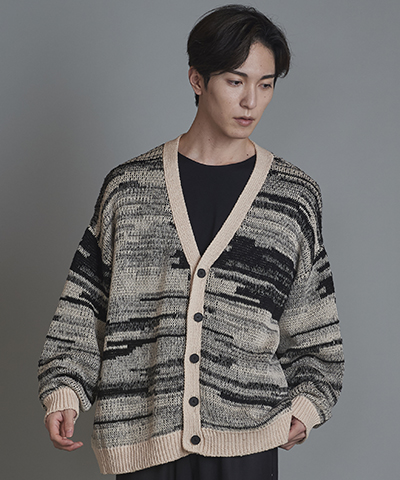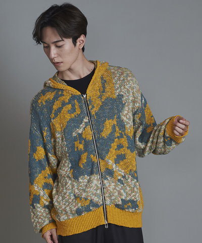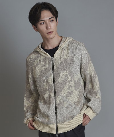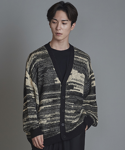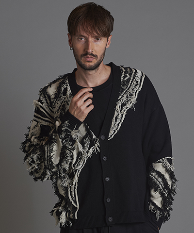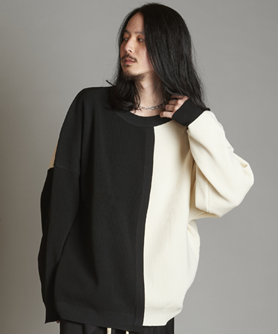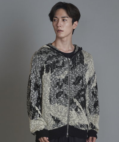 - フーデッドZIPニットポンチョ[BLACK×WHITE]