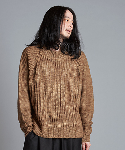 - ボリュームネックニットハーフZIP-PO[BROWN]