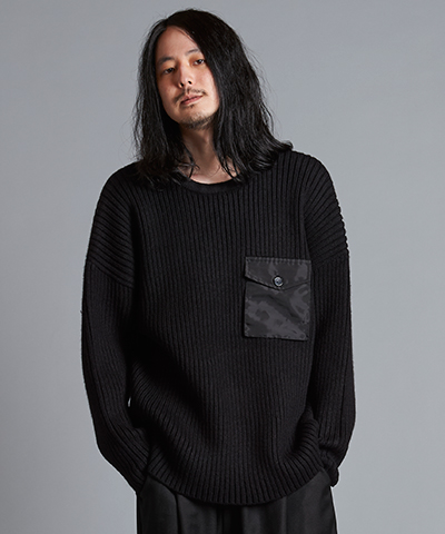 - ボリュームネックニットハーフZIP-PO[BLACK]