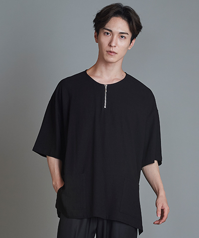 - アシンメトリーギャザーポンチョSH[BLACK]