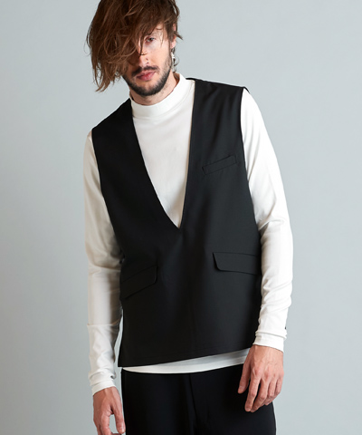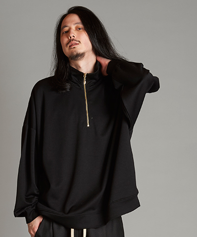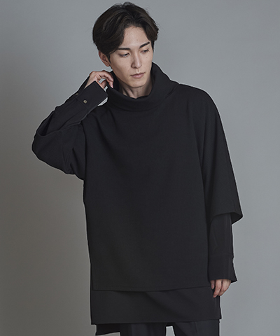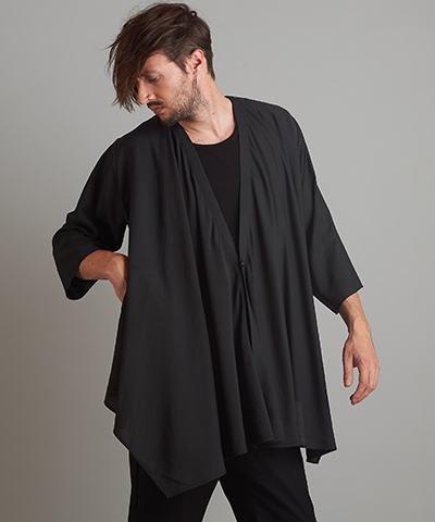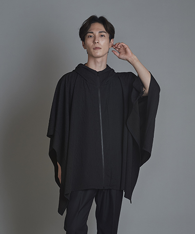 - ドローストリングスフーデッドポンチョ[BLACK]
