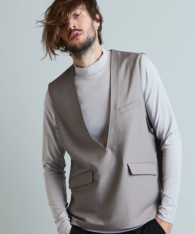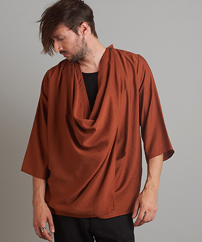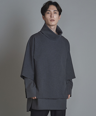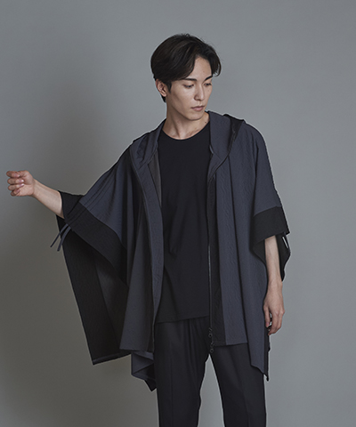 - ドローストリングスフーデッドポンチョ[GRAY]