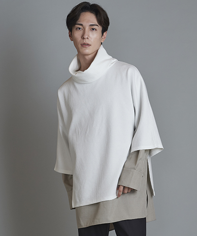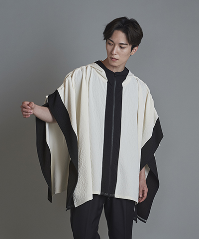 - ドローストリングスフーデッドポンチョ[WHITE]