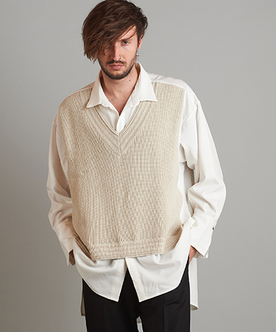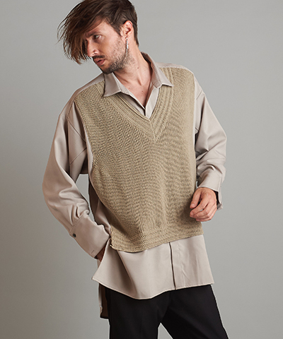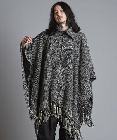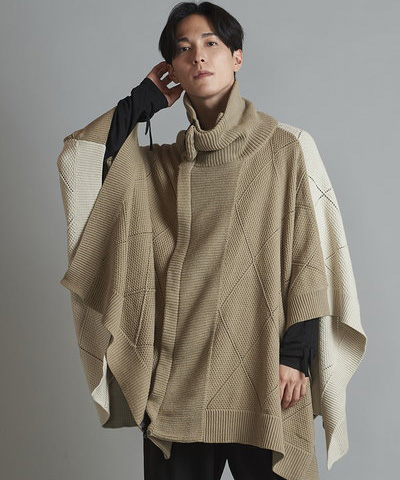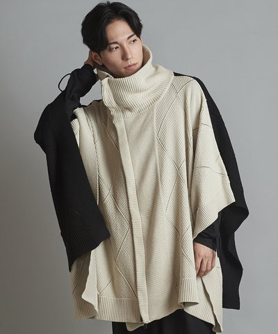 - 4WAYハイネックニットZIPポンチョ[MIX]