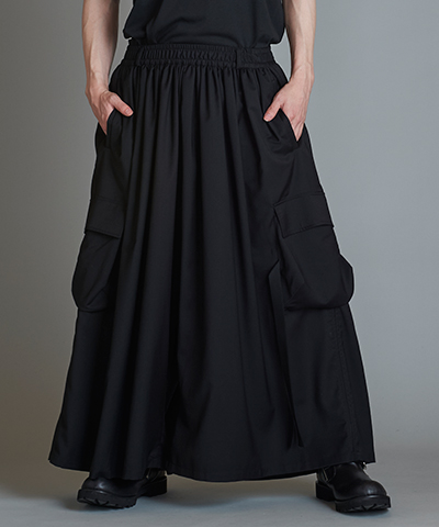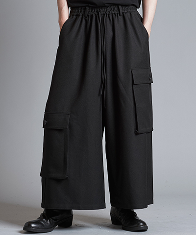 - ミリタリーギャザーバギートラウザーズ[BLACK]