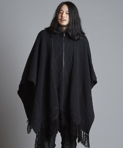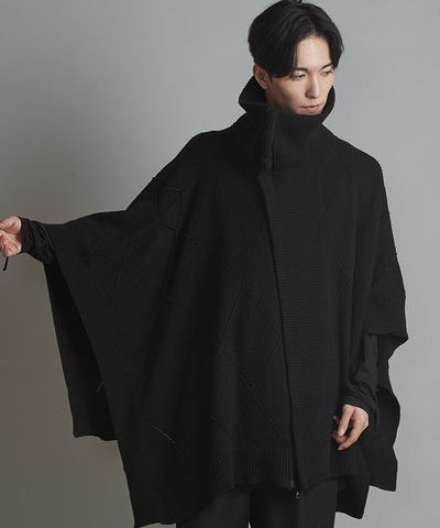- 4WAYハイネックニットZIPポンチョ[BLACK]