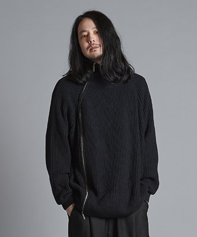 - アシンメトリーZIPニットタートルネックCD[BLACK]