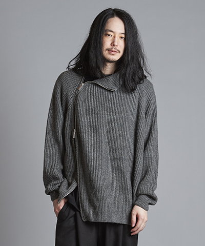 - アシンメトリーZIPニットタートルネックCD[GRAY]