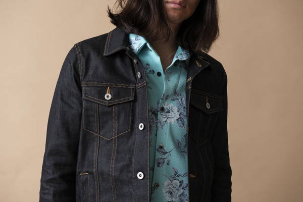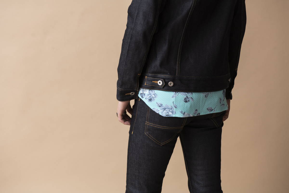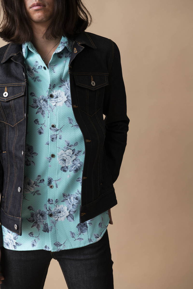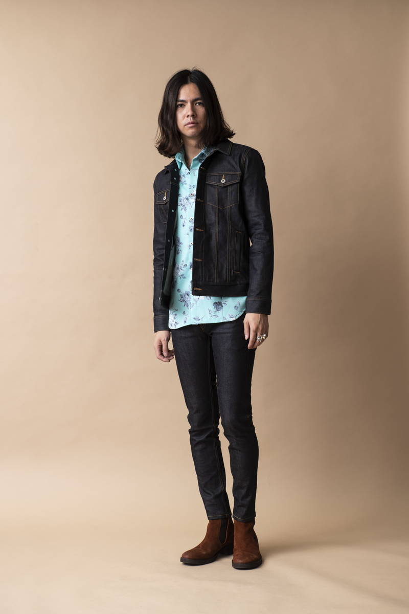 NO ID.の原点とも呼べる男の色気を感じるスタイル。 シアー感を効かせたフラワーパターンのシャツが武骨なデニムに華やかさをプラス。 リジッドデニムのカチっとした作りが清潔感もプラスされ春らしい軽快な着こなしとなっている。