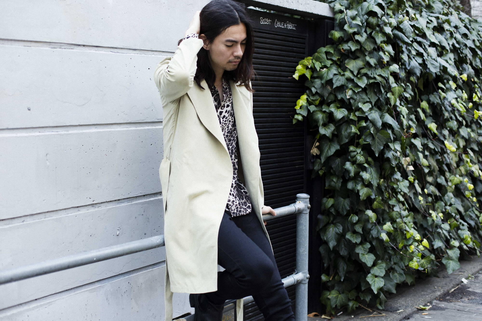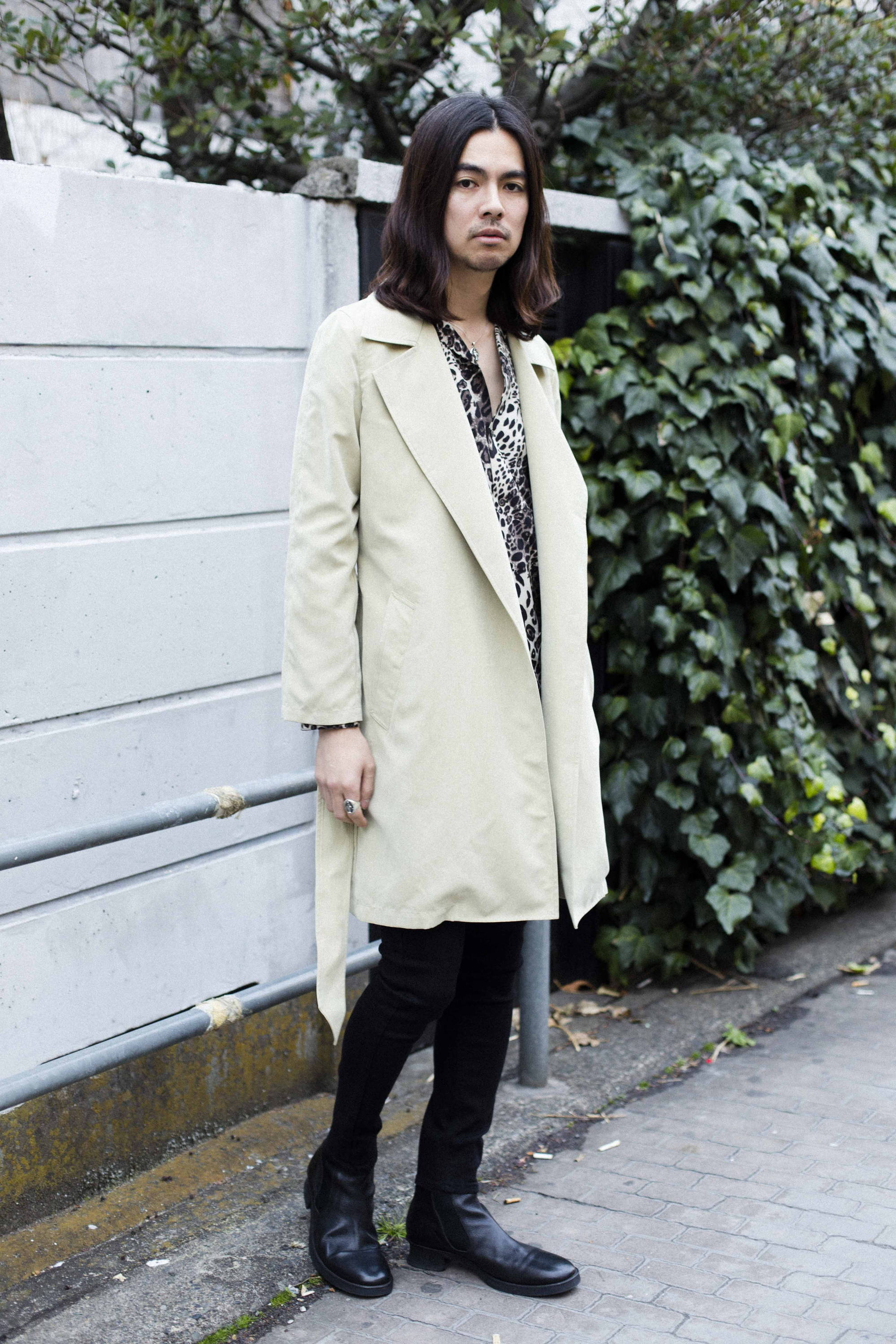 コートとシャツの色味を整えればクセの強いレオパード柄も難なく着こなせる。