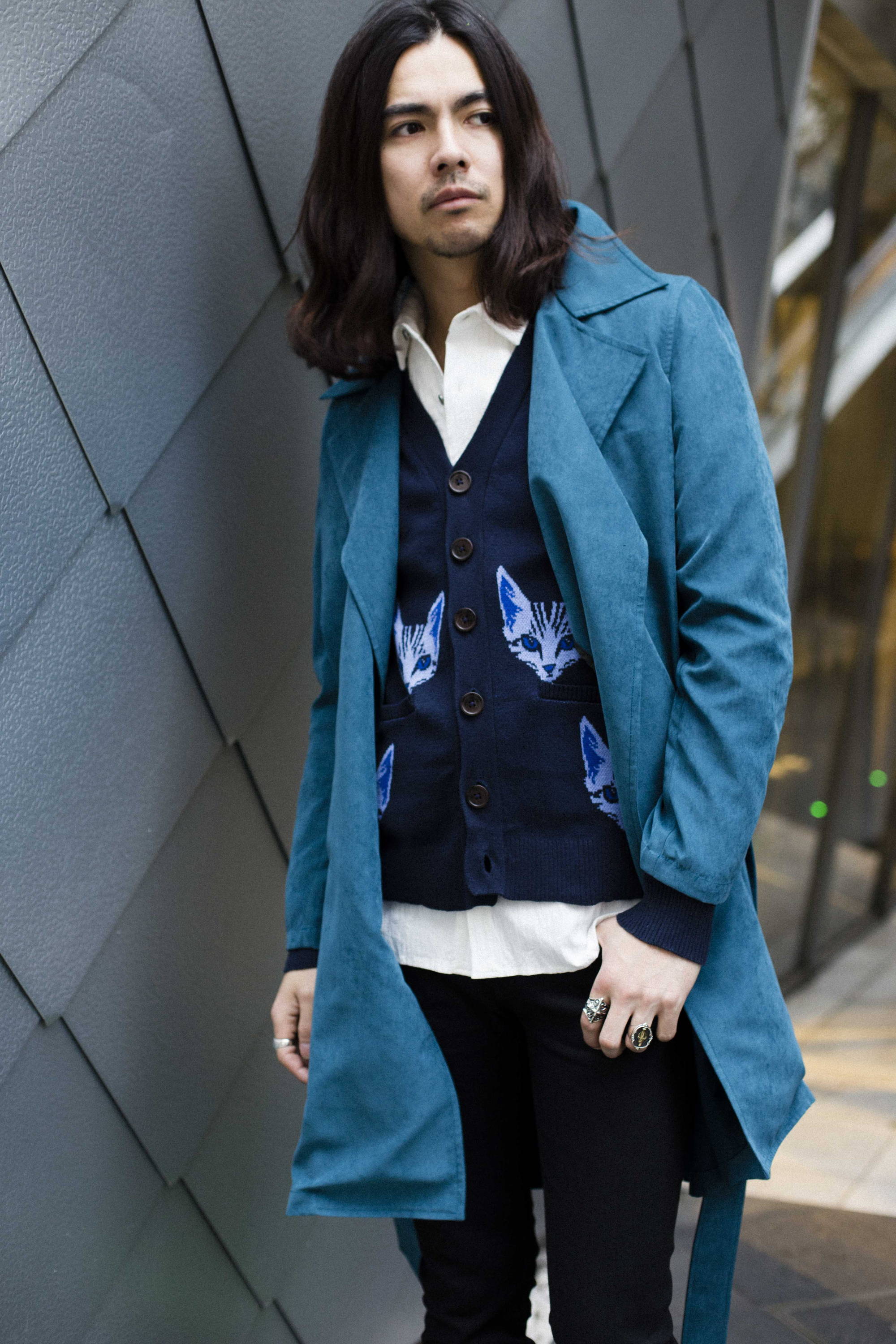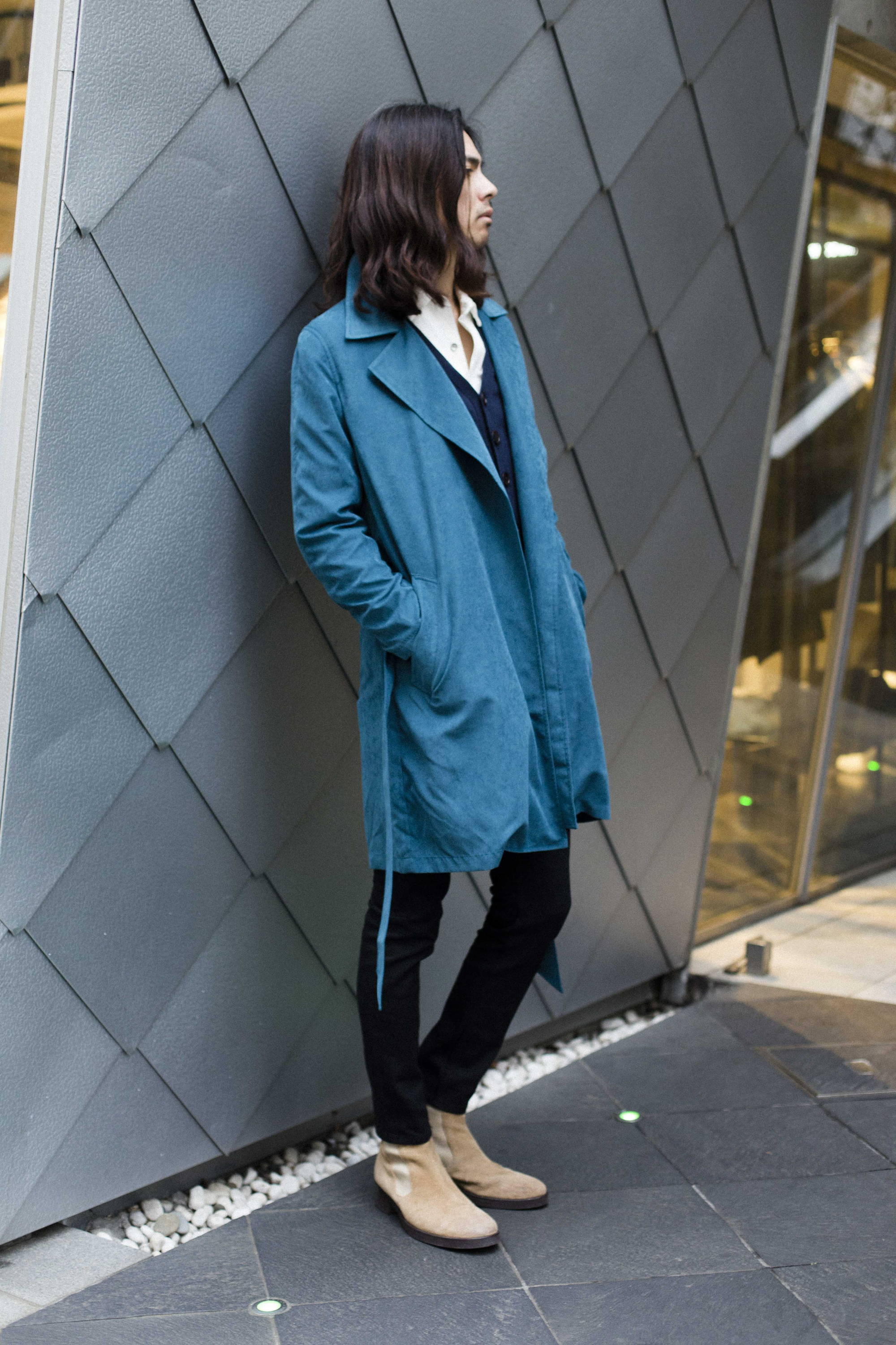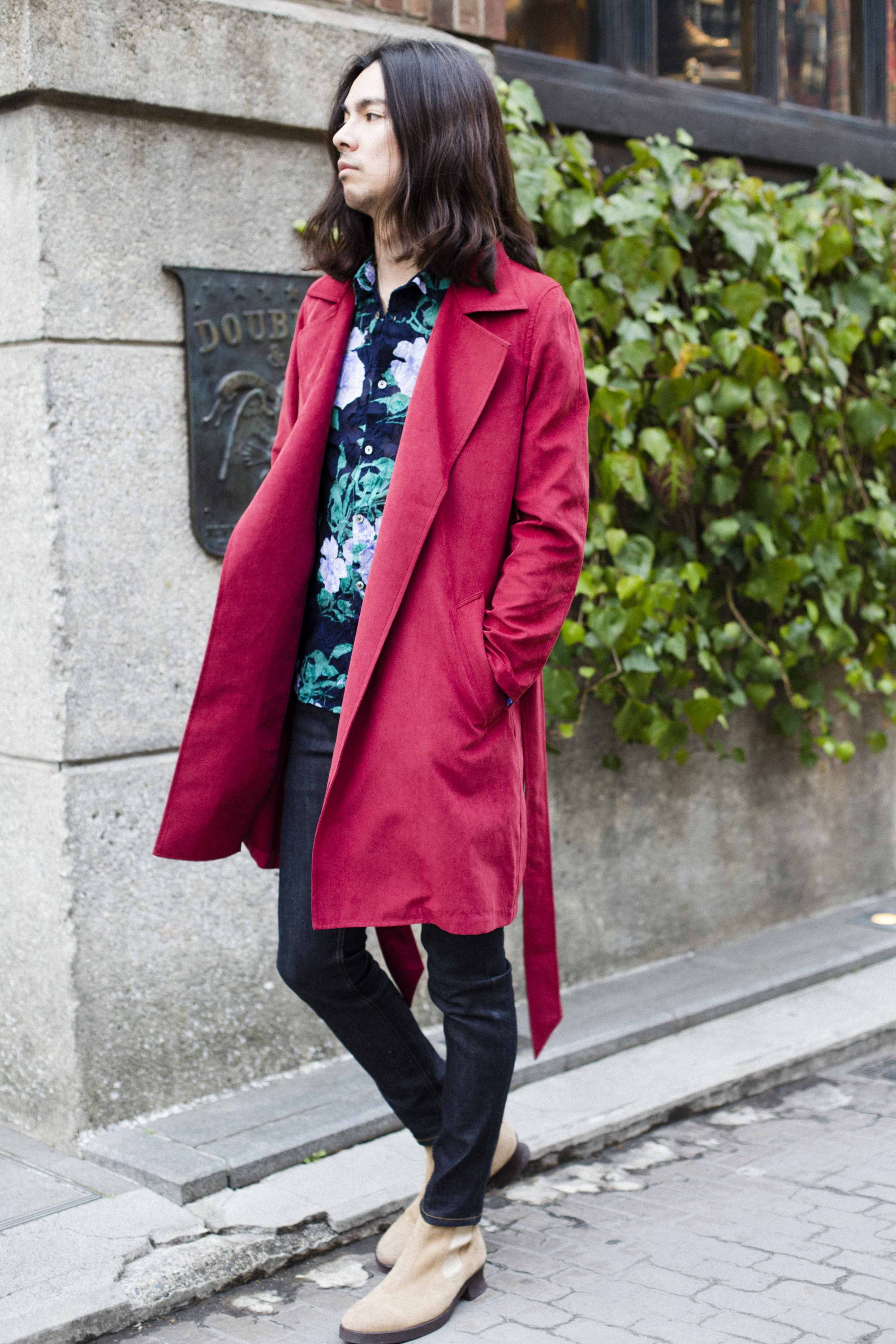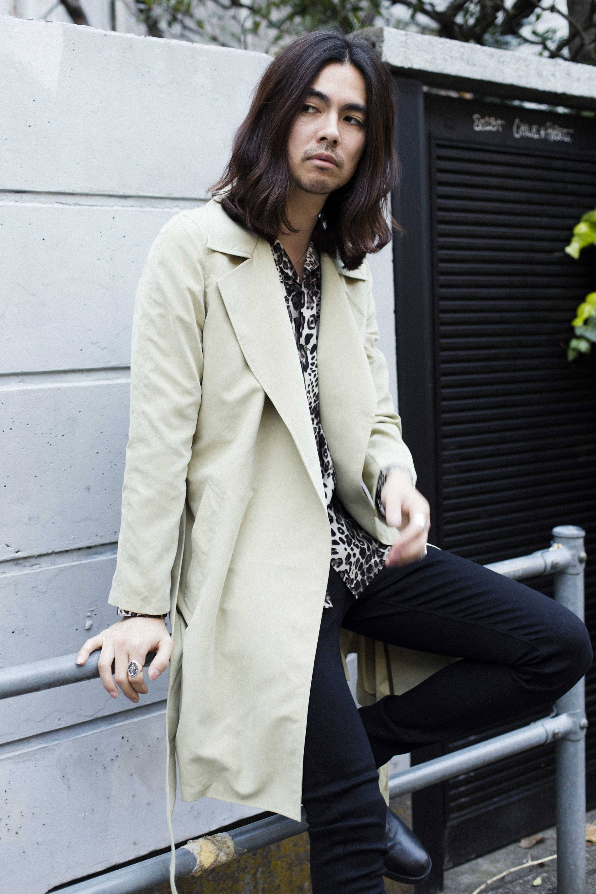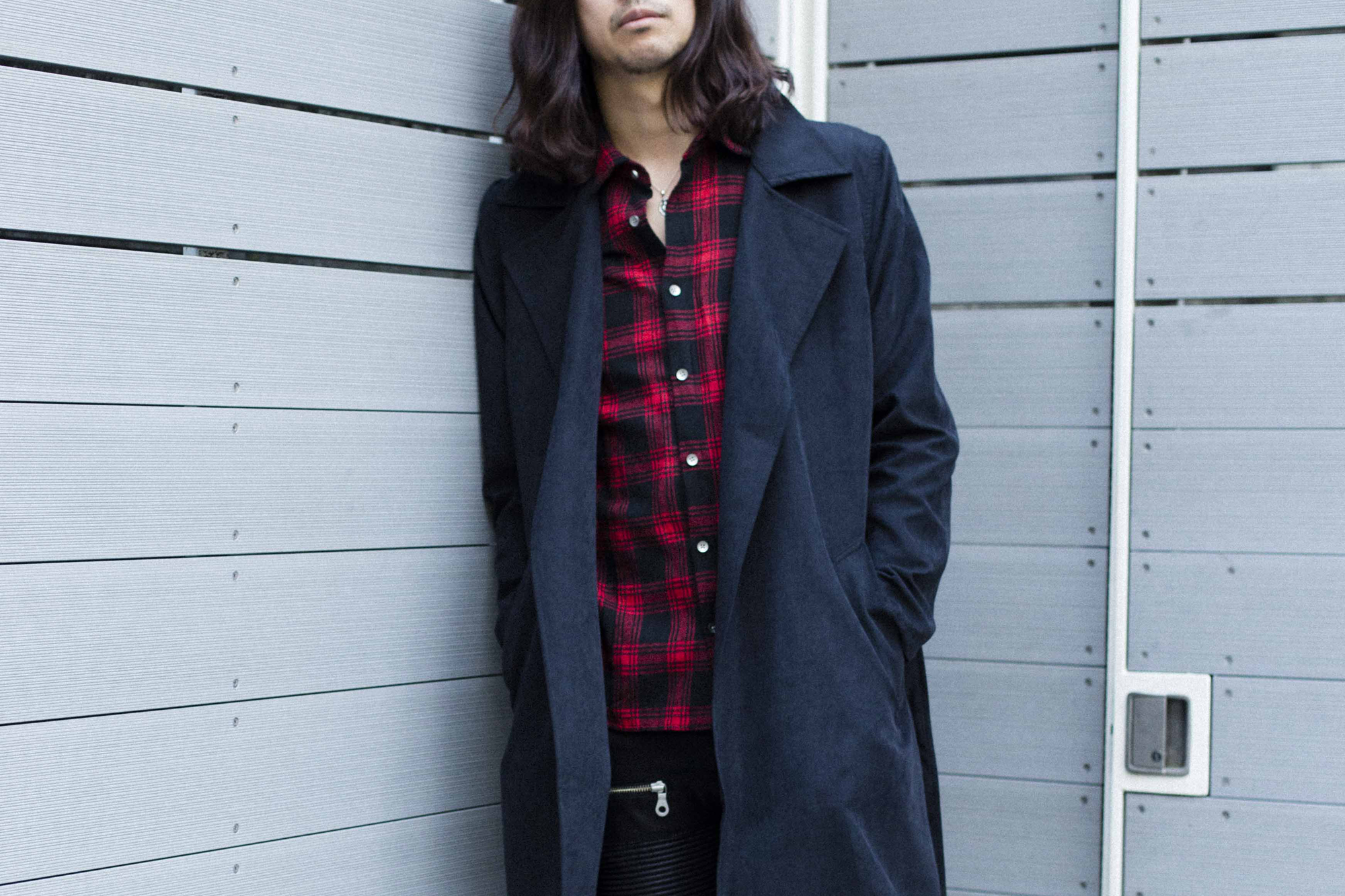 シアー感のある生地感がコートと相性が良くディテールにも旬なオープンカラーも取り入れ今の空気感に馴染むロックテイストを表現。