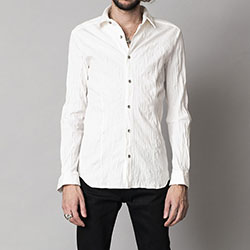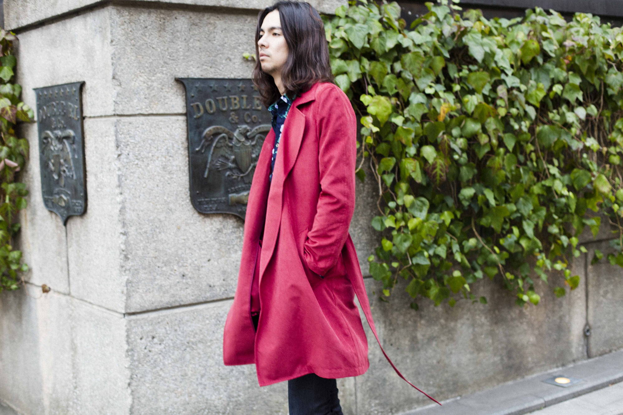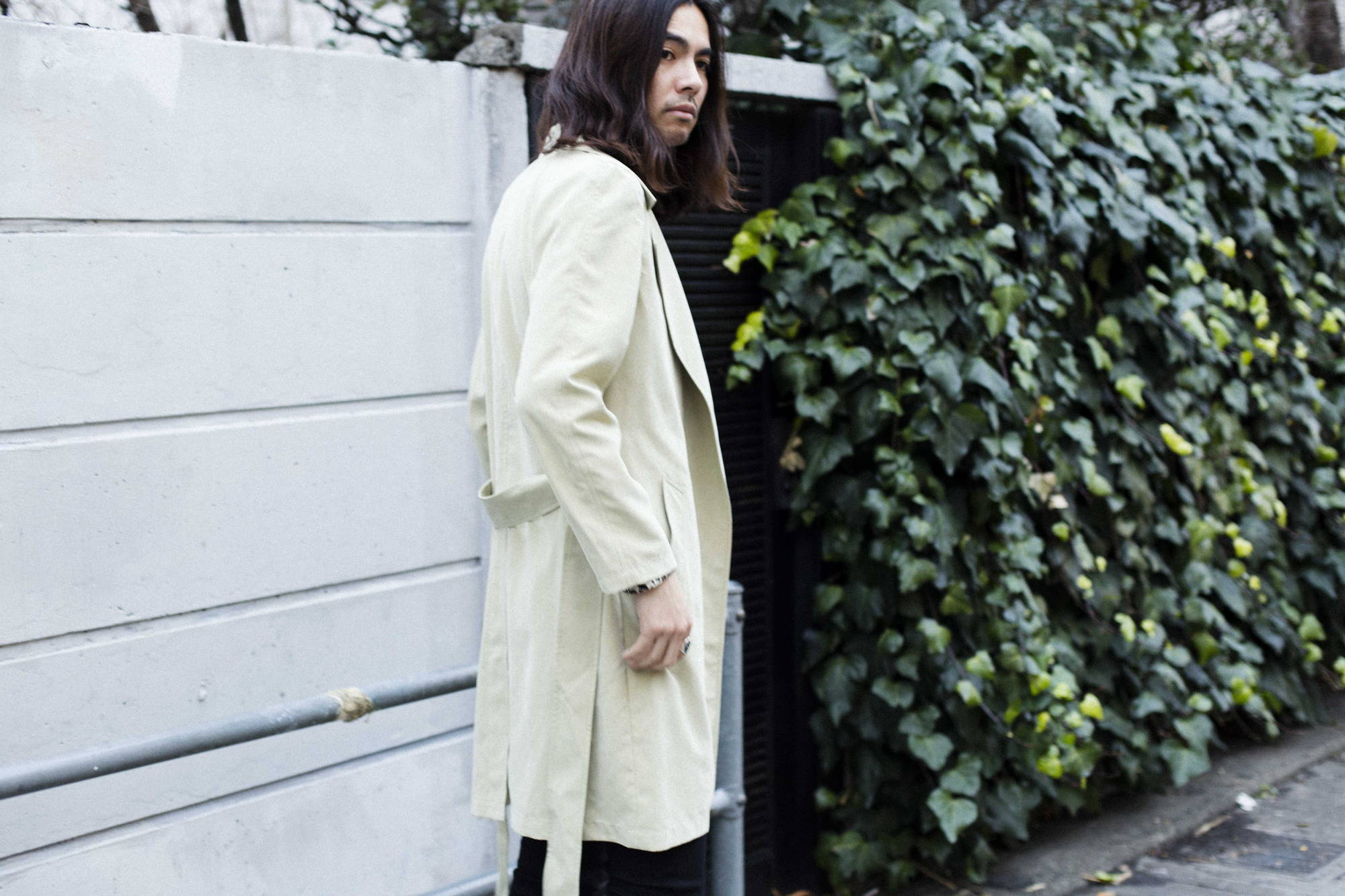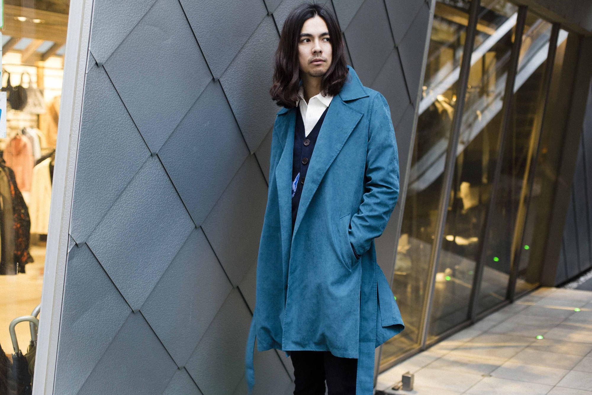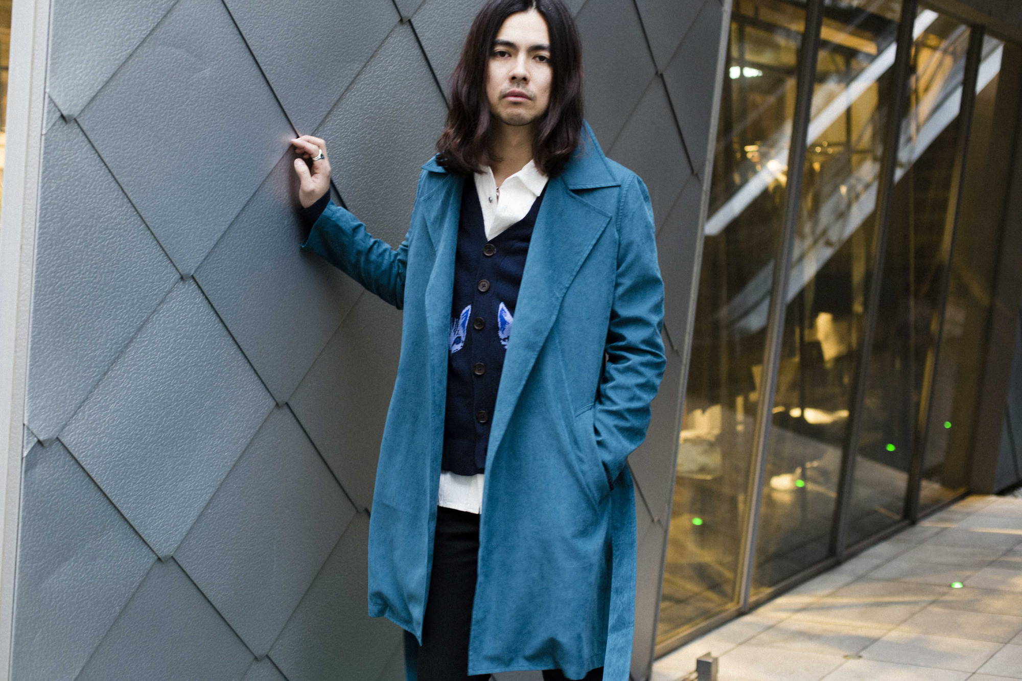 シアー感のある生地感がコートと相性が良くディテールにも旬なオープンカラーも取り入れ今の空気感に馴染むロックテイストを表現。